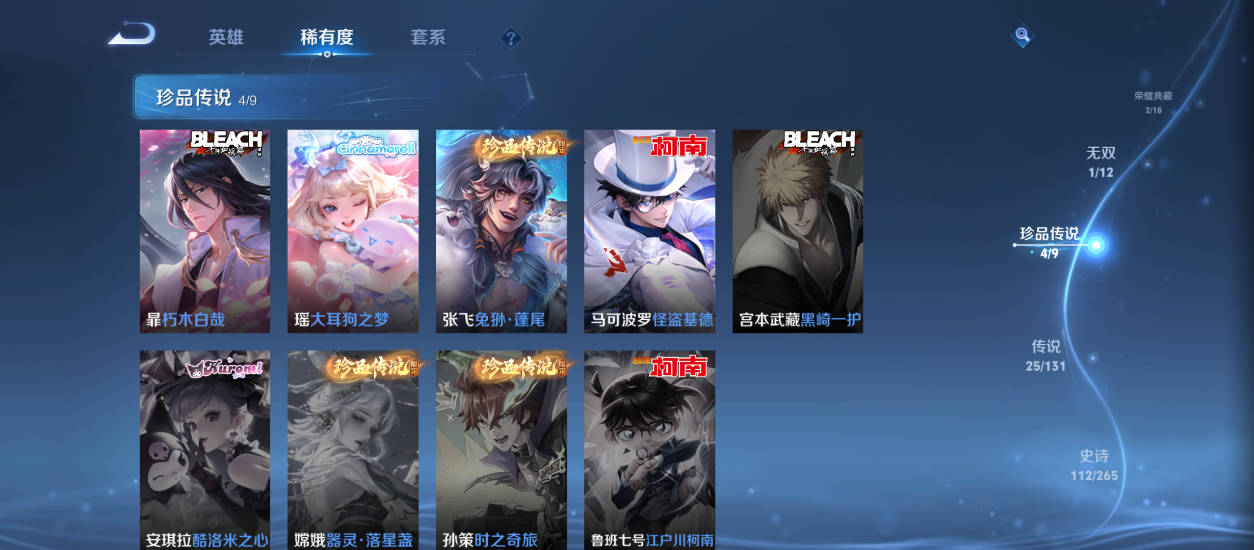 txwz23834 v8 350皮 2典藏( 弑呛猎影,鸣剑·曳影)1无双(器灵·螭龙剑)4珍品( 朽木白哉,兔狲·蓬尾,大耳狗之梦,怪盗基德)25传说(神树通天,胖达荣荣,千山共赴,九山相柳,战鼓燎原,久胜战神,地狱之眼,炽阳神光,绛天战甲,云鹰飞将,浮生妄,黄金白羊座,鹤羽星尊,霜月吟,黄金狮子座,云诺千山,启明星使,愿照·山河定,愿照·岁时盈,超时空战士,鸣野蒿,仲夏夜之梦,愿照·众生和,无双飞将,愿照·九州拓)112史诗( 胡桃异想国,光弋星穹,末日机甲,魅语,巫礼祀神,万灵启世,大圣娶亲,织梦人,涂山容容,涂山红红,东方月初,百相守梦,守夜人,百相守梦,幻珠鲛人,赞萌露比,灵蛊蚀心,石田雨龙,青蛇,心灵战警,冰冠公主,顽岩魄,百木心呛,夏日便利店,蔷薇恋人,绅士熊喵,千年之狐,天秀·启明,缤纷独角兽,原初追逐者,孙行者,舞动绿茵,浮光幕影,鬼剑武藏,青焰无极,群星魔术团,蓝屏警告,偶像歌手,暗渊魔法,蔬乡物语,白昼王子,德古拉伯爵,地狱岩魂,燃音魔法,圣诞恋歌,纤云弄巧,荣光圣徽,百解令,地狱燃心,心灵骇客,江河有灵,冰雪圆舞曲,女仆咖啡,如梦令,云间偶戏,黄金分割率,驭风魔法,赏金猎手,金属风暴,电玩·爆裂旋风,默契交锋,奇幻香踪,匿光破解者,至尊宝,百相守梦,魔术师,暗夜猫娘,修罗,时之恋人,热力回旋,鹰眼统帅,紫霞仙子,皇家上将,星夜王子,星界游侠,水果甜心,山海·玄木吟,唤灵魅影,天才门将,猫狗日记,五谷丰年,暗隐猎兽者,魅力维加斯,藏狐·褐绒,顽趣,圣诞狂欢,雪豹·霜爪,百相守梦,特工魅影,狼魂孤将,水晶猎龙者,破空之剑,茶境仙,曙光守护者,功夫厨神,陌上桑,乘风破浪,高山流水,逐浪之夏,箭羽风息,化蝶舞,节奏热浪,龙之律动,乱世虎臣,摇滚巨星,暗夜贵公子,猫狗日记,星界战将,乐园奇幻夜,鸭鸭历险记,幽灵船长,未来纪元)