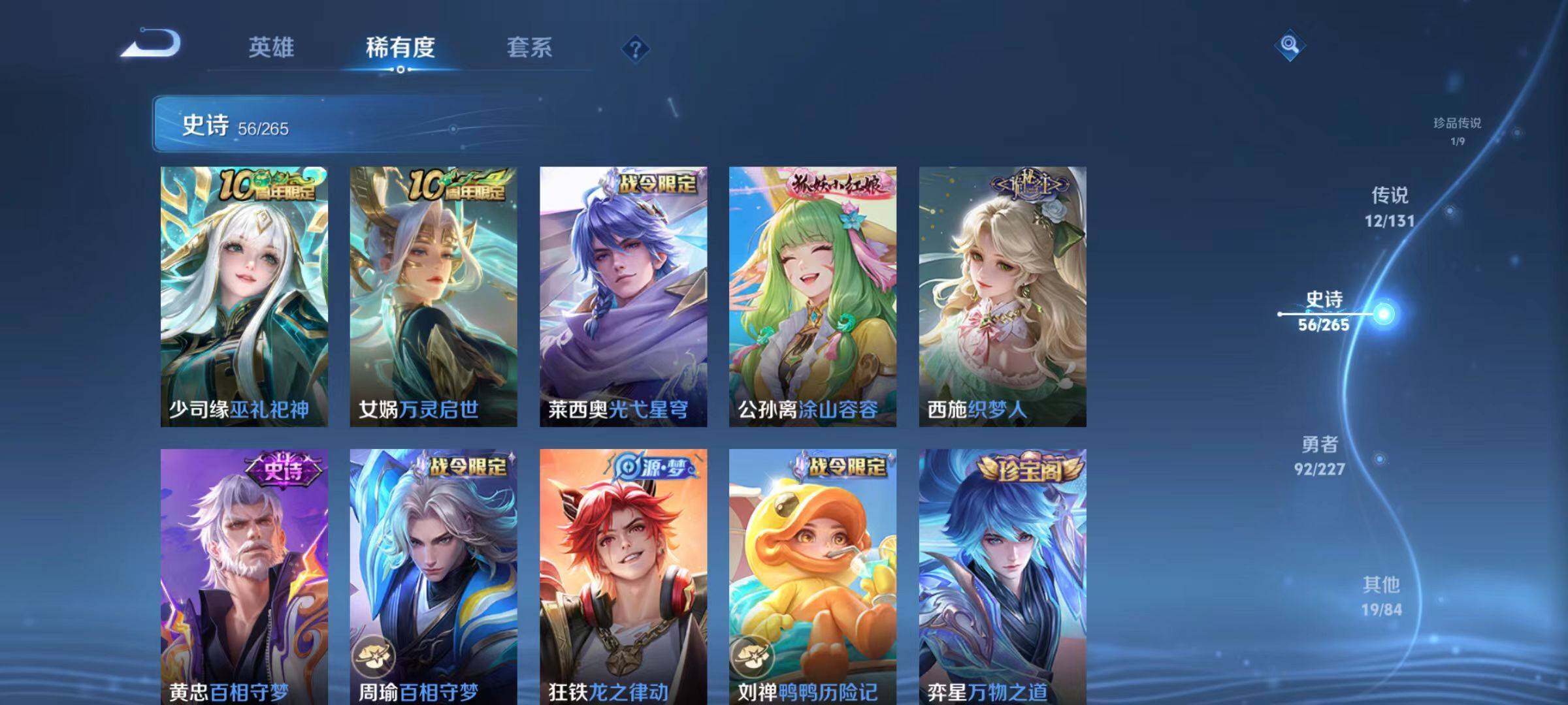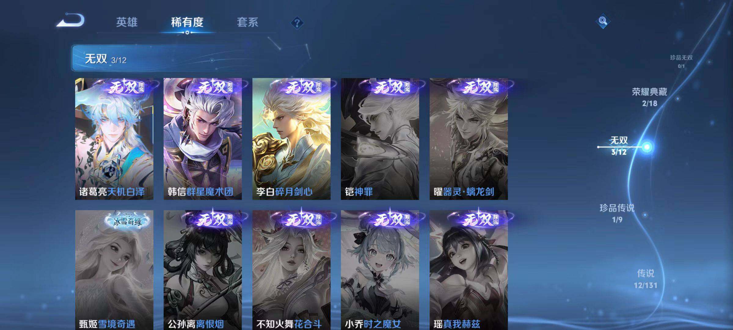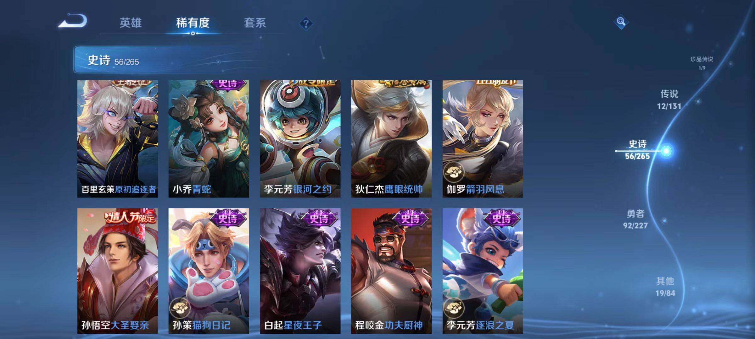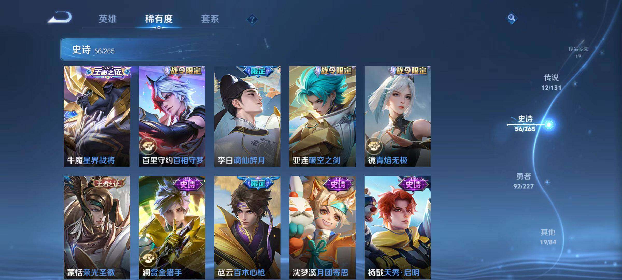 [14530695]安卓q-v7-最强王者段位-125英雄-185皮肤-2典藏皮肤-3无双-1珍品传说-12传说-56史诗 【英雄全皮】:孙权全皮,影全皮 【荣耀典藏】:李白鸣剑曳影,韩信弑呛猎影 【无双皮肤】:李白碎月剑心,韩信群星魔术团,诸葛亮天机白泽 【珍品传说】:马可波罗怪盗基德 【传说皮肤】:杨戬纵目迁山,后羿神树通天,干将莫邪千山共赴,大司命死亡执政官,司马懿九山相柳,桑启鸣野蒿,李白诗剑行,马超无双飞将,王昭君乞巧织情,镜炽阳神光,李信一念神魔,宫本武藏地狱之眼 【限定皮肤】:姜子牙天穹之誓,杨戬破阵退雄兵,李白谪仙醉月,狄仁杰阴阳师,赵云皇家上将,赵云百木心呛,狄仁杰魔术师,项羽海滩派对,孙悟空至尊宝,孙悟空大圣娶亲,后羿辉光之辰,李元芳银河之约,百里玄策原初追逐者,西施玲珑珍味,鲁班大师探海日志,张良古海寻踪,蒙恬荣光圣徽,鬼谷子天穹祈灯,李白碎月剑心,沈梦溪龙舞盛年,刘邦剑破天穹,韩信群星魔术团,镜青焰无极,项羽苍威无极,周瑜熔金海岸 【年限皮肤】:后羿辉光之辰 【赛季限定】:张良古海寻踪,百里玄策原初追逐者,鲁班大师探海日志,鬼谷子天穹祈灯,蒙恬荣光圣徽,刘邦剑破天穹,姜子牙天穹之誓 【战令限定】:李元芳银河之约,西施玲珑珍味,镜青焰无极,项羽苍威无极 【史诗皮肤】:露娜紫霞仙子,阿轲暗夜猫娘,赵云皇家上将,赵云未来纪元,貂蝉圣诞恋歌,甄姬冰雪圆舞曲,狄仁杰魔术师,宫本武藏鬼剑武藏,孙尚香水果甜心,嬴政暗夜贵公子,妲己魅力维加斯,妲己女仆咖啡,吕布圣诞狂欢,刘禅绅士熊喵,曹操幽灵船长,李白千年之狐,张飞乱世虎臣,孙悟空至尊宝,花木兰水晶猎龙者,兰陵王暗隐猎兽者,亚瑟心灵战警,雅典娜冰冠公主,后羿辉光之辰,铠曙光守护者,蔡文姬舞动绿茵,刘禅天才门将,李元芳逐浪之夏,程咬金功夫厨神,白起星夜王子,孙策猫狗日记,孙悟空大圣娶亲,伽罗箭羽风息,狄仁杰鹰眼统帅,李元芳银河之约,小乔青蛇,百里玄策原初追逐者,杨戬天秀启明,沈梦溪月团寄思,赵云百木心呛,澜赏金猎手,蒙恬荣光圣徽,镜青焰无极,亚连破空之剑,李白谪仙醉月,百里守约百相守梦,牛魔星界战将,弈星万物之道,刘禅鸭鸭历险记,狂铁龙之律动,周瑜百相守梦,黄忠百相守梦,西施织梦人,公孙离涂山容容,莱西奥光弋星穹,女娲万灵启世,少司缘巫礼祀神 【其他皮肤】:项羽海滩派对,韩信教廷特使,韩信街头霸王,赵云白执事,赵云忍炎影,白起