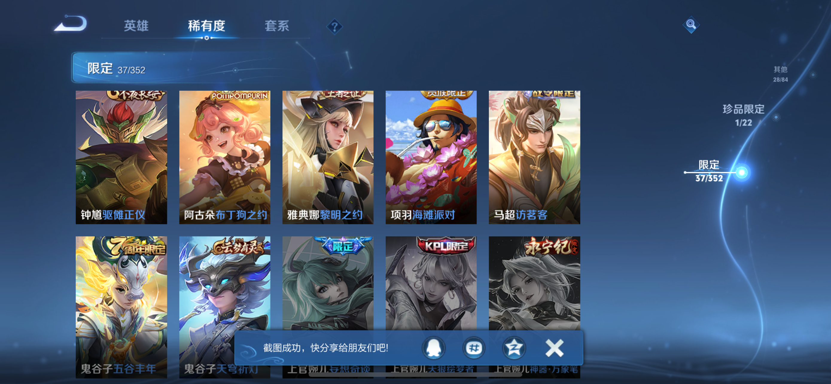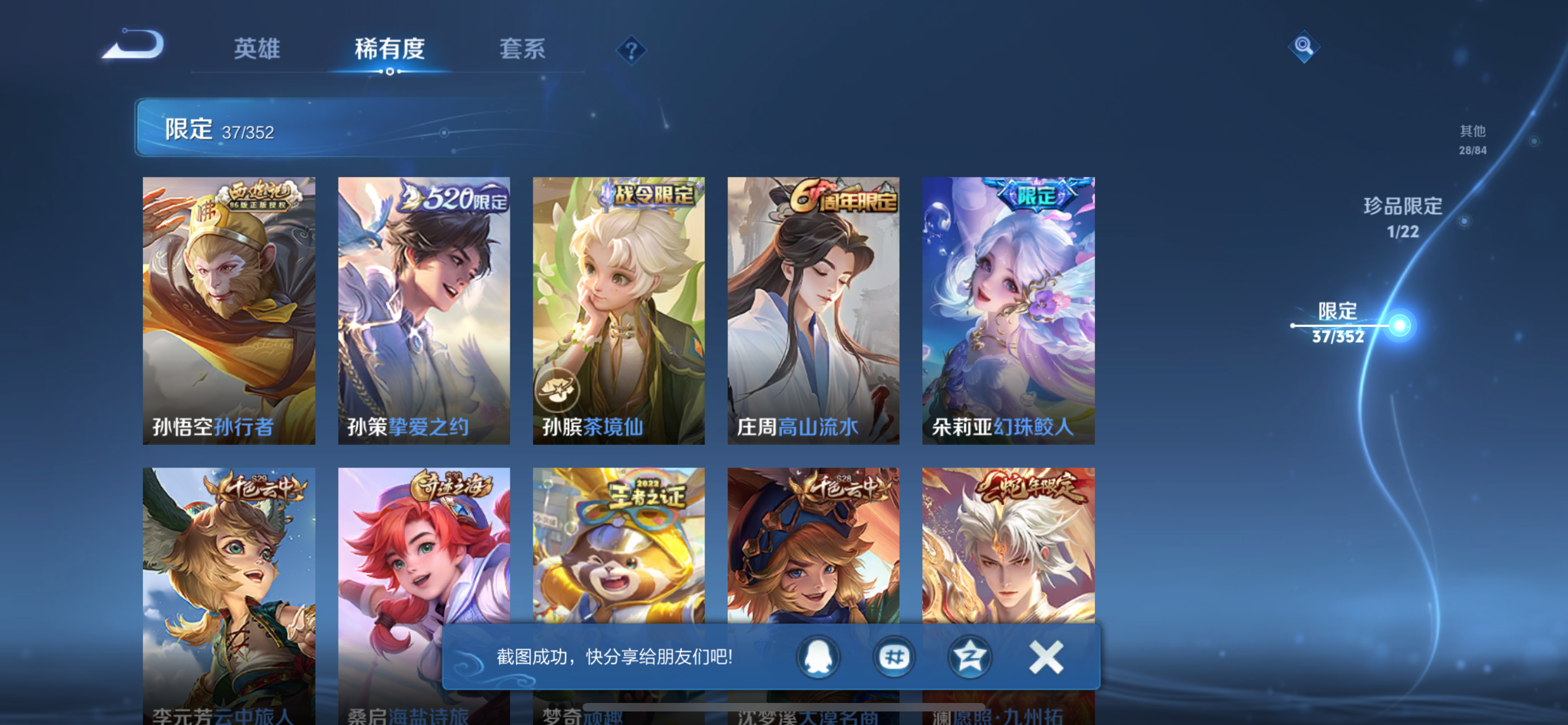 _2303320-0【秒换绑,无需等三天】v6-104皮肤【号内还有331点券】10王者印记金标蒙恬金标孙悟空