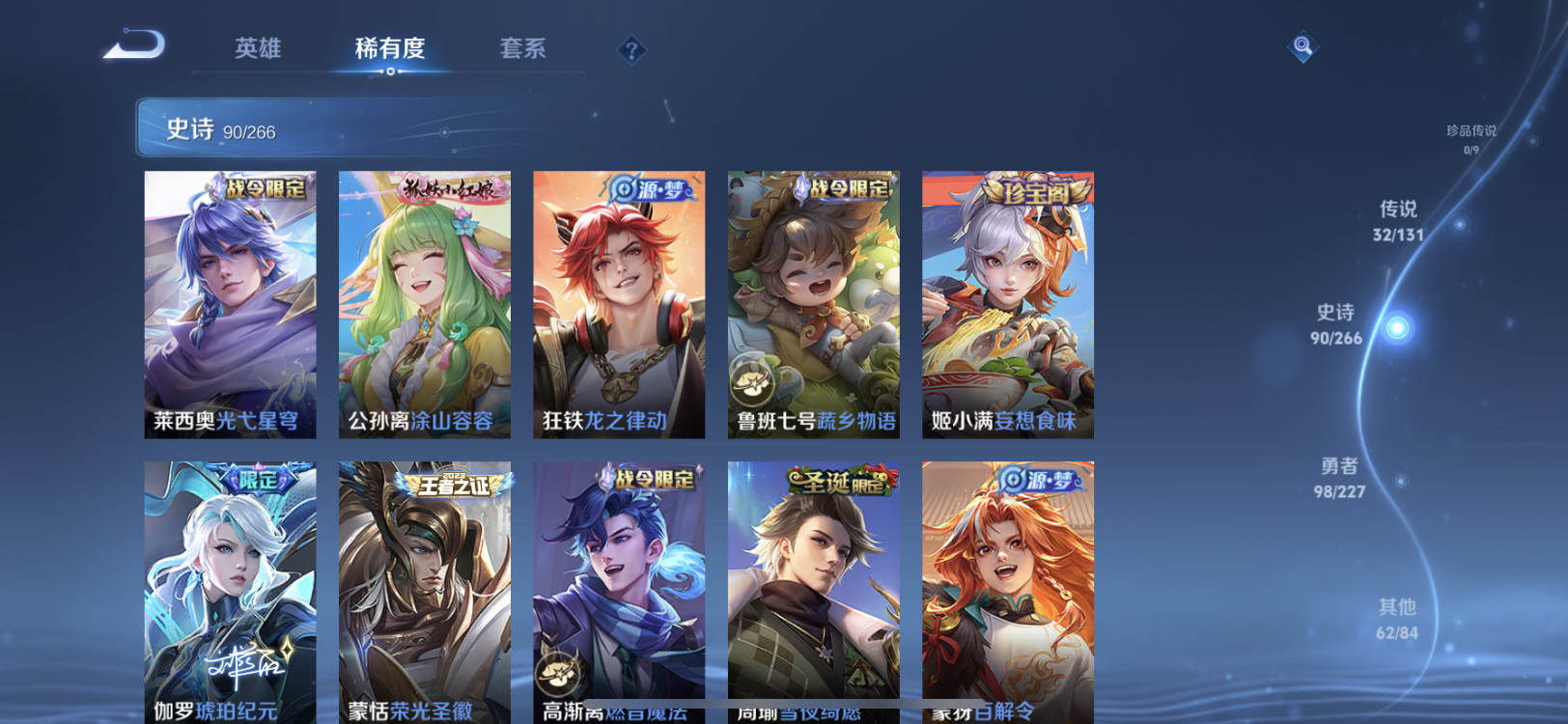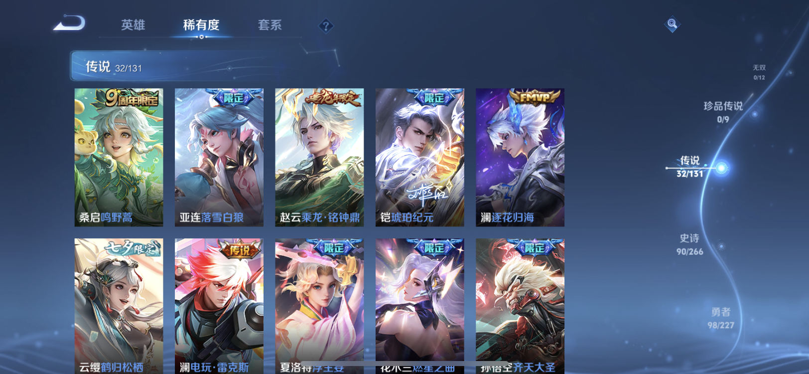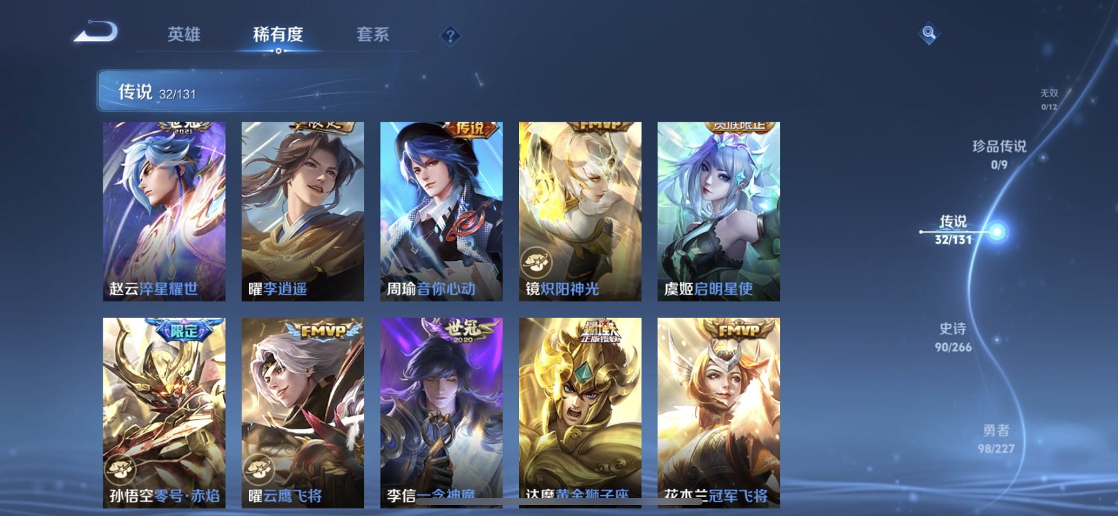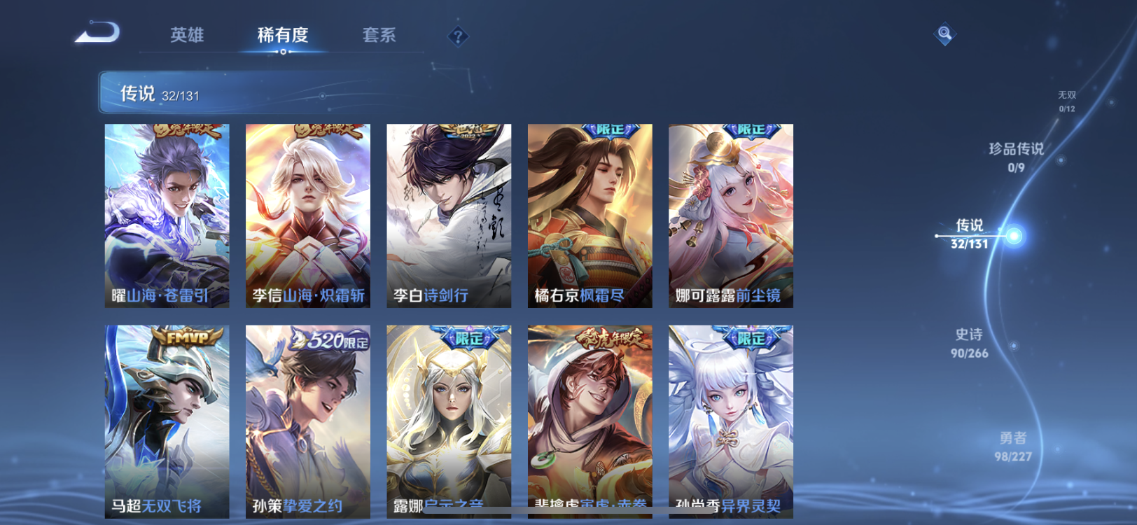 【王者荣耀】【lywz22144】珍品无双0 典藏2 无双0 珍品传说0 传说32 史诗90 英雄127 皮肤285 贵族8级 荣耀典藏:银白咏叹调|鸣剑·曳影__传说皮肤:鸣野蒿|枫霜尽|前尘镜|无双飞将|挚爱之约|启示之音|异界灵契|炽阳神光|启明星使|地狱之眼|黄金狮子座|一念神魔|云鹰飞将|冠军飞将|李|淬星耀世|电玩·雷克斯|浮生妄|齐天大圣|铠-琥珀纪元|零号·赤焰|落雪白狼|燃星之曲|诗剑行|武陵仙君|周瑜-音你心动|逐花归海|乘龙·铭钟鼎|云缨-鹤归松栖|山海·苍雷引|山海·炽霜斩|寅虎·赤拳__稀有限定:青龙志|玄武志|朱雀志|一生所爱|引擎之心|青春决赛季|傲雪梅呛|李小龙|山海·玄木吟|唐三藏|拒霜思|百解令|百木心呛|大漠名商|地狱燃心|电玩高手|古海寻踪|海滩派对|海盐诗旅|幻夜卜梦|皇家上将|火炮绅士|剑破天穹|江河有灵|金庭之子|镜-真我赫兹|蓝屏警告|黎明之约|魔术师|匿光追影者|奇幻香踪|千军破阵|擒涛扼浪|燃音魔法|荣光圣徽|沙漠行僧|探海日志|天狼狩猎者|天穹祈灯|玩趣恶龙|阿古朵-顽趣|妄想食味|无心|五谷丰年|午后时光|纤云弄巧|星界游侠|驯魔猎人|夜都怪侠|阴阳师|吟游魔法|驭风魔法|原初追逐者|真爱魔法|暗夜猫娘|暗隐猎兽者|缤纷独角兽|冰雪圆舞曲|苍穹之光|乘风破浪|大乔-猫狗日记|德古拉伯爵|电玩·爆裂旋风|伽罗-琥珀纪元|鬼剑武藏|金属风暴|李元芳-蔬乡物语|吕布-末日机甲|玫瑰异探|魅力维加斯|魅语|梦奇-顽趣|偶像歌手|千筹问战|青蛇|热力回旋|赏金猎手|绅士熊喵|圣诞狂欢|鲁班七号-蔬乡物语|水果甜心|水晶猎龙者|孙策-猫狗日记|晚萤|赵云-未来纪元|星夜王子|雪夜绮愿|摇滚巨星|鹰眼统帅|永昼|幽灵船长|月团寄思|云中君-时之祈愿|钟无艳-超时空战士|周瑜-真爱至上|逐浪之夏|紫霞仙子|赵怀真-鹤归松栖|噬灭天穹|修罗|曙光守护者|千年之狐|刘备-百相守梦|舞动绿茵|特工魅影|云中旅人|玲珑珍味|达摩-星际陆战队|流音漫舞|暖冬·兔眠|灵卜魔法|落雪兰心|龙之律动|涂山容容|光弋星穹|往忆晖光|荣光之誓__优质皮肤:尼罗河女神|一千零一夜|创世神祝|年年有余|埃及法老|孤猎|木偶奇遇记|熊喵少女|午夜歌剧院|露花倒影|激情绿茵|海之征途|天启骑士|碧珀绯影|秩序猎龙将|冰刃幻境|森|超能战警|英喵野望|维京掠夺者|海军大将|踏雪寻梅|启蛰|伊势巫女|画中游|生化警戒|威尼斯狂欢|第七人偶|潮流仙人|街头旋风|绝影神呛|地府判官|荷鲁斯之眼|幸存者|赤焰之缨|隐刃|前尘|特种部队|三太子|范海辛|龙域领主|爱与和平|花间舞|魇语军师|极冰防御线|棒球奇才|东海龙王|灼热之刃|圣殿之光|神奇女侠|战争女神|霓裳曲|加勒比小姐|异域舞娘|修竹墨客|万圣前夜|暗都幽影|功夫炙烤|幻夜行动|聚星闪耀|虎啸剑宗|次元突破|鲨炮海盗猫|野性能量|丁香结|虹云星官|坚韧之力|幻乐之宴|功夫老勺|命运角斗场|幻想奇妙夜|海滩丽影|阿尔法小队|兔女郎|死亡骑士|黄金武士|天使之翼|宫本武藏-未来纪元|忍·炎影|街头霸王|教廷特使|漠中幻影|时空谍影|破局者|王牌新星|零食大作战|西部游侠|太极少年|乐园追猎者|牛运亨通|幻泉雾影|潮玩造梦师|危途狂花|胡桃狂想曲|潮玩牛仔|进击墨子号|拳王|时尚教父|白色死神|白执事|大发明家|缤纷绘卷|纽约教父|龙腾万里|西施-归虚梦演|鲁班大师-归虚梦演|热血海滩|龙舞盛年|乓乓大师|五福同心|盾山-圆桌骑士|蒙犽-归虚梦演|万事如意|曜-归虚梦演|唤灵魔甲|太乙真人-圆桌骑士|沉稳之力|赤莲之焰|程咬金-群星魔术团|完美运算|化身博士|花好人间|春野之旅|万象初新|潮玩骑兵|蔚蓝守将|劲辣红锅|特工战影|炽热元素使|妄想特派|无双福将__贵族等级:贵族8级__王者段位:荣耀王者捡漏59段打野号 万战金标暃 万战金标凯 万战金标赵怀真 万战曜 万战宫本等多限定打野皮肤