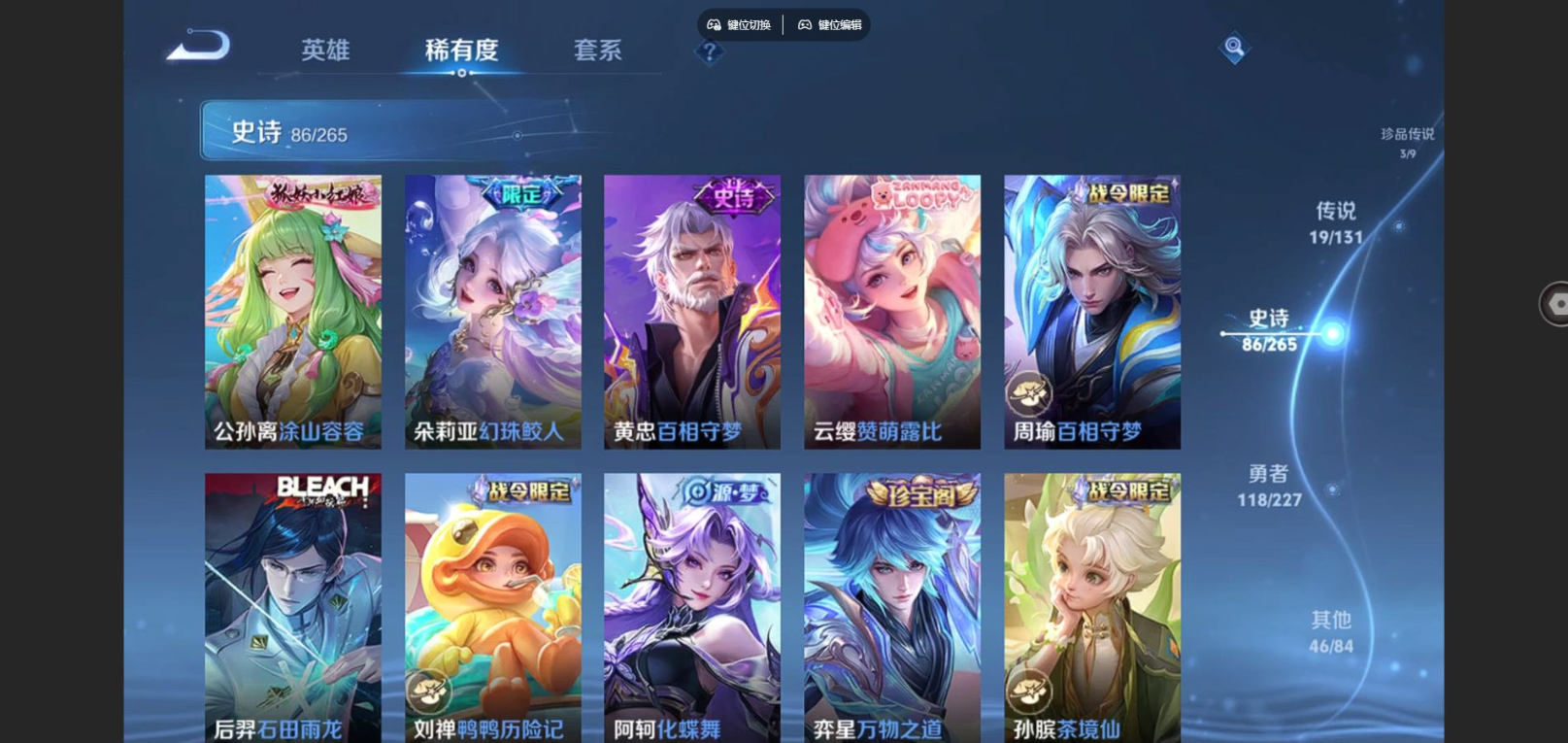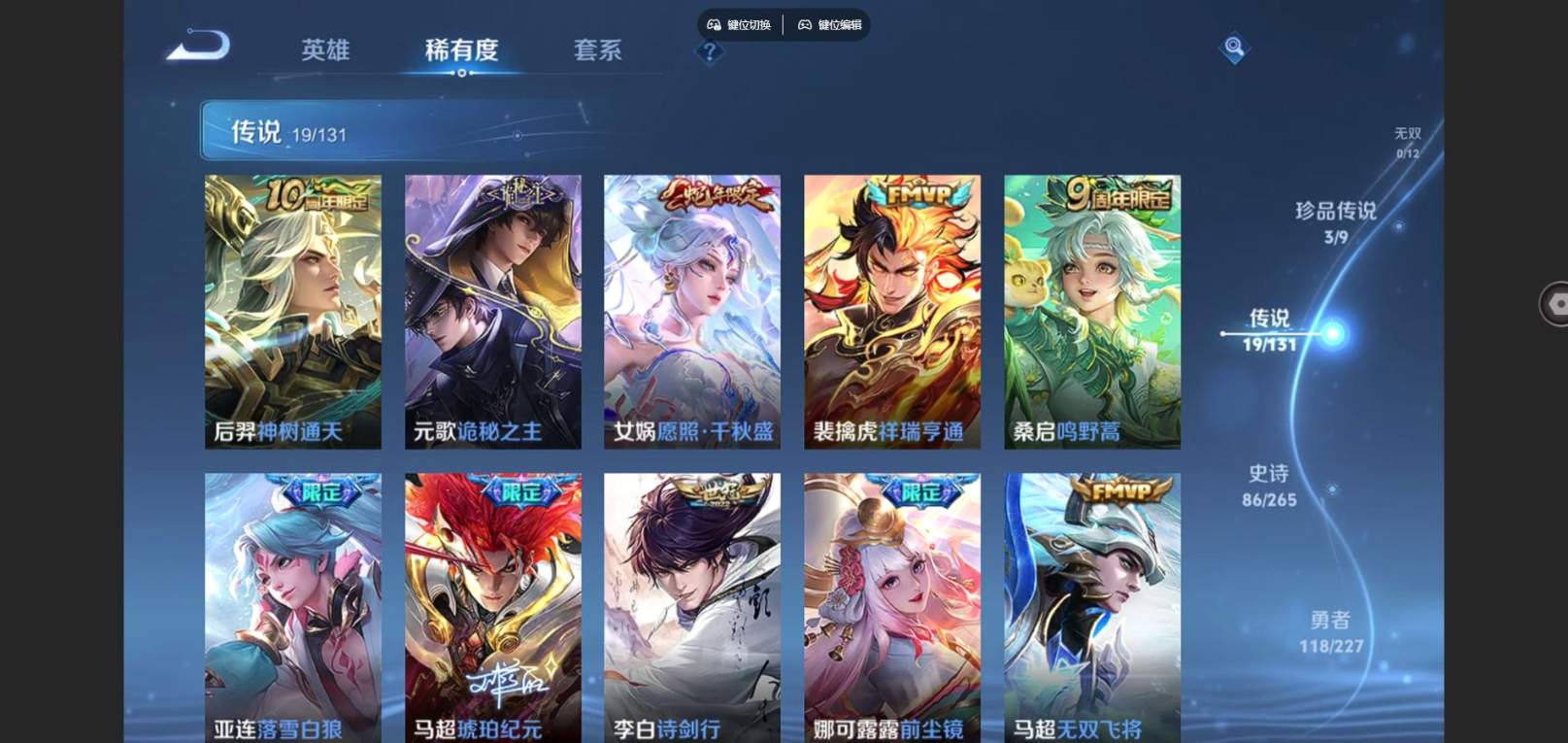 127英雄-273皮肤-125英雄-273皮肤v7-1典藏3珍品传说19传说 2星传说 破晓神光 未来机甲 【全皮英雄】 马超全皮 【典藏】 鸣剑曳影 【珍品传说】 朽木白哉 黑崎一护 时之奇旅孙策 【传说】 落雪白狼 马超琥珀纪元 神树通天 诡秘之主 祥瑞亨通 愿照千秋盛 鸣野蒿 白虎志 时雨天司 前尘镜 启示之音 挚爱之约 无双飞将 诗剑行 炽阳神光 黄金狮子座 黄金射手座 黄金白羊座 末日机