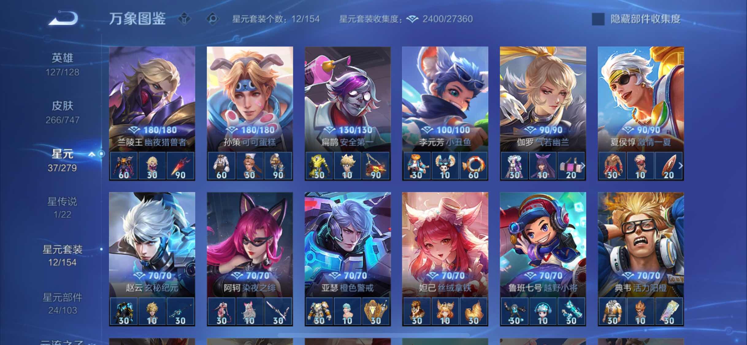 【精品推荐22传说v8号·最初的交响·怪盗基德·愿照山河定·愿照九州拓·无双飞将·绛天战甲·一念神魔·至尊宝】【可二次】w7888-苹果q-127英雄-266皮肤-10王者印记-260铭文-贵族积分6w【贵族8】【1典藏·1珍品传说·1星传说·22传说·4按键】【因赛季更新游戏段付以上号为准!】 【英雄全皮】:蒙恬全皮,司空震全皮,影全皮 【荣耀典藏】:伽罗最初的交响 【星元皮肤】:宫本武