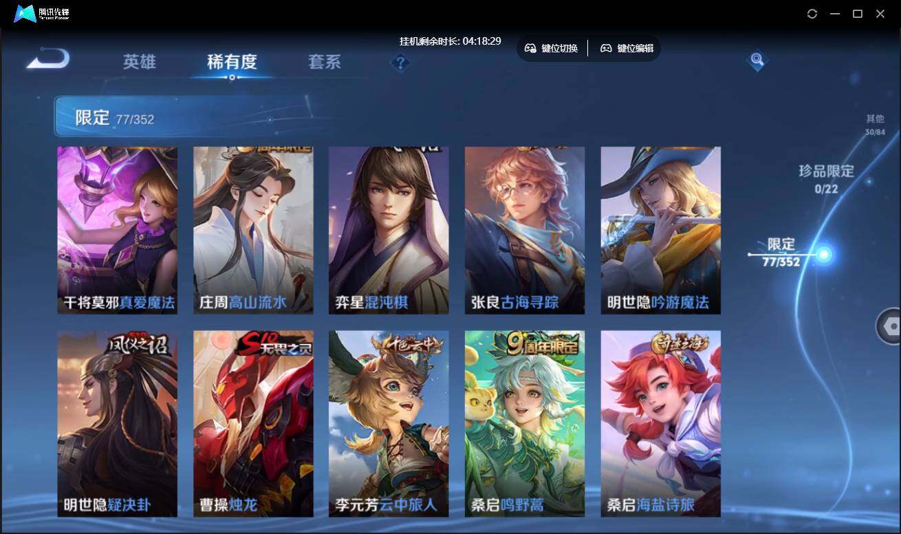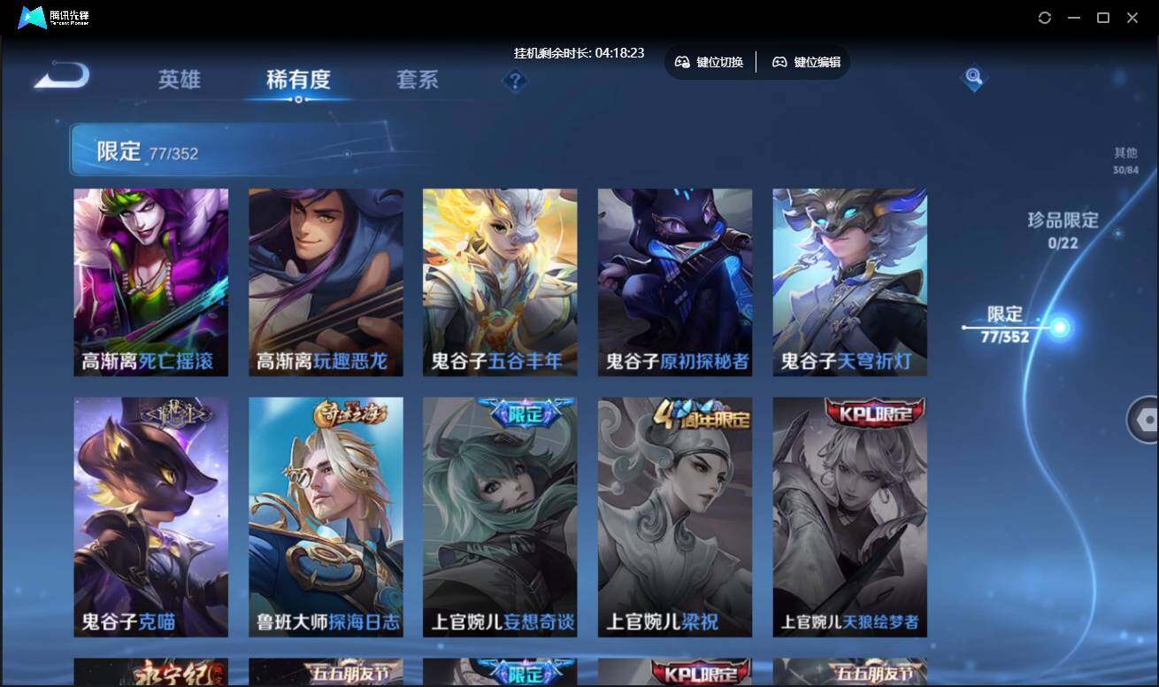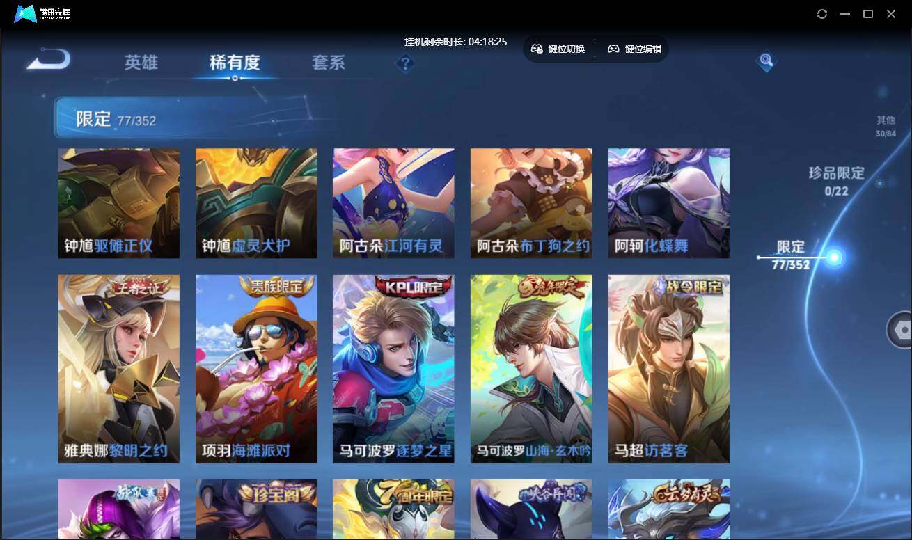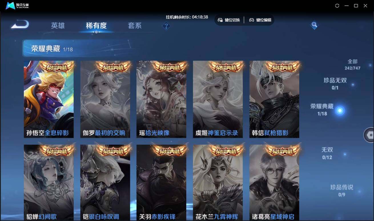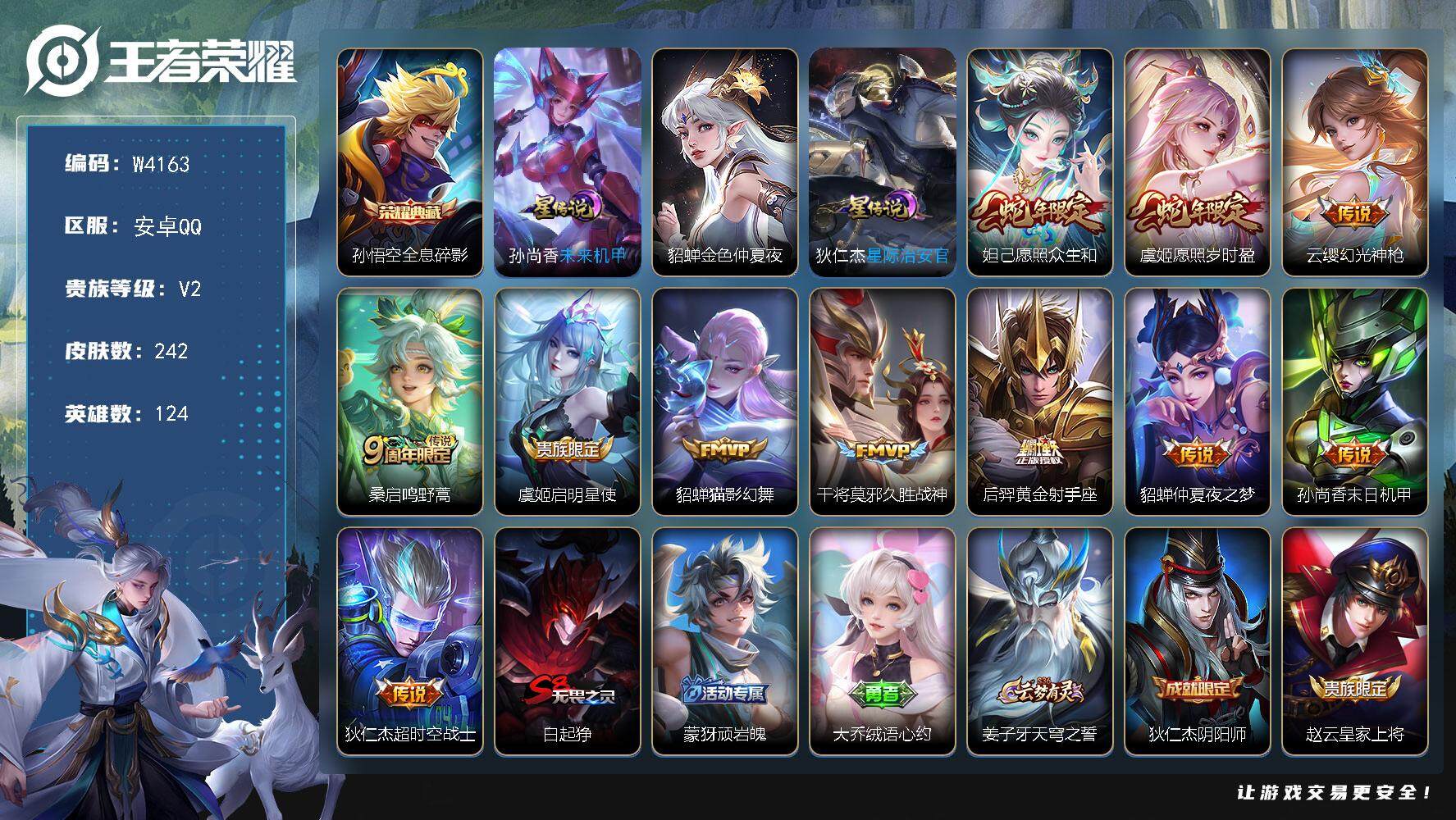 124英雄-242皮肤-贵族2/皮肤242/典藏1/传说11/史诗67/英雄124/鬼谷子全皮/孙悟空-全息碎影/狄仁杰-星际治安官/孙尚香-未来机甲/貂蝉-金色仲夏夜之梦/妲己愿照众生和/虞姬愿照岁时盈/云缨幻光神呛/桑启鸣野蒿/虞姬-启明星使/貂蝉-猫影幻舞/干将莫邪-久胜战神/后羿-黄金射手座/貂蝉-仲夏夜之梦/孙尚香-末日机甲/狄仁杰-超时空战士/白起-狰/蒙犽顽岩魄/大乔绒语心约/姜子牙天穹之誓/狄仁杰-阴