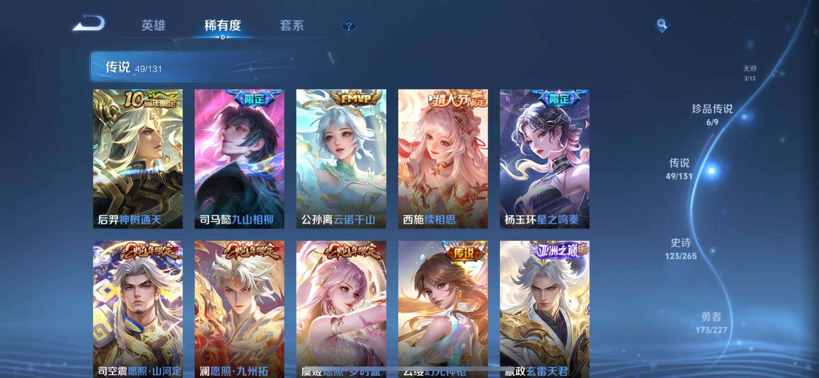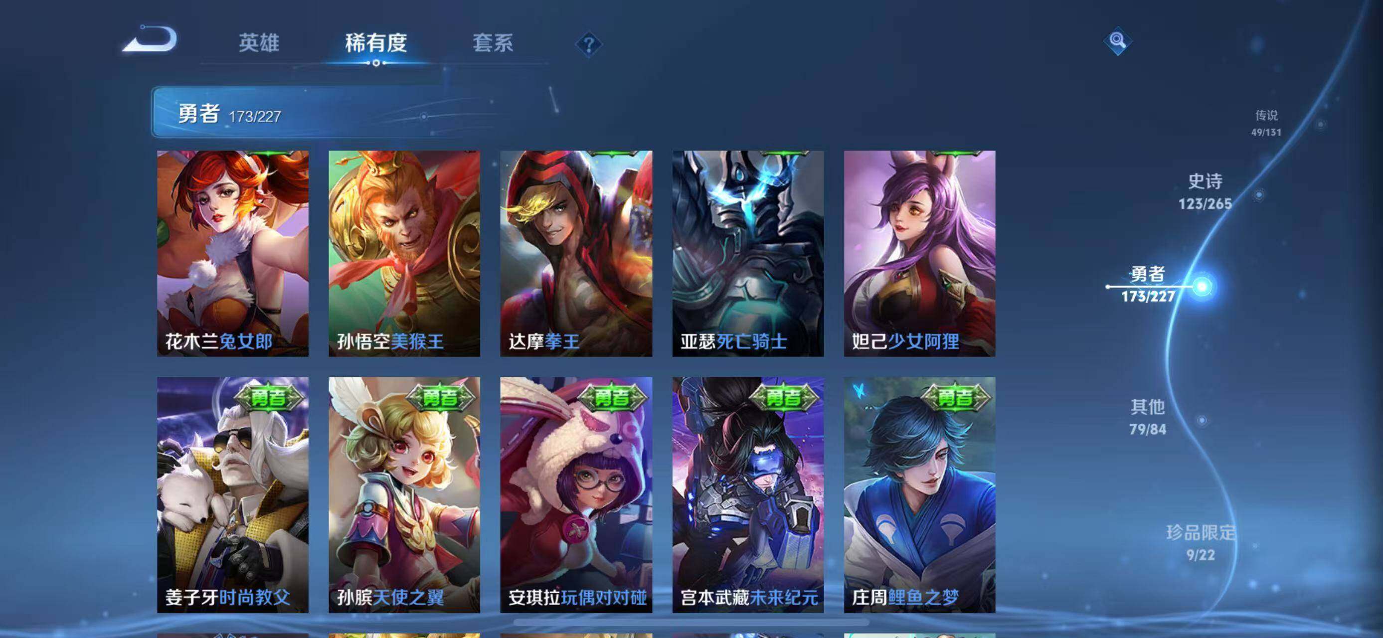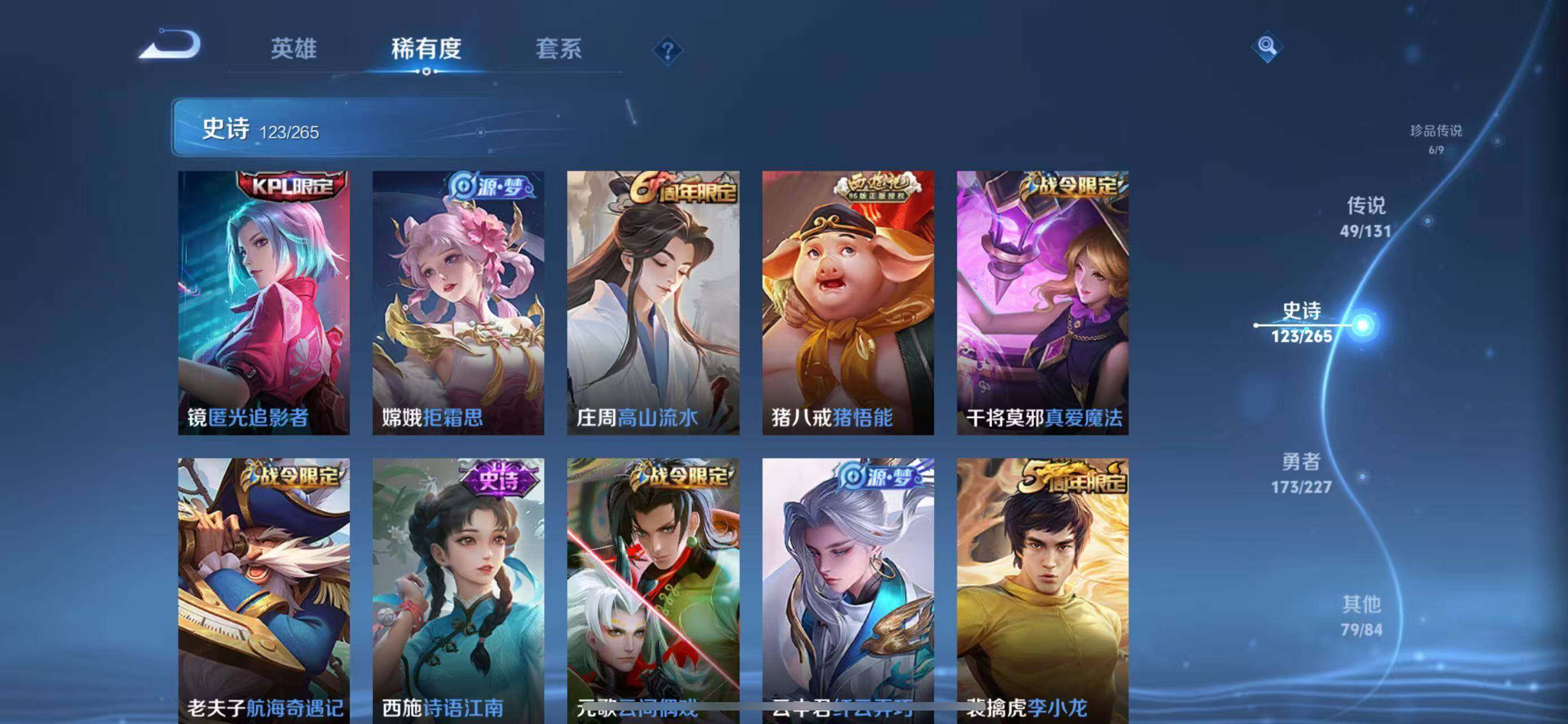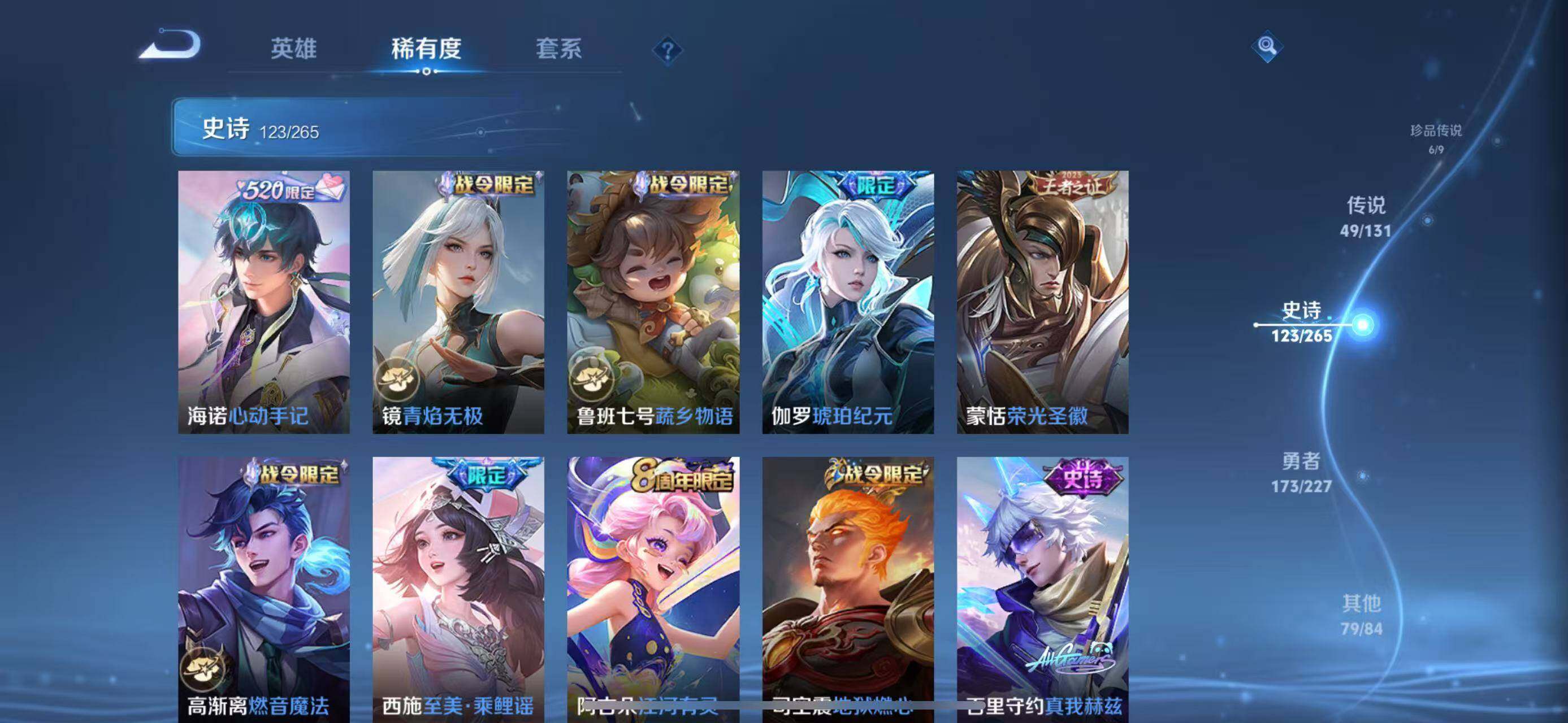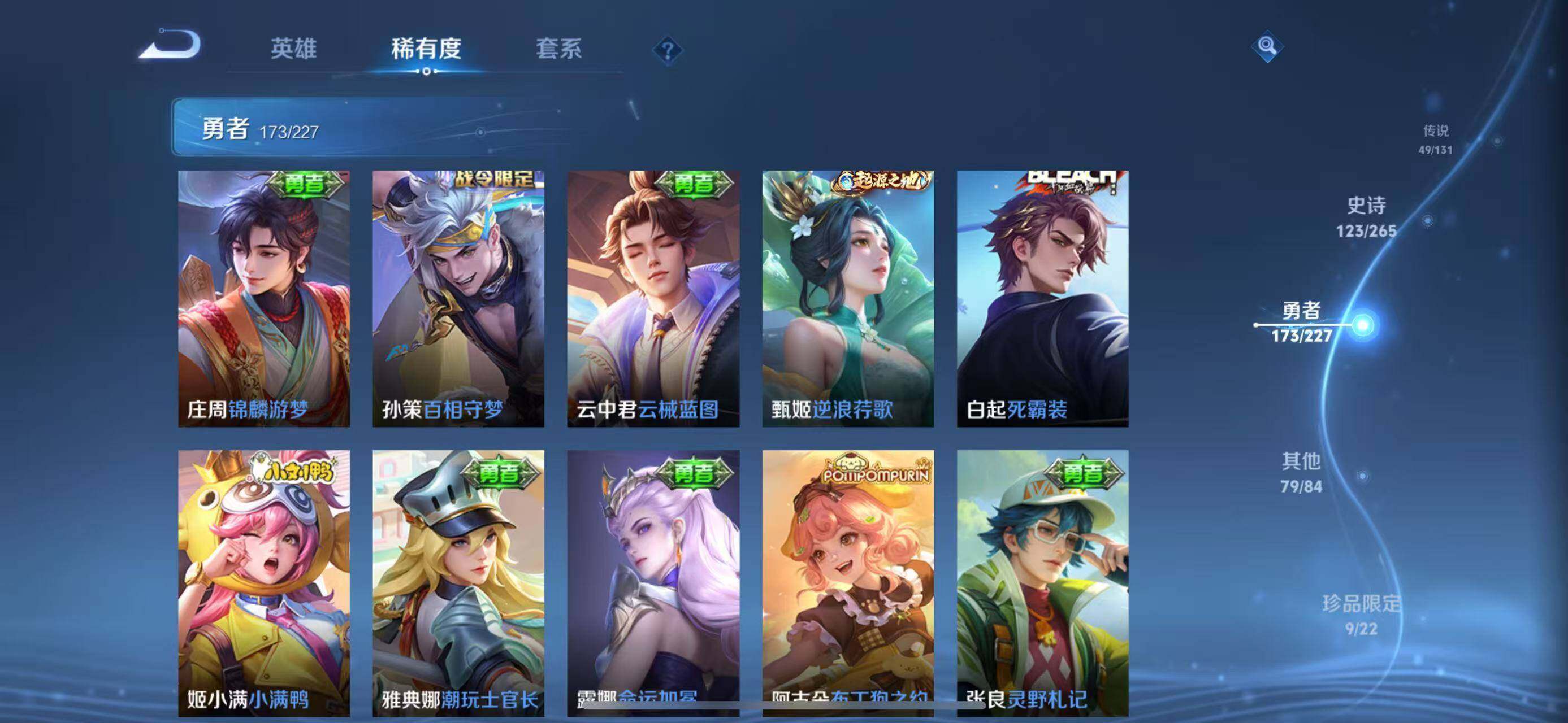 【wzsa996】贵族9/皮肤434/典藏1/传说49/史诗123/英雄127/刘邦全皮/孙权全皮/橘右京全皮/鬼谷子全皮/盾山全皮/猪八戒全皮/蒙恬全皮/镜全皮/司空震全皮/暃全皮/空空儿全皮/影全皮/海诺全皮/李白-鸣剑·曳影/貂蝉-馥梦繁花/小乔-时之魔女/曜-器灵·螭龙剑/马可波罗-怪盗基德/鲁班七号-江户川柯南/孙策-时之奇旅/嫦娥-器灵·落星盏/暃-朽木白哉/宫本武藏-黑崎一护/后