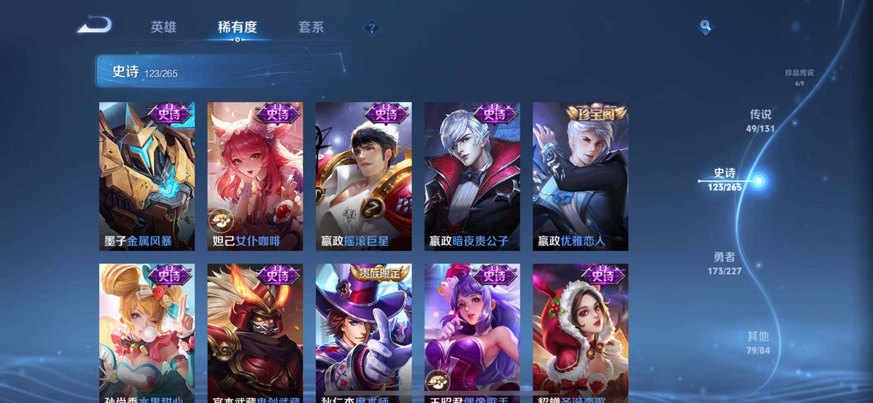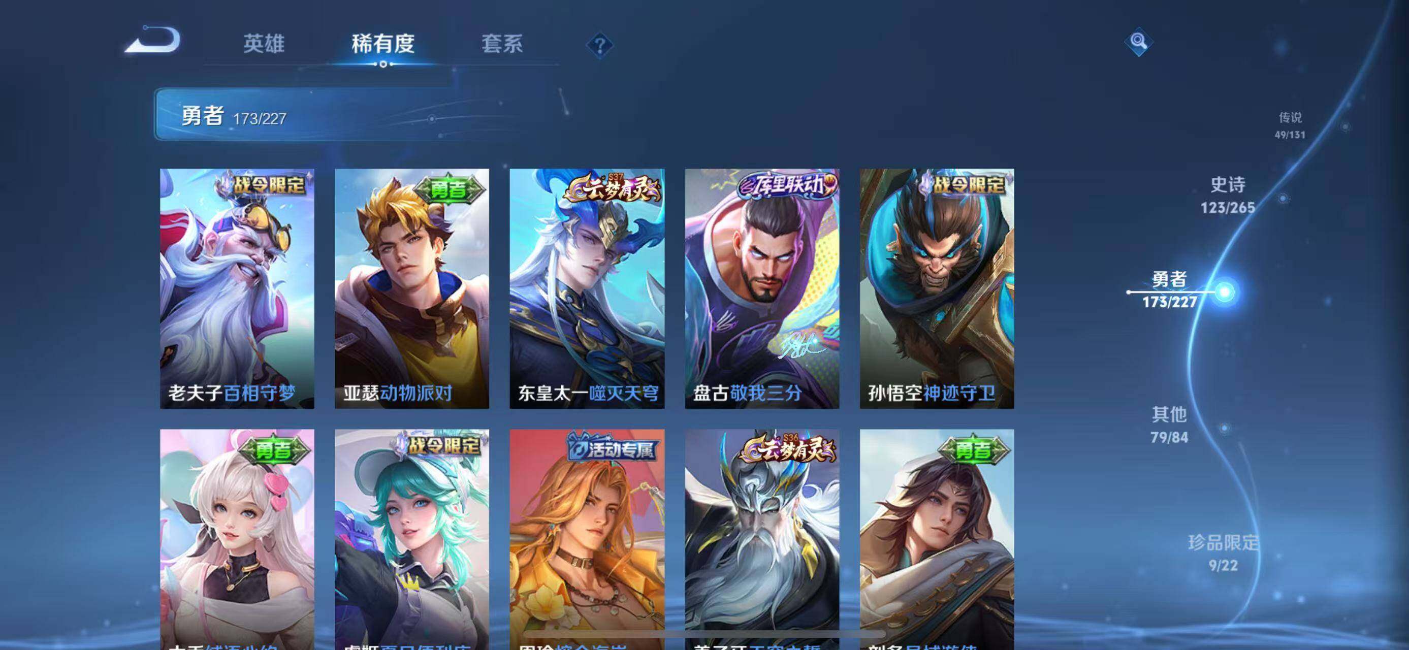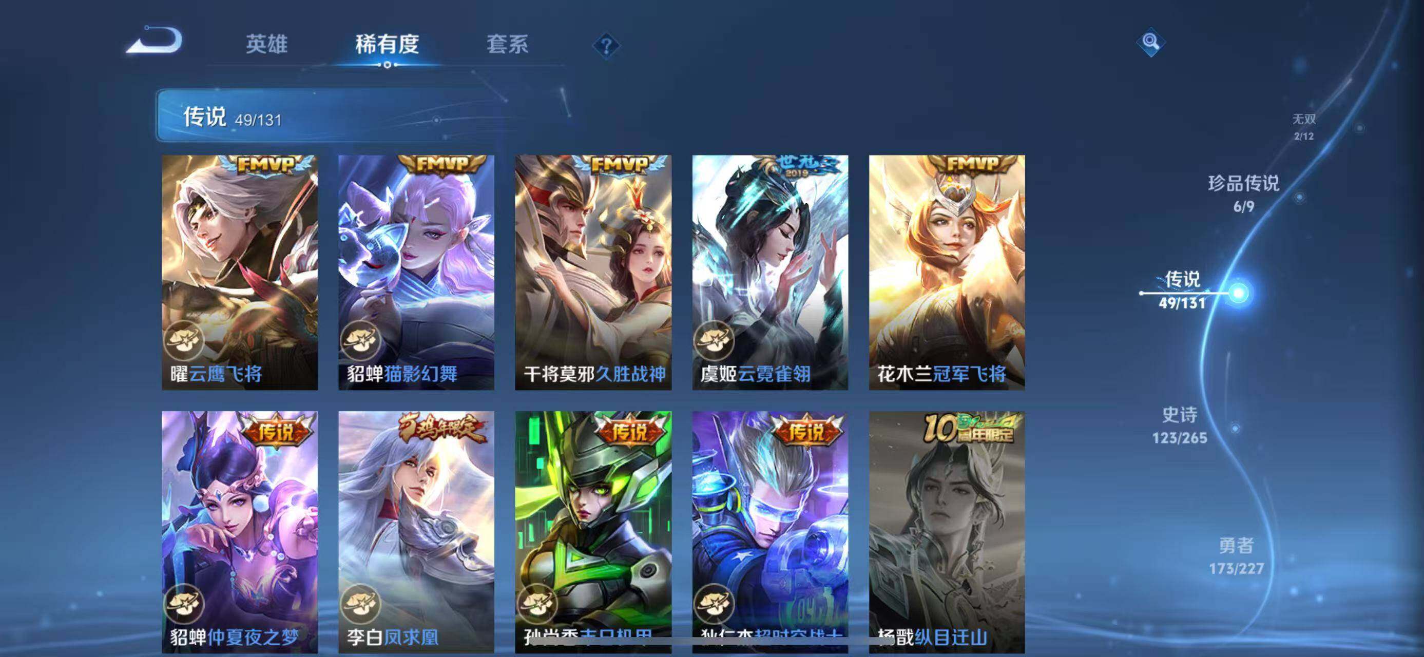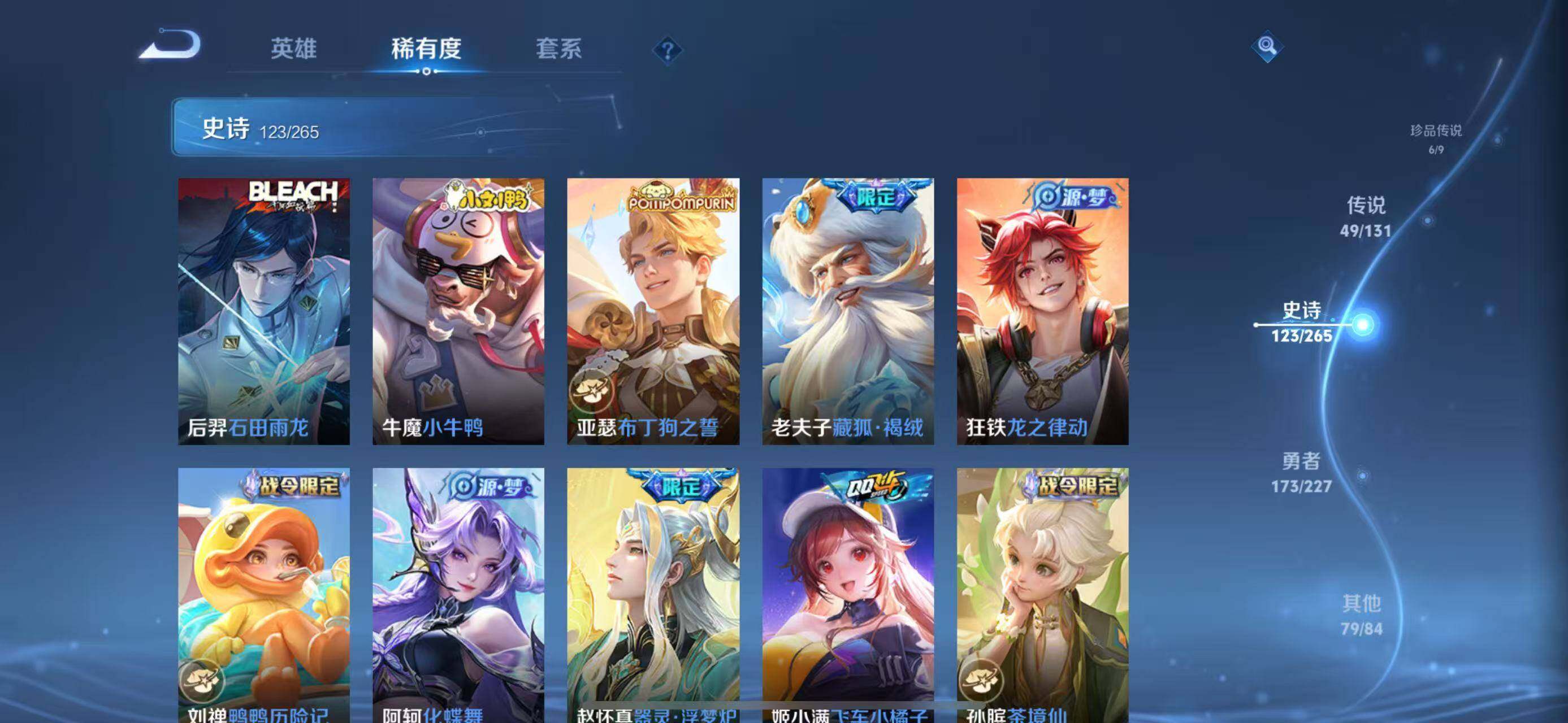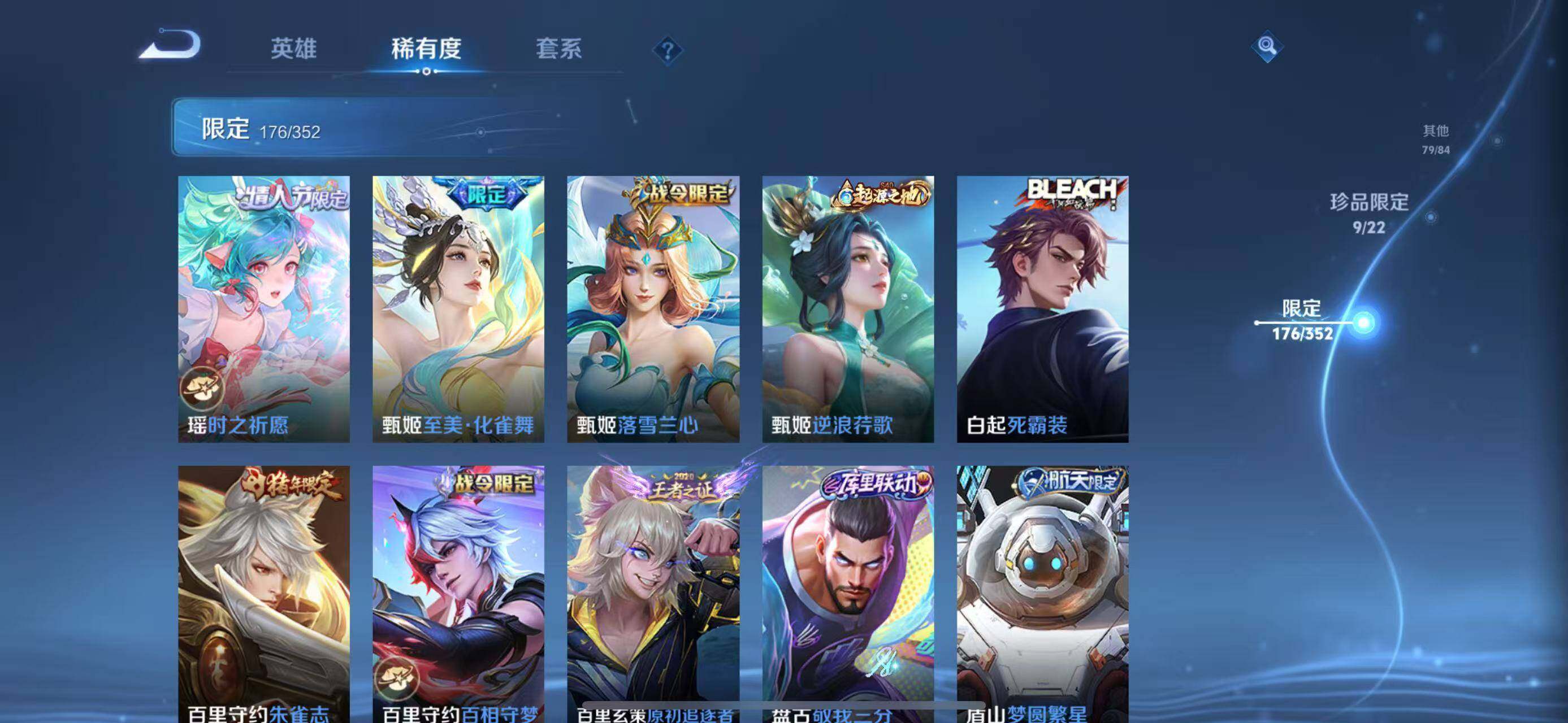 【wzsa996】贵族9/皮肤434/典藏1/传说49/史诗123/英雄127/刘邦全皮/孙权全皮/橘右京全皮/鬼谷子全皮/盾山全皮/猪八戒全皮/蒙恬全皮/镜全皮/司空震全皮/暃全皮/空空儿全皮/影全皮/海诺全皮/李白-鸣剑·曳影/貂蝉-馥梦繁花/小乔-时之魔女/曜-器灵·螭龙剑/马可波罗-怪盗基德/鲁班七号-江户川柯南/孙策-时之奇旅/嫦娥-器灵·落星盏/暃-朽木白哉/宫本武藏-黑崎一护/后