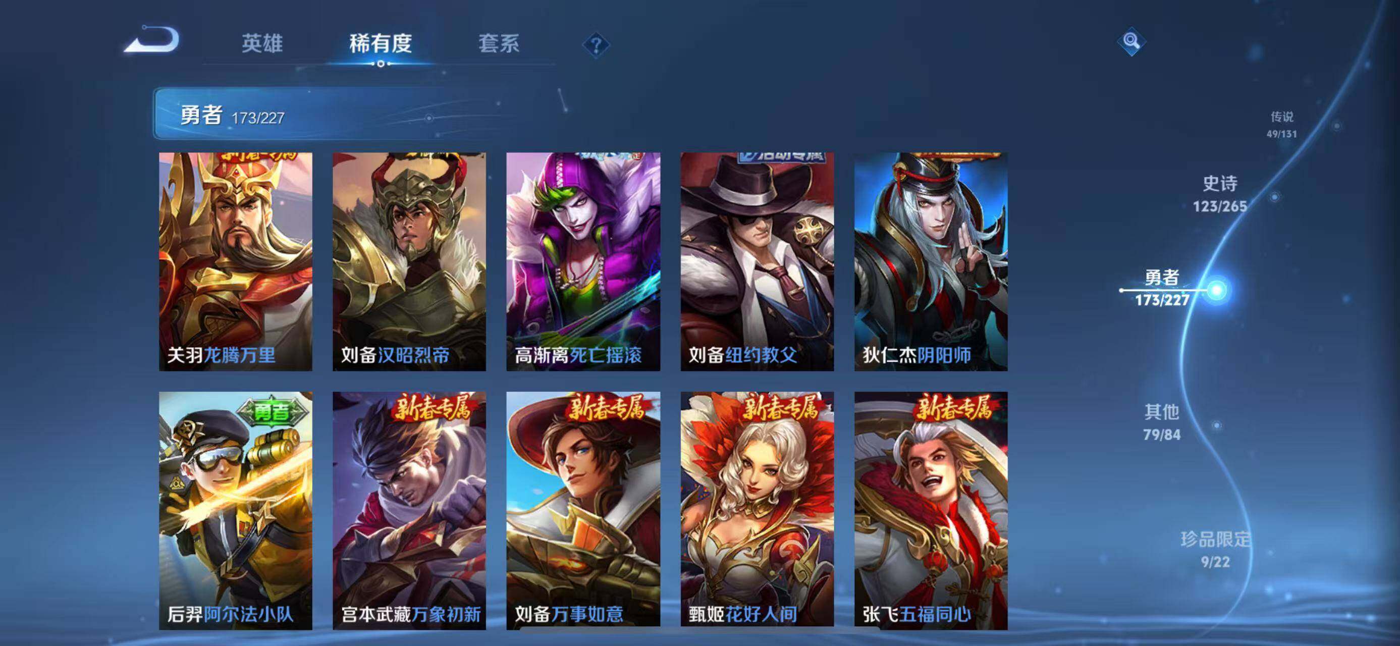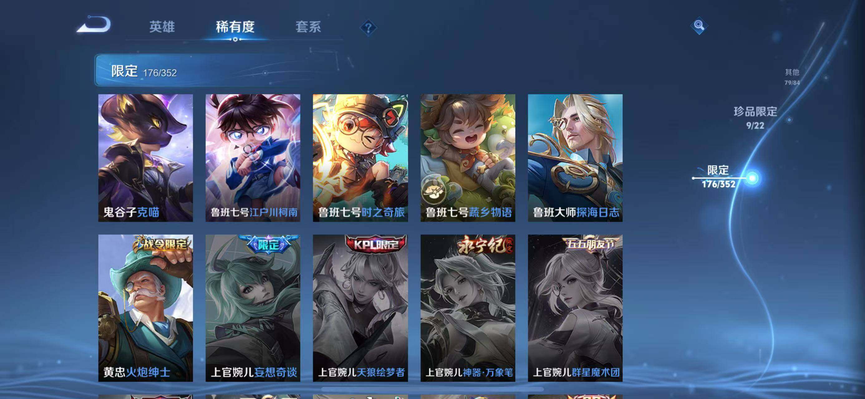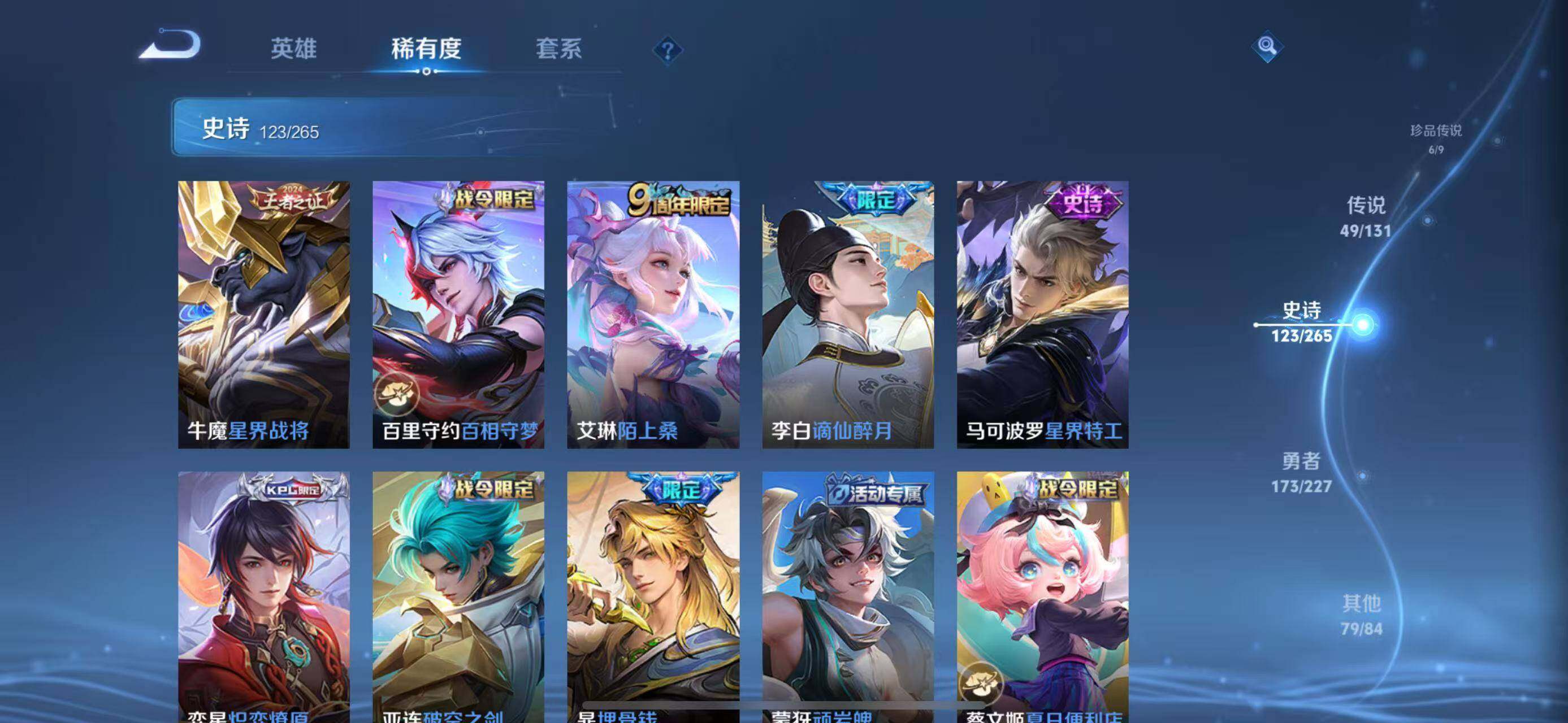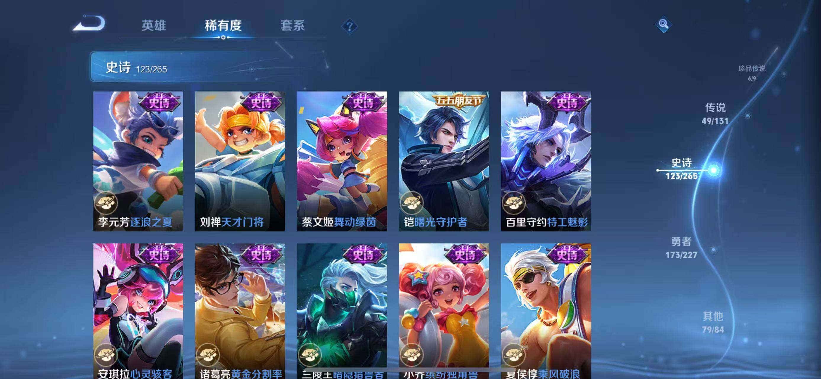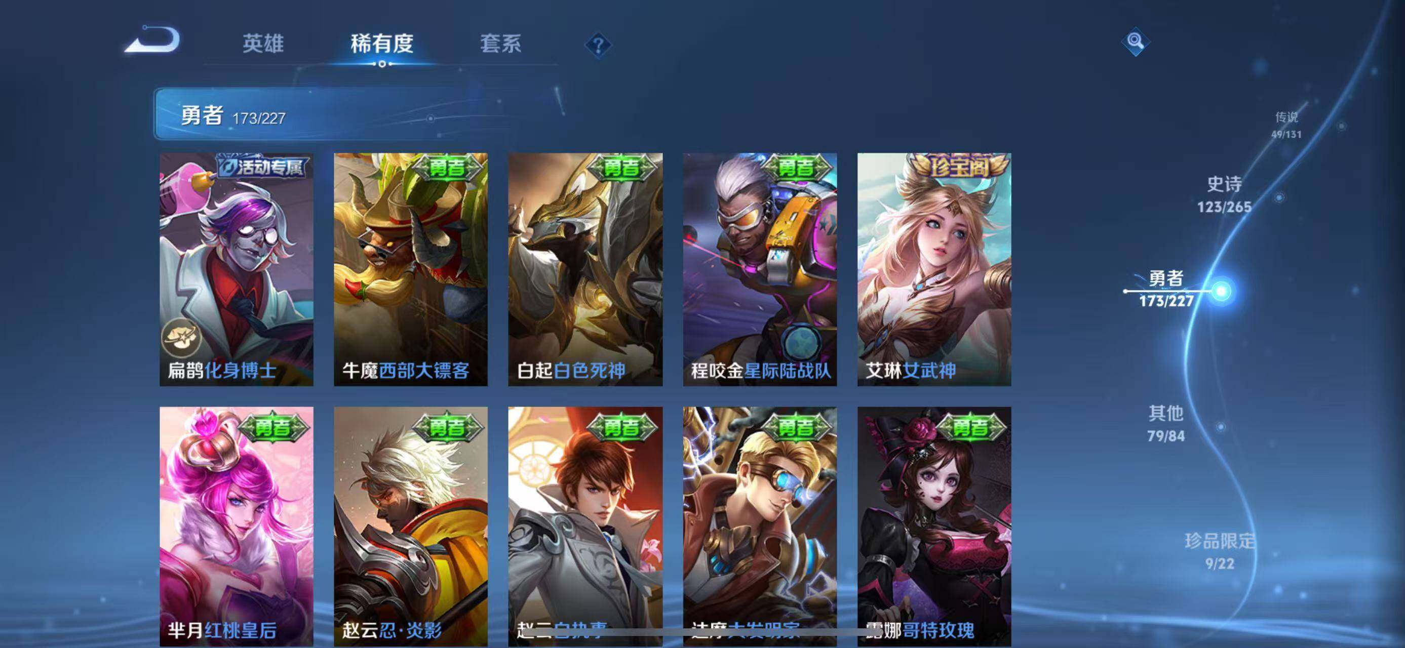 【wzsa996】贵族9/皮肤434/典藏1/传说49/史诗123/英雄127/刘邦全皮/孙权全皮/橘右京全皮/鬼谷子全皮/盾山全皮/猪八戒全皮/蒙恬全皮/镜全皮/司空震全皮/暃全皮/空空儿全皮/影全皮/海诺全皮/李白-鸣剑·曳影/貂蝉-馥梦繁花/小乔-时之魔女/曜-器灵·螭龙剑/马可波罗-怪盗基德/鲁班七号-江户川柯南/孙策-时之奇旅/嫦娥-器灵·落星盏/暃-朽木白哉/宫本武藏-黑崎一护/后
