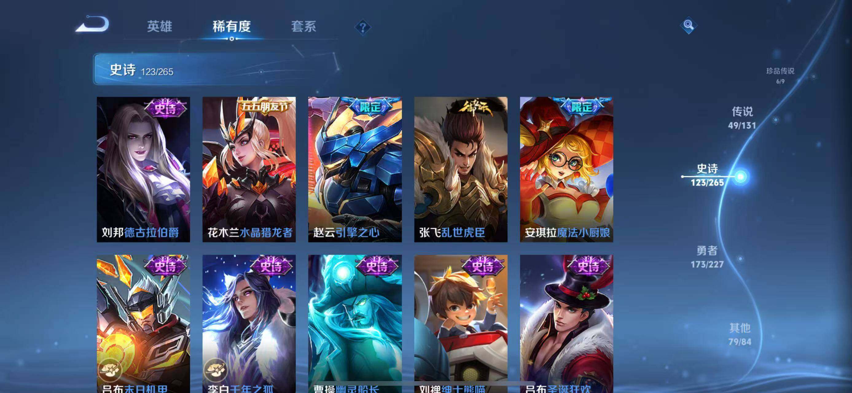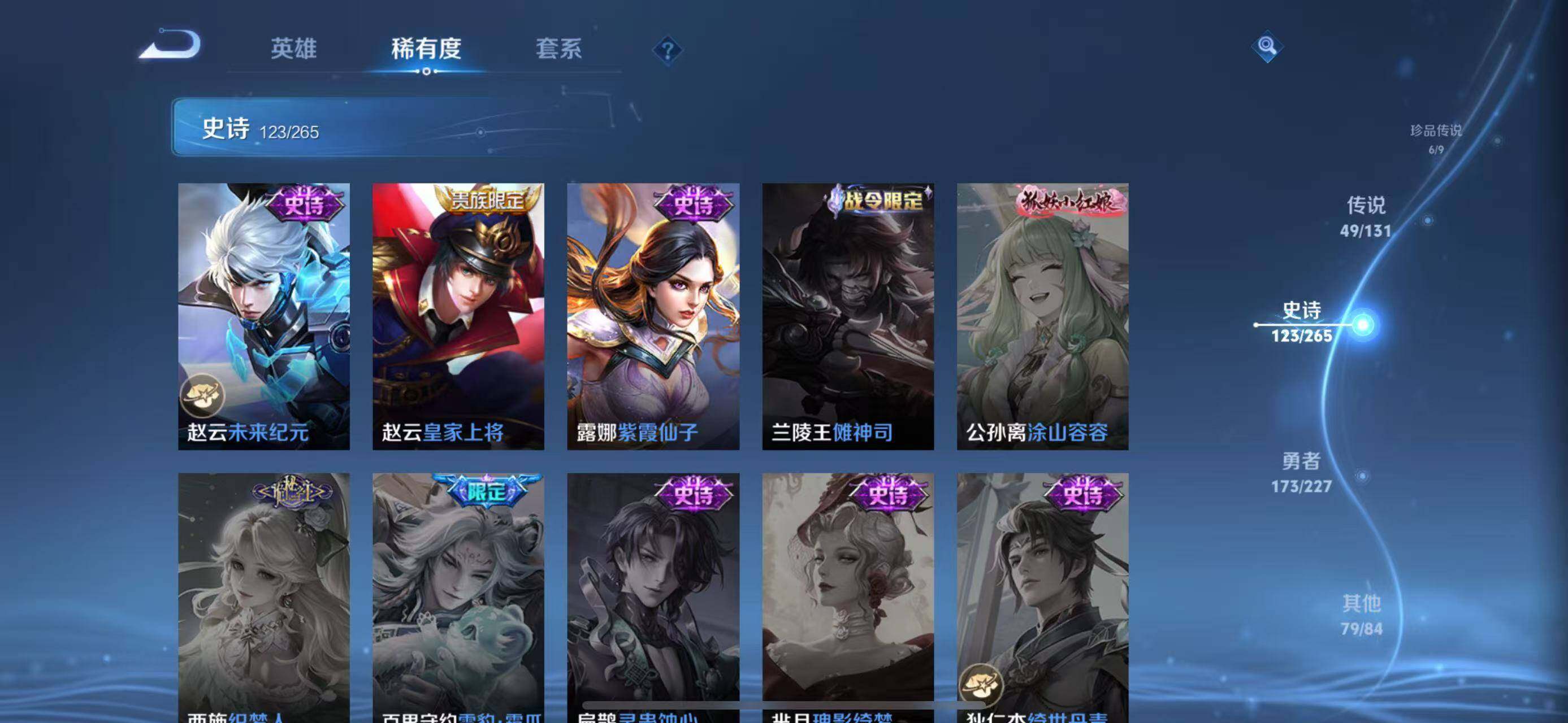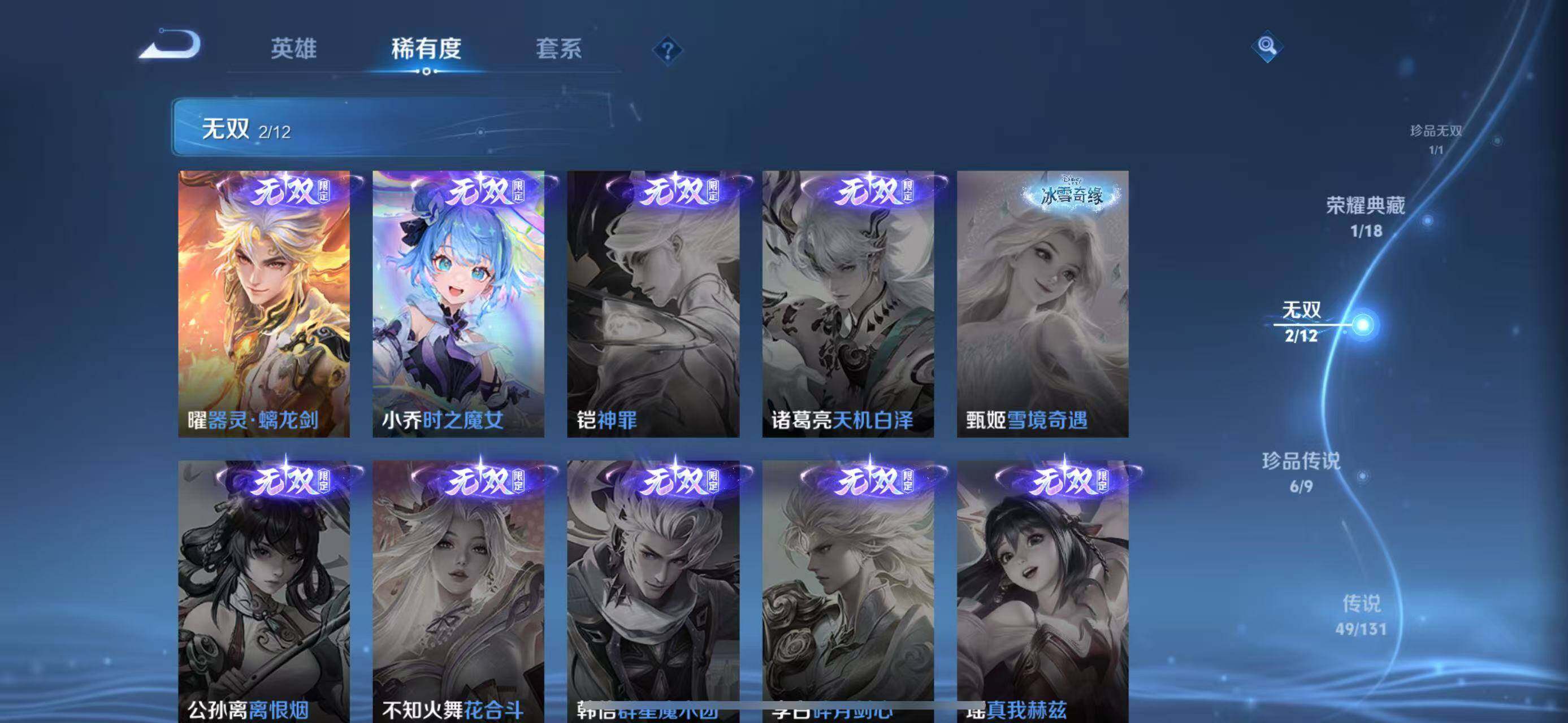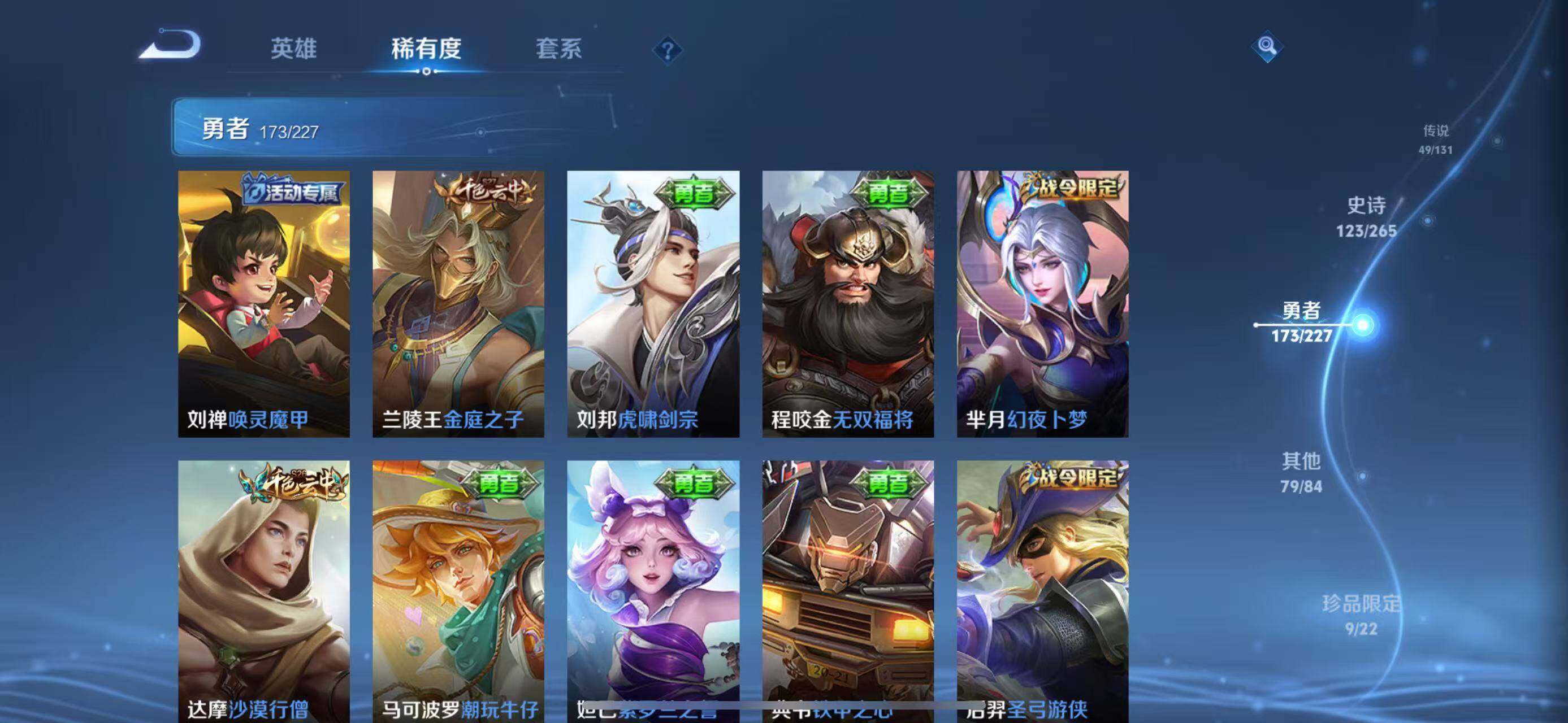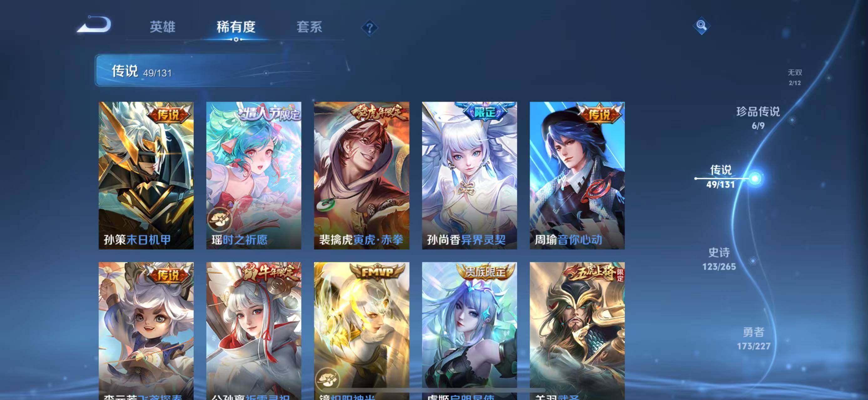 【wzsa996】贵族9/皮肤434/典藏1/传说49/史诗123/英雄127/刘邦全皮/孙权全皮/橘右京全皮/鬼谷子全皮/盾山全皮/猪八戒全皮/蒙恬全皮/镜全皮/司空震全皮/暃全皮/空空儿全皮/影全皮/海诺全皮/李白-鸣剑·曳影/貂蝉-馥梦繁花/小乔-时之魔女/曜-器灵·螭龙剑/马可波罗-怪盗基德/鲁班七号-江户川柯南/孙策-时之奇旅/嫦娥-器灵·落星盏/暃-朽木白哉/宫本武藏-黑崎一护/后
