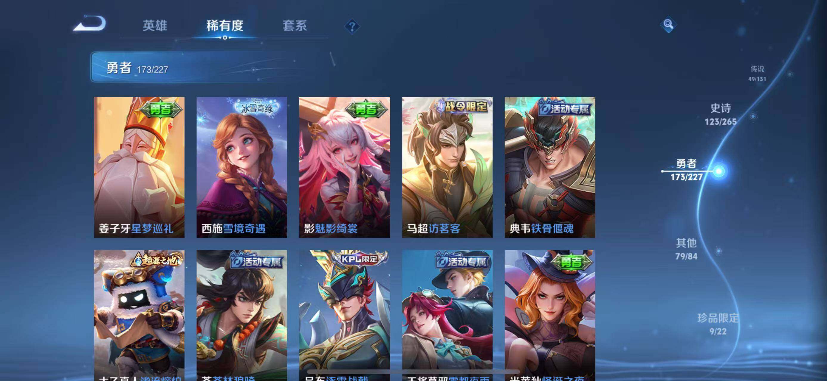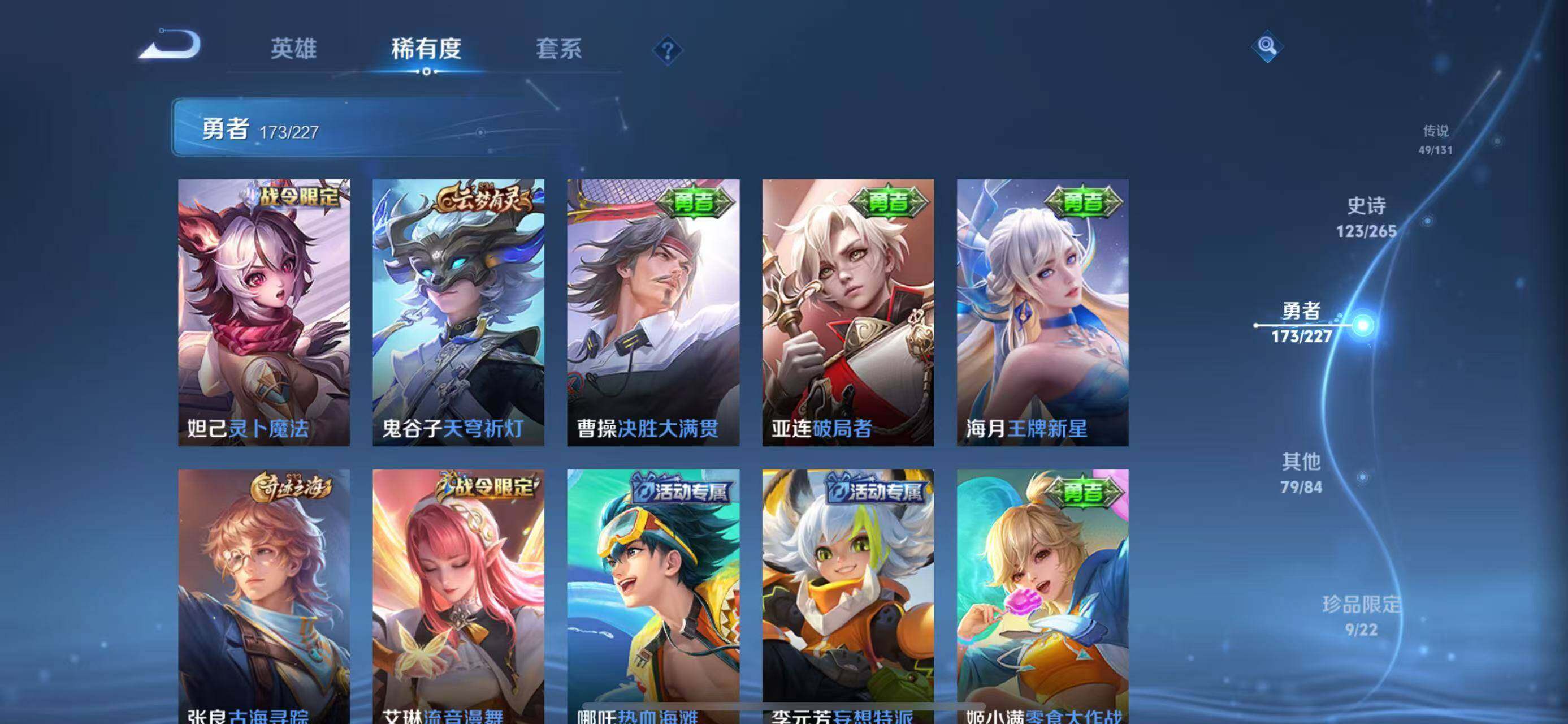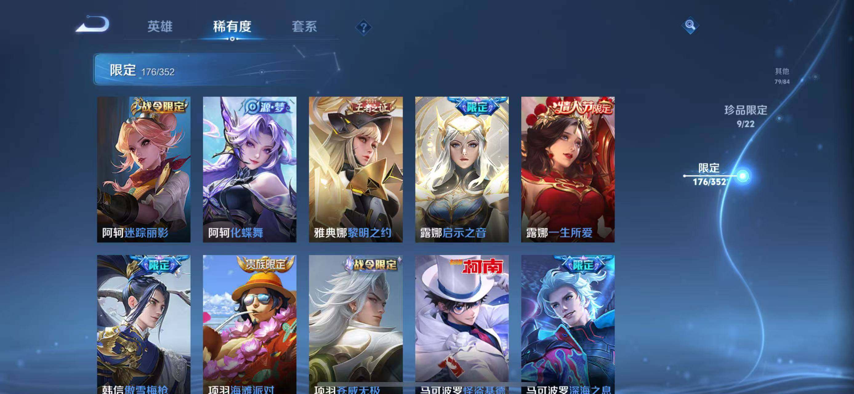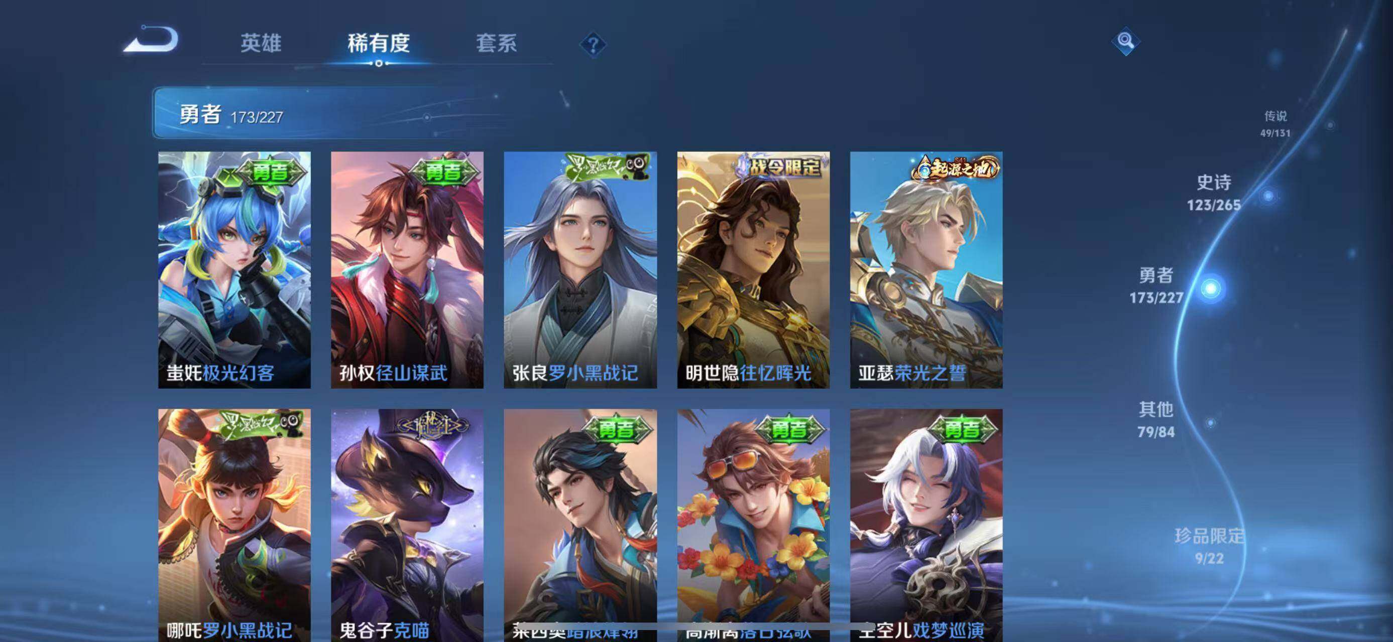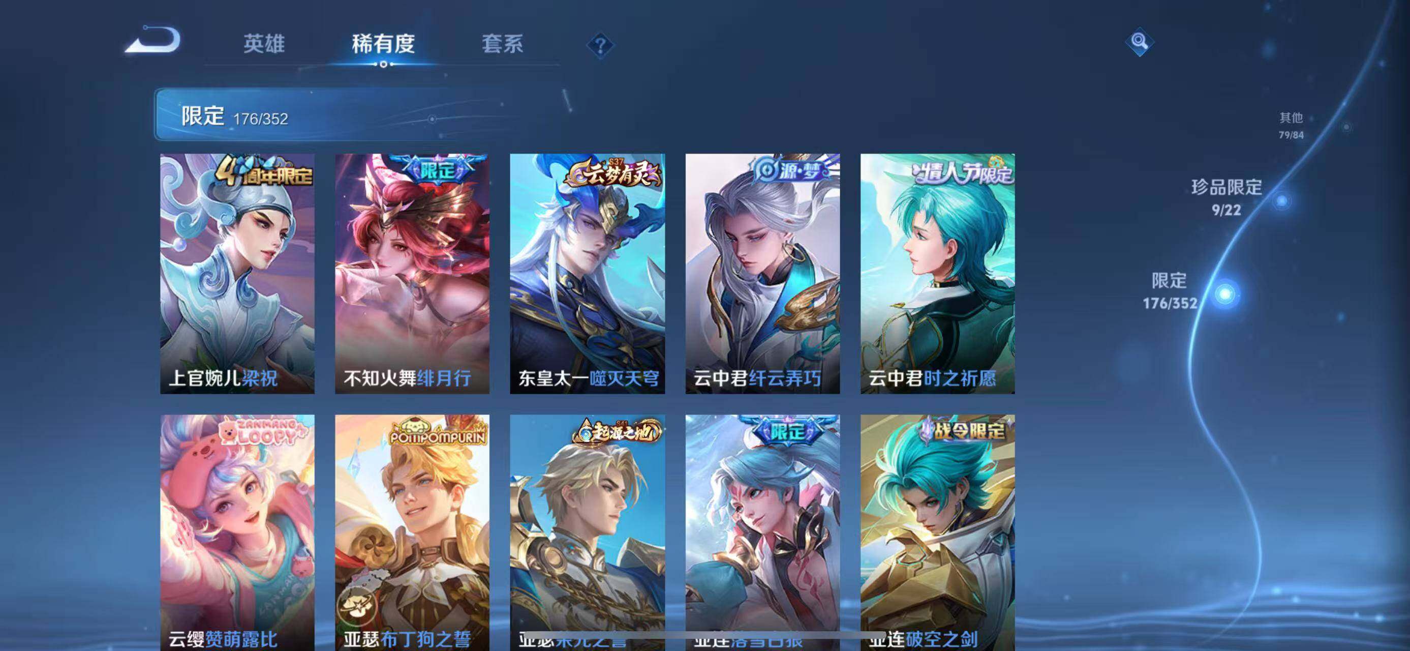 【wzsa996】贵族9/皮肤434/典藏1/传说49/史诗123/英雄127/刘邦全皮/孙权全皮/橘右京全皮/鬼谷子全皮/盾山全皮/猪八戒全皮/蒙恬全皮/镜全皮/司空震全皮/暃全皮/空空儿全皮/影全皮/海诺全皮/李白-鸣剑·曳影/貂蝉-馥梦繁花/小乔-时之魔女/曜-器灵·螭龙剑/马可波罗-怪盗基德/鲁班七号-江户川柯南/孙策-时之奇旅/嫦娥-器灵·落星盏/暃-朽木白哉/宫本武藏-黑崎一护/后