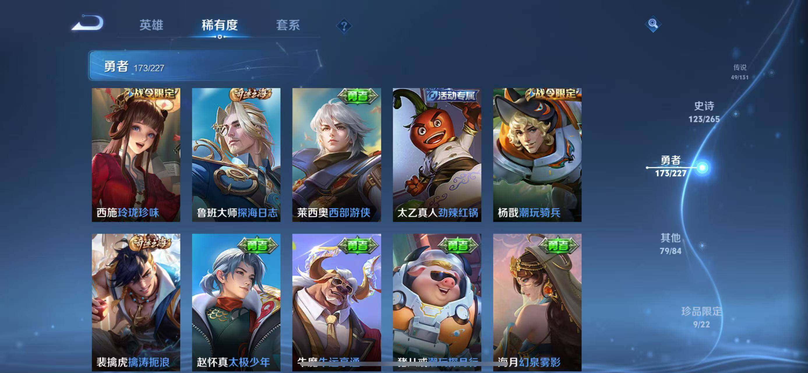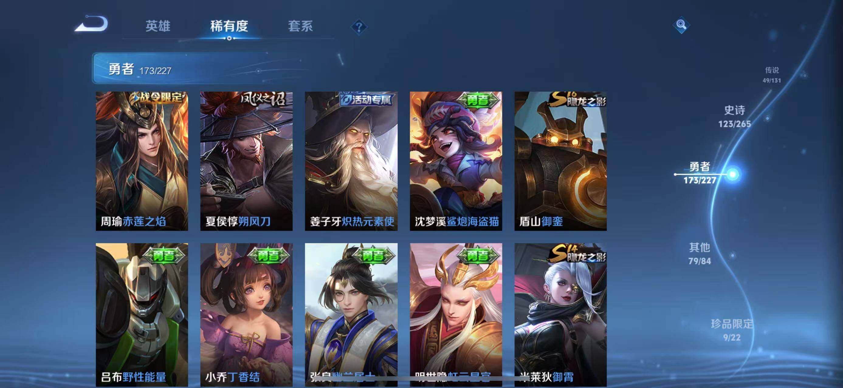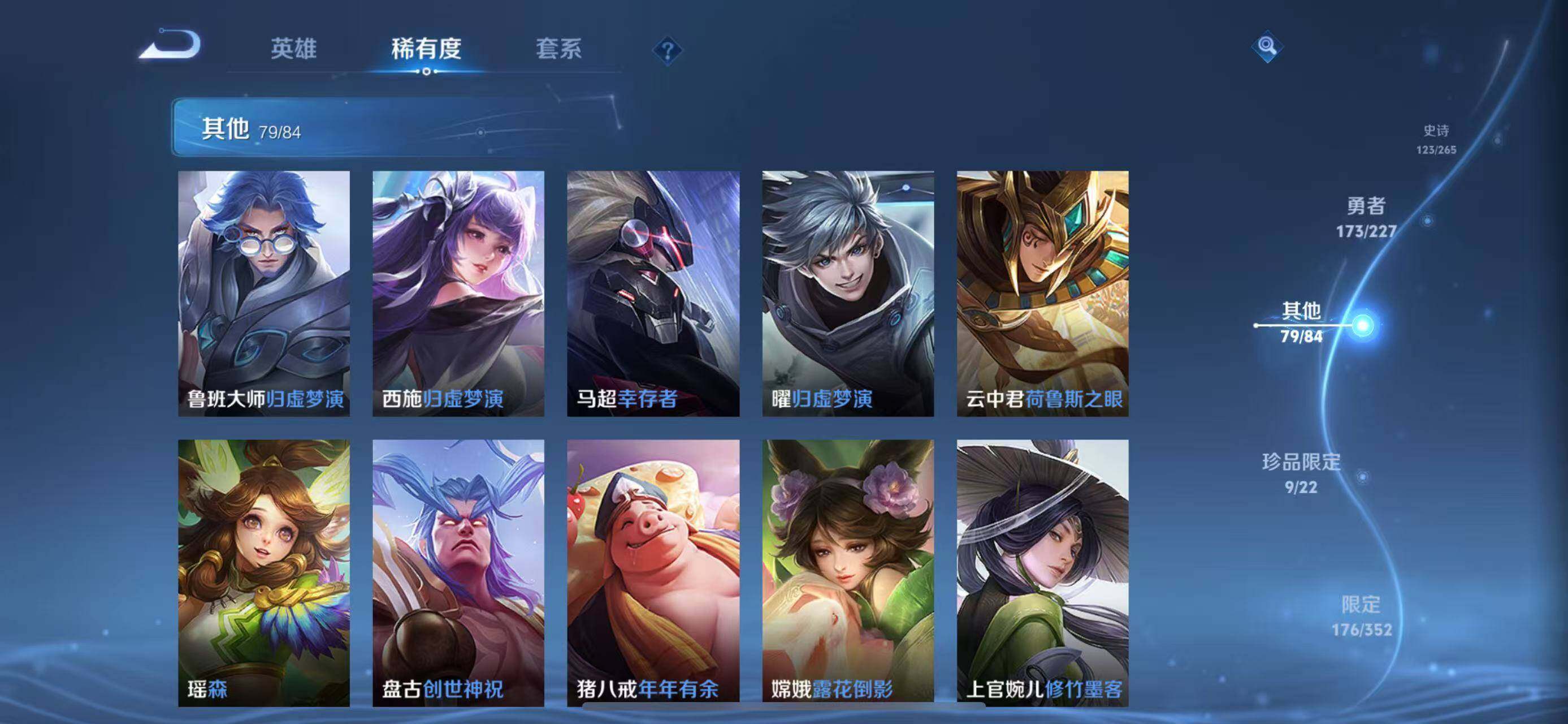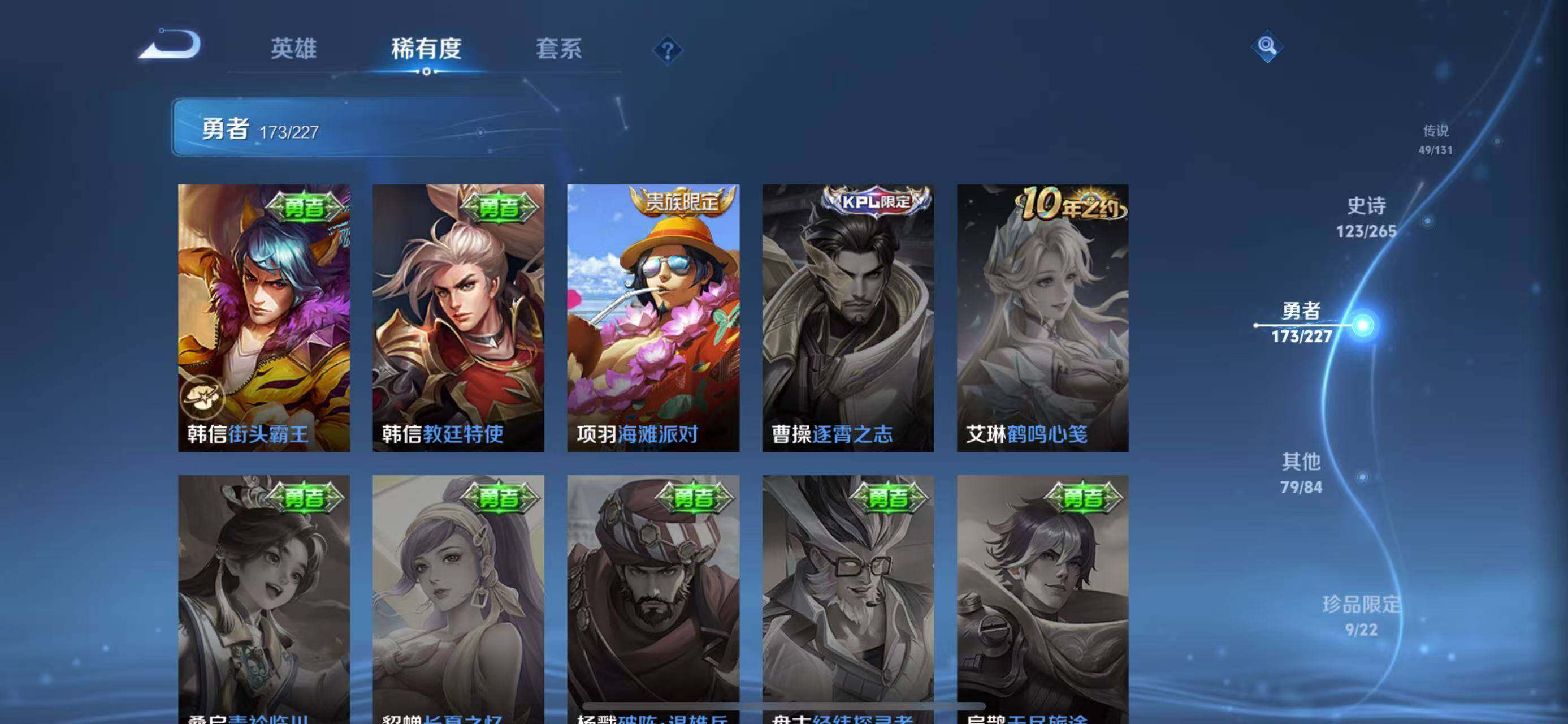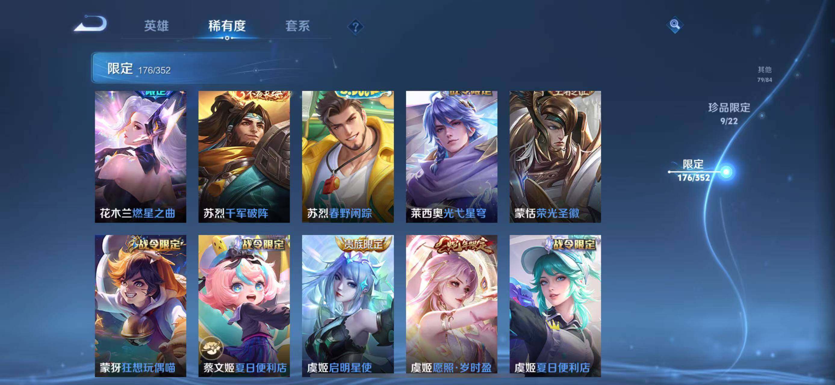 【wzsa996】贵族9/皮肤434/典藏1/传说49/史诗123/英雄127/刘邦全皮/孙权全皮/橘右京全皮/鬼谷子全皮/盾山全皮/猪八戒全皮/蒙恬全皮/镜全皮/司空震全皮/暃全皮/空空儿全皮/影全皮/海诺全皮/李白-鸣剑·曳影/貂蝉-馥梦繁花/小乔-时之魔女/曜-器灵·螭龙剑/马可波罗-怪盗基德/鲁班七号-江户川柯南/孙策-时之奇旅/嫦娥-器灵·落星盏/暃-朽木白哉/宫本武藏-黑崎一护/后