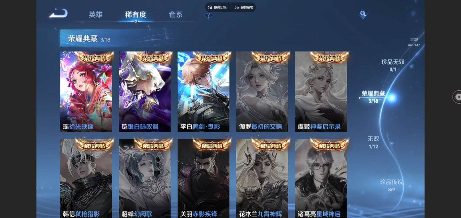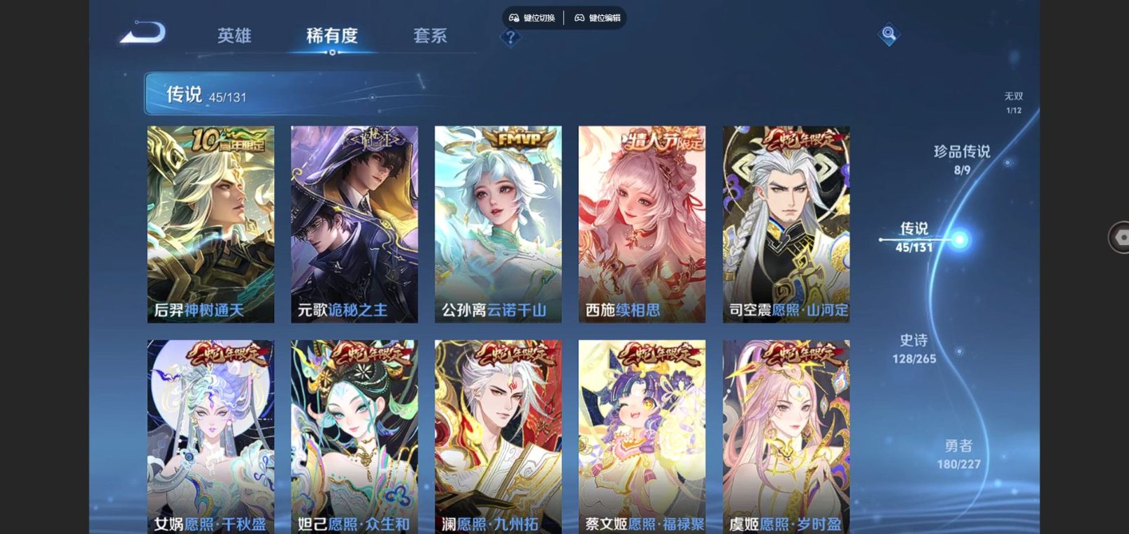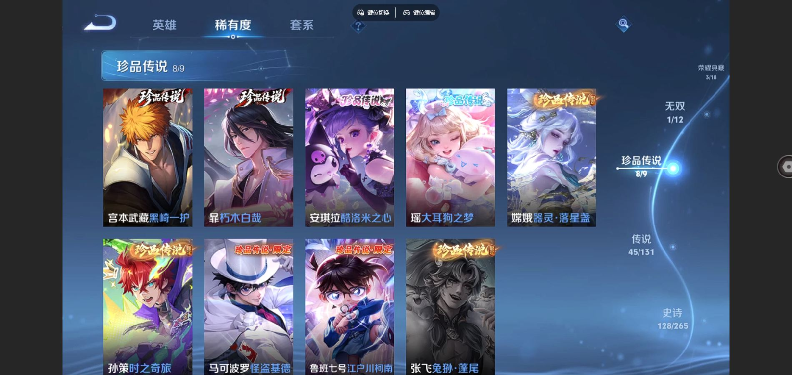 127英雄-445皮肤-125英雄-445皮肤v9-445皮肤3典藏1无双8珍品传说45传说 对抗路36段 金标白起 4星传说 时之思念 幽冥之眼 未来机甲 金色仲夏夜 【全皮英雄】 司空震全皮 亚连全皮 西施全皮 马超全皮 吕布全皮 鬼谷子全皮 刘禅全皮 达摩全皮 影全皮 戈娅全皮 【典藏】 拾光映像 鸣剑曳影 银白咏叹调 【无双】 器灵螭龙剑 【珍品传说】 朽木白哉 黑崎一护 大耳狗之梦 酷洛