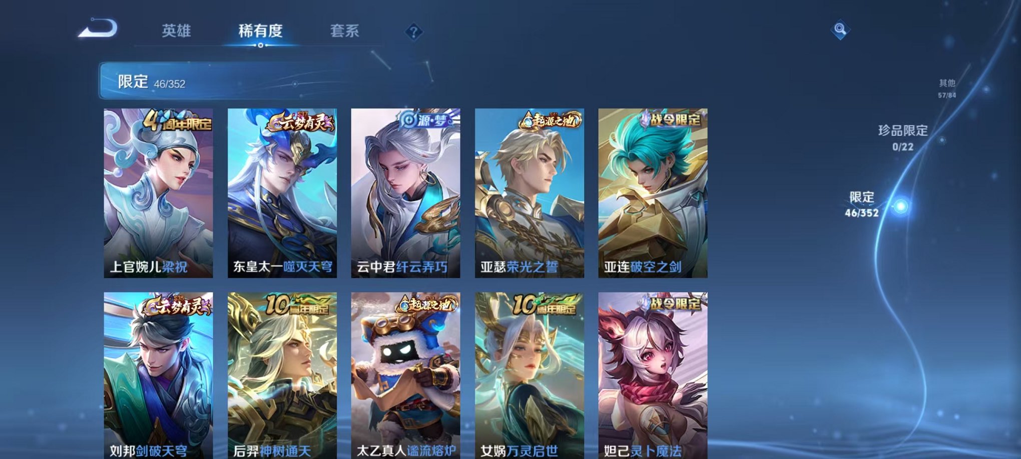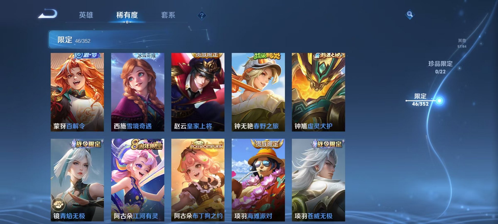 【时光映像 190皮肤1典藏3传说】安卓wx-124英雄【1水晶】拾光映像【3传说】神树通天 鸣野蒿 愿照·九州拓【34史诗】百解令 万灵启世 龙之律动 百相守梦 魔法小厨娘 蔬乡物语 青焰无极 魅力维加斯 魔术师 鹰眼统帅 圣诞恋歌 无限星赏官 鬼剑武藏 水晶猎龙者 暗隐猎兽者 逐浪之夏 绅士熊喵 紫霞仙子 圣诞狂欢 暗影游猎 梁祝 暗渊魔法 水果甜心 蔷薇恋人 时之恋人 诗语江南 缤纷独角兽 纤云弄巧 乱世虎臣 皇家上将 赏金猎手 节奏热浪 星夜王子 特工魅影【78勇者】鹤鸣心笺 玫蓝誓约 浪漫序章 虚灵犬护 苍威无极 古海寻踪 西部游侠 剑破天穹 探海日志 春野之旅 时尚教父 龙舞盛年 群星魔术团 蔬乡物语 灵野札记 决胜大满贯 春野闲踪 时空谍影 漠中幻影 功夫炙烤 金色潮汐 逆浪荇歌 雾都夜雨 死霸装 命运加冕 布丁狗之约 归虚梦演 星梦巡礼 金福满堂 荣光之誓 景韶洛都 未来纪元 万象初新 龙腾万里 幻乐之宴 教廷特使 兔女郎 敏锐之力 虎啸剑宗 万事如意 纽约教父 汉昭烈帝 哥特玫瑰 瓷语鉴心 乓乓大师 红桃皇后 虹云星官 次元突破 鲨炮海盗猫 坚韧之力 天使之翼 沉稳之力 海滩派对 丁香结 死亡骑士 次元傲视 忍·炎影 白执事 花好人间 海滩丽影 鲤鱼之梦 潮玩造梦师 西部大镖客 潮玩探月行 契约魔法 爱心护理 玩偶对对碰 白色死神 无双福将 拳王 少女阿狸 守护之力 阴阳师 黄金武士 圆桌骑士【5稀有英雄】嬴政 不知火舞 橘右京 夏洛特 娜可露露 韩信 艾琳 赵云 武则天 营地id:1811620431