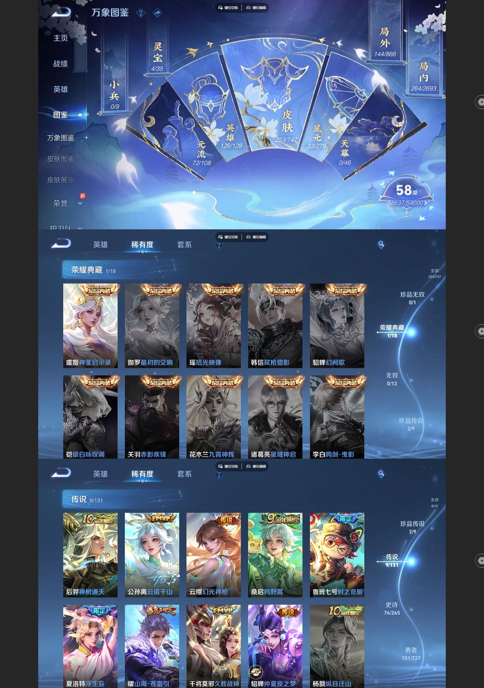 2299712-1金标 鲁班七号 v7-253皮肤1典藏2珍品传说9传说1星元76史诗92限定4621紫星币 【全皮英雄】 少司缘全皮 影全皮 【典藏】 神鉴启示录 【珍品传说】 江户川柯南 怪盗基德 【星元】 金色仲夏夜 【传说】 神树通天 云诺千山 幻光神呛 鸣野蒿 山海苍雷引 浮生妄 时之奇旅鲁班 久胜战神 仲夏夜之梦 【热门】万灵启世 巫礼祀神 山海玄木吟 拒霜思 玉