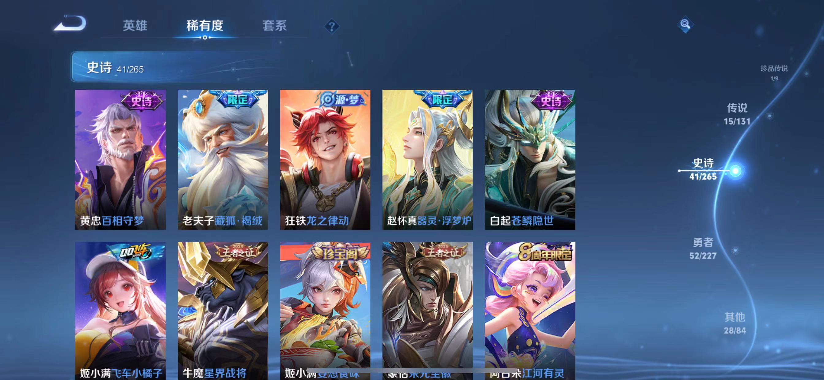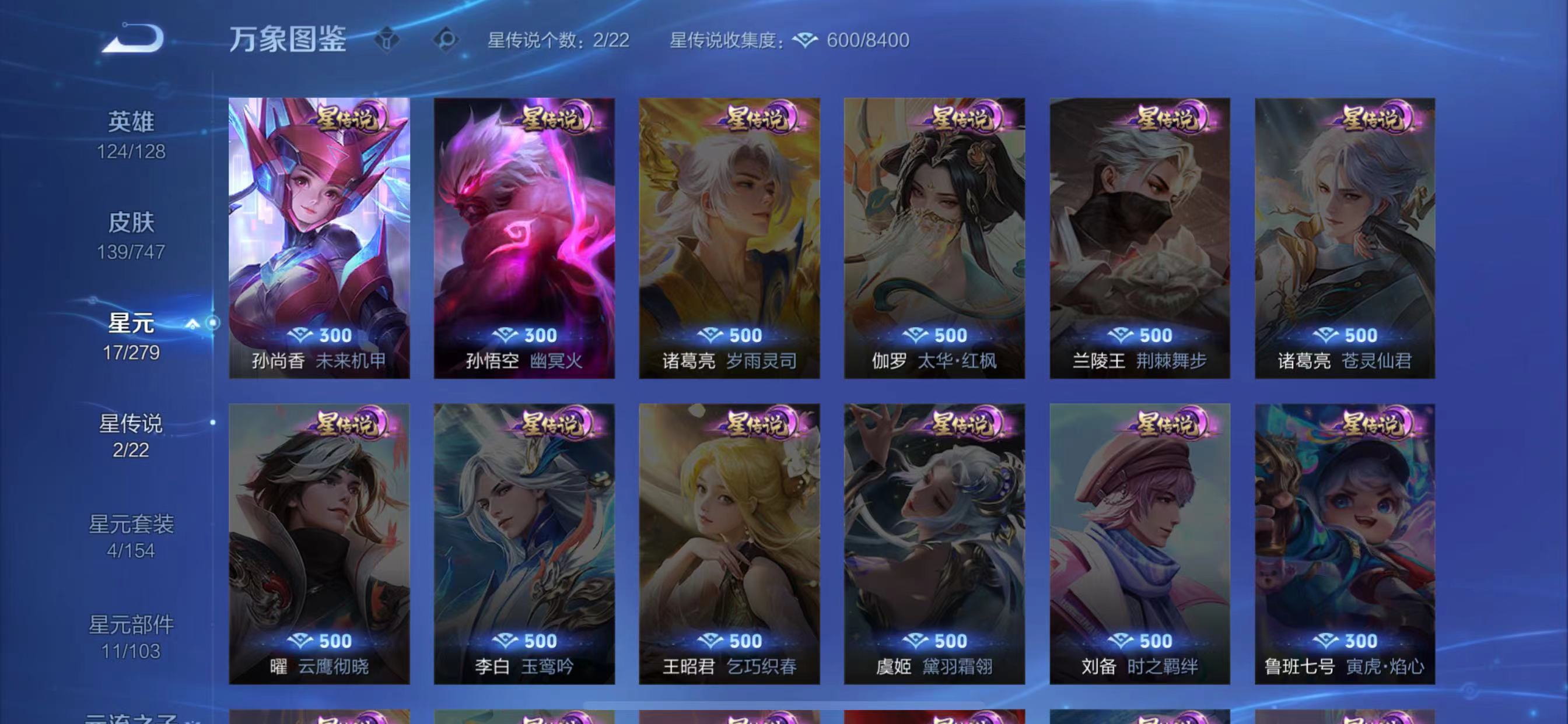 v8,5金标【139皮肤1典藏1刂1珍品15传说】九霄神辉 器灵·螭龙剑 时之奇旅 深海之息 无双飞将 鸣野蒿 飞鸢探春 记忆之芯 祈雪灵祝 末日机甲 愿照·山河定 黄金射手座 启明星使 落雪白狼 黄金狮子座 愿照·岁时盈 炽阳神光 愿照·九州拓 水果甜心 百相守梦 无限星赏官 天才门将 冰冠公主 龙之律动 紫霞仙子 妄想食味 江河有灵 荣光圣徽 地狱燃心 天秀·启明 冰雪圆舞曲 器灵·浮梦炉 圣诞狂欢 末日机甲 赏金猎手 苍穹之光 幽灵船长 飞车小橘子 苍鳞隐世 藏狐·褐绒 鬼剑武藏 猫狗日记 热力回旋 金属风暴 摇滚巨星 诗语江南 圣诞恋歌 阴阳师 魔术师 云间偶戏 水晶猎龙者 遇见飞天 乓乓大师 海滩派对 冰锋战神 皇家上将 沉稳之力 引擎之心 玲珑珍味 驭风魔法 白色死神 布丁狗之约 危途狂花 死霸装 丁香结 守护之力 克喵 踏浪烽翎 鹤鸣心笺 红桃皇后 破局者 零食大作战 西部游侠 东方不败 龙舞盛年 教廷特使 特工战影 西部大镖客 黄金武士 万象初新 逐霄战戟 雾都夜雨 爆裂喵拳 乱世虎臣 雪境奇遇 拳王 魅影绮裳 归虚梦演 幻泉雾影 苍林狼骑 灵卦秘语 龙腾万里 铁骨偃魂 灵野札记 花好人间 流音漫舞 天穹祈灯 剑破天穹 聚星闪耀 古海寻踪 逆浪荇歌 噬灭天穹 探海日志 顽趣 谧流熔炉 荣光之誓 星界战将