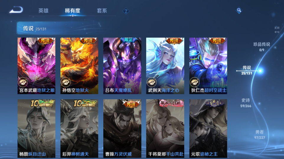 【王者荣耀】【lywz23343】珍品无双0 典藏4 无双0 珍品传说0 传说25 史诗58 英雄124 皮肤255 贵族9级 荣耀典藏:全息碎影|天鹅之梦|武则天|银白咏叹调|星空梦想__传说皮肤:炽阳神光|启明星使|地狱之眼|地狱火|海洋之心|仲夏夜之梦|狄仁杰-超时空战士|猫影幻舞|云鹰飞将|鹤羽星尊|画中仙|孙尚香-末日机甲|齐天大圣|凤求凰|怒海麟威|燃星之曲|诗剑行|碎云|天魔缭乱|妄想奇谈|项羽-无限倾心|永曜之星|山海·苍雷引|山海·炽霜斩|山海·琳琅生__稀有限定:朱雀志|神威|烈魂|青春决赛季|山海·碧波行|山海·玄木吟|百解令|冰霜神祇|大漠名商|古海寻踪|海滩派对|海盐诗旅|皇家上将|辉光之辰|混沌棋|江河有灵|降魔|金庭之子|凯尔特女王|炼金王|魔术师|奇幻香踪|千军破阵|擒涛扼浪|穷奇|荣光圣徽|沙漠行僧|朔风刀|探海日志|饕餮|天穹祈灯|万华元夜|五谷丰年|星界游侠|疑决卦|阴阳师|优雅恋人|驭风魔法|御狮|云端筑梦师|逐梦之星|暗夜贵公子|暗夜猫娘|暗隐猎兽者|白龙吟|缤纷独角兽|冰冠公主|冰雪圆舞曲|乘风破浪|德古拉伯爵|电玩小子|功夫厨神|鬼剑武藏|黄金分割率|金属风暴|吕布-末日机甲|偶像歌手|绅士熊喵|圣诞狂欢|圣诞恋歌|水果甜心|水晶猎龙者|天才门将|晚萤|赵云-未来纪元|摇滚巨星|鹰眼统帅|幽灵船长|钟无艳-超时空战士|紫霞仙子|修罗|曙光守护者|心灵战警|千年之狐|特工魅影|狰|烛龙|原初探秘者|重明|云中旅人|玲珑珍味|暖冬·兔眠|落雪兰心|死神来了|仙境爱丽丝|华尔街大亨|逆浪荇歌|黄忠-百相守梦|涂山容容|荣光之誓|鹤鸣心笺__优质皮肤:尼罗河女神|一千零一夜|年年有余|埃及法老|孤猎|木偶奇遇记|熊喵少女|午夜歌剧院|露花倒影|未来旅行|激情绿茵|海之征途|天启骑士|秩序猎龙将|锦衣卫|英喵野望|维京掠夺者|海军大将|绯红之刃|战争骑士|伊势巫女|画中游|生化警戒|潮流仙人|芝加哥教父|街头旋风|绝影神呛|地府判官|荷鲁斯之眼|幸存者|赤焰之缨|福禄兄弟|隐刃|特种部队|三太子|精灵王|剑舞者|范海辛|星航指挥官|龙域领主|爱与和平|占星师|花间舞|魇语军师|极冰防御线|花见巫女|东海龙王|蔷薇王座|灼热之刃|精准探案法|圣殿之光|帝国元帅|神奇女侠|战争女神|加勒比小姐|阿摩司公爵|异域舞娘|精灵公主|修竹墨客|万圣前夜|功夫炙烤|潮玩探月行|秘密基地|次元突破|鲨炮海盗猫|野性能量|科学大爆炸|守护之力|坚韧之力|幻乐之宴|功夫老勺|命运角斗场|幻想奇妙夜|海滩丽影|兔女郎|死亡骑士|黄金武士|少女阿狸|天使之翼|玩偶对对碰|宫本武藏-未来纪元|红桃皇后|忍·炎影|爱心护理|街头霸王|教廷特使|时空谍影|零食大作战|西部游侠|太极少年|乐园追猎者|牛运亨通|幻泉雾影|如懿|制霸全明星|进击墨子号|拳王|时尚教父|白色死神|程咬金-星际陆战队|白执事|大发明家|哥特玫瑰|星梦巡礼|掌控之力|纽约教父|龙腾万里|霸王丸|乱世虎臣|敏锐之力|西施-归虚梦演|孙悟空-西部大镖客|牛魔-西部大镖客|鲁班大师-归虚梦演|五福同心|蒙犽-归虚梦演|万事如意|曜-归虚梦演|太乙真人-圆桌骑士|沉稳之力|完美运算|化身博士|花好人间|万象初新|潮玩骑兵|蔚蓝守将|劲辣红锅|特工战影|炽热元素使|妄想特派|无双福将|踏浪烽翎|克喵__贵族等级:贵族9级__王者段位:至尊星耀4典藏银白咏叹调,全息碎影,天鹅之梦,星空梦想 2星传说 14按键 画中仙,齐天大圣,燃星之曲,无限倾心,炽阳神光,碎云,山海·琳琅生,山海·炽霜斩,山海·苍雷引,猫影幻舞,云鹰飞将,怒海麟威,诗剑行,启明星使,仲夏夜之梦,地狱之眼,天魔缭乱,永曜之星,海洋之心,末日机甲,超时空战士,地狱火,凤求凰,妄想奇谈,鹤羽星尊