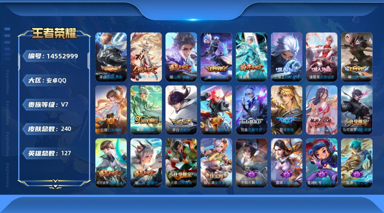 [14552999]v7 1典藏 11传说 127英雄 240皮肤 可修改实名 【英雄全皮】:澜全皮 【稀有英雄】:敖隐小龙人大司命嬴政始皇帝韩信韩跳跳夏洛特夏师傅艾琳橘右京橘子娜可露露鸟人不知火舞赵云金蝉唐僧戈娅 【荣耀水晶】:鸣剑·曳影 【传说皮】:幻光神呛云鹰飞将小将军山海·苍雷引电光曜子电玩·雷克斯澜逐花归海 【珍宝阁皮】:妄想食味胡桃夹子优雅恋人 【赛季/战令皮】:噬灭天穹s37古海寻踪s33星界游侠海盐诗旅s30擒涛扼浪s31潮玩骑兵奇幻香踪探海日志s32顽趣-梦奇剑破天穹s35天穹祈灯s34天穹之誓s36蔡文姬夏日便利店虞姬夏日便利店暖冬·兔眠混沌棋s18疑决卦s19万华元夜s22演武夺筹s23驱傩正仪s24千军破阵s25赤莲之焰暗影游猎游乐娃子潮玩骑士王云间偶戏神迹守卫-墨子航海奇遇记圣弓游侠真爱魔法沙漠行僧s26吟游魔法夜都怪侠金庭之子s27大漠名商s28云中旅人s29 【史诗皮】:东方月初星界战将破空之剑蒙犽顽岩魄埋骨钱紫霞仙子苍穹之光电玩小子小书包黄金分割率特工魅影千年之狐江河有灵高渐离燃音魔法雪夜绮愿周瑜百解令蒙犽蒙恬荣光圣徽龙骑士小龙虾青蛇偶像歌手魅语白蛇电玩·爆裂旋风百相守梦刘备末日机甲-吕布猫狗日记-孙策猫狗日记-大乔乱世虎臣摇滚巨星水果甜心天才门将星夜王子心灵骇客功夫厨神德古拉伯爵暗隐猎兽者鬼剑武藏心灵战警纤云弄巧拒霜思缤纷独角兽乘风破浪逐浪之夏水晶猎龙者曙光守护者金属风暴原初追逐者圣诞狂欢圣诞恋歌鹰眼统帅暗夜贵公子魅力维加斯黎明之约赏金猎手无心玫瑰异探 【限定皮】:愿照·九州拓澜年限逐霄战戟鸣野蒿武陵仙君小桃花时雨天司水龙头山海·碧波行瑶年限遇见飞天高山流水诗剑行五谷丰年李小龙默契交锋-兰陵王山海·玄木吟马可年限 【普通皮】:铁骨偃魂谧流熔炉雾都夜雨怪诞之夜敬我三分神迹守卫劲辣红锅熔金海岸暗都幽影程咬金群星魔术团春野之旅龙舞盛年朵莉亚金色潮汐功夫