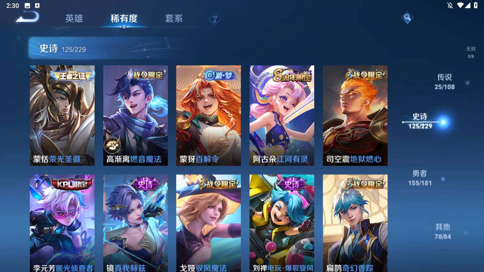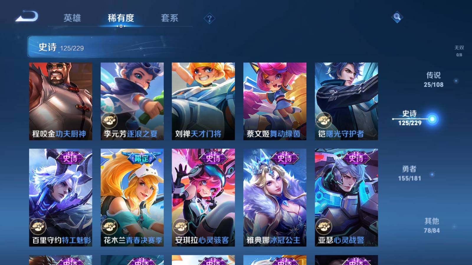 _2295052-wx-v8-社交限制-至尊星耀iii段位-124英雄-395皮肤-1典藏-0珍品无双-0无双-0珍品传说-25传说-128史诗 【英雄全皮】:娜可露露全皮,橘右京全皮,盾山全皮,猪八戒全皮,蒙恬全皮,金蝉全皮 【荣耀典藏】:李白鸣剑曳影 【传说皮肤】:澜逐花归海,东皇太一灼幽烈阳,李白诗剑行,狄仁杰神器狴犴令,不知火舞绯月行,王昭君星穹之声,百里守约碎云,橘右京枫霜尽,娜可露露前尘镜,马可波罗深海之息,孙策挚爱之约,蔡文姬花朝如约,孙策末日机甲,瑶时之祈愿,鲁班七号寅虎瑞焰,孙尚香异界灵契,赵云淬星耀世,曜李,虞姬启明星使,李信一念神魔,干将莫邪久胜战神,后羿黄金射手座,貂蝉仲夏夜之梦,孙尚香末日机甲,狄仁杰超时空战士 【限定皮肤】:白起狰,暃埋骨钱,蒙犽顽岩魄,蔡文姬夏日便利店,大乔绒语心约,虞姬夏日便利店,姜子牙天穹之誓,杨戬破阵退雄兵,狄仁杰阴阳师,赵云皇家上将,赵云百木心呛,墨子神迹守卫,嬴政优雅恋人,孙尚香蔷薇恋人,孙尚香异界灵契,鲁班七号狮舞东方,鲁班七号乒乒小将,鲁班七号寅虎瑞焰,庄周高山流水,高渐离死亡摇滚,钟无艳超时空战士,扁鹊奇幻香踪,白起夜都怪侠,芈月重明,芈月白晶晶,芈月幻夜卜梦,吕布猎兽之王,元歌无心,夏侯惇朔风刀,夏侯惇匿光决锋者,甄姬落雪兰心,曹操烛龙,典韦穷奇,典韦岱宗,马可波罗暗影游猎,马可波罗深海之息,狄仁杰魔术师,狄仁杰万华元夜,狄仁杰神器狴犴令,达摩星际陆战队,达摩沙漠行僧,项羽海滩派对,老夫子醍醐杖,老夫子航海奇遇记,关羽冰锋战神,程咬金演武夺筹,韩信傲雪梅呛,王昭君午后时光,王昭君星穹之声,兰陵王金庭之子,花木兰青春决赛季,花木兰瑞麟志,不知火舞绯月行,娜可露露前尘镜,橘右京枫霜尽,孙悟空至尊宝,孙悟空孙行者,牛魔御旌,后羿圣弓游侠,李元芳匿光侦查者,李元芳云中旅人,虞姬启明星使,钟馗神迹守卫,钟馗驱傩正仪,杨玉环寅虎心曲,杨戬潮玩骑兵,女娲朔望之晖,干将莫邪真爱魔法,雅典娜单词大作战,雅典娜黎明之约,蔡文姬繁星吟游,鬼谷子原初探秘者,鬼谷子五谷丰年,黄忠火炮绅士,铠青龙志,苏烈千军破阵,百里玄策原初追逐者,百里守约朱雀志,弈星混沌棋,梦奇顽趣,公孙离玉兔公主,沈梦溪大漠名商,明世隐疑决卦,明世隐吟游魔法,裴擒虎李小龙,裴擒虎擒涛扼浪,狂铁电玩高手,米莱狄御霄,米莱狄胡桃异想国,瑶时之祈愿,云中君纤云弄巧,云中