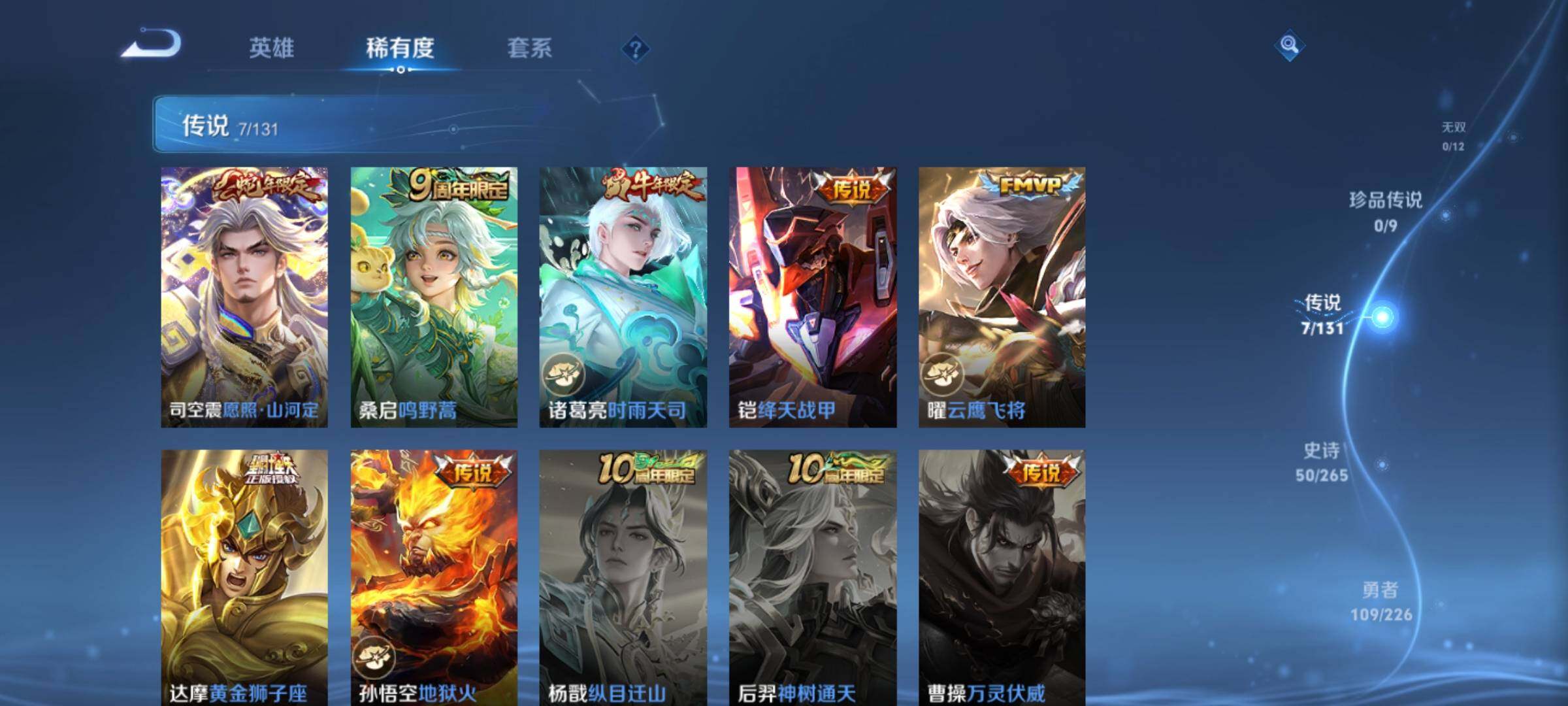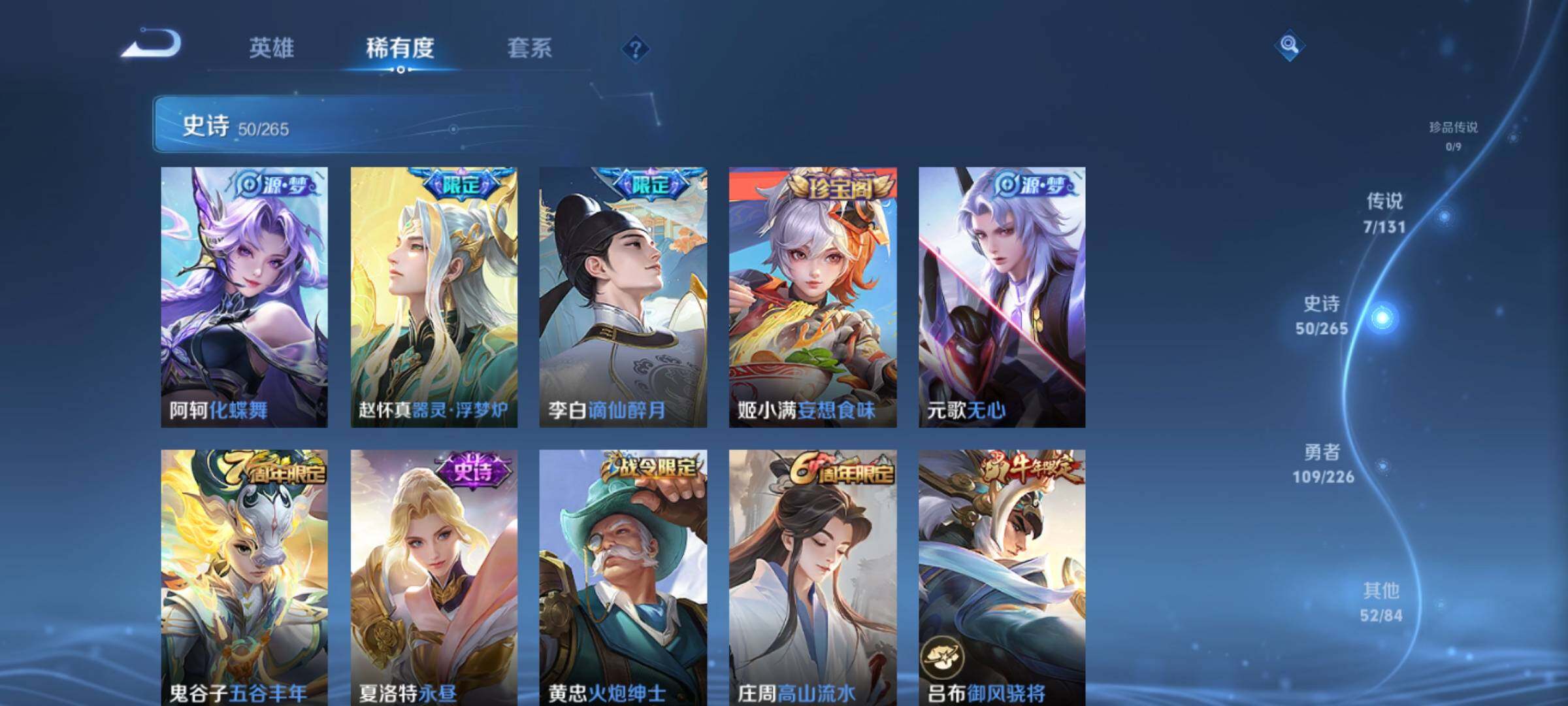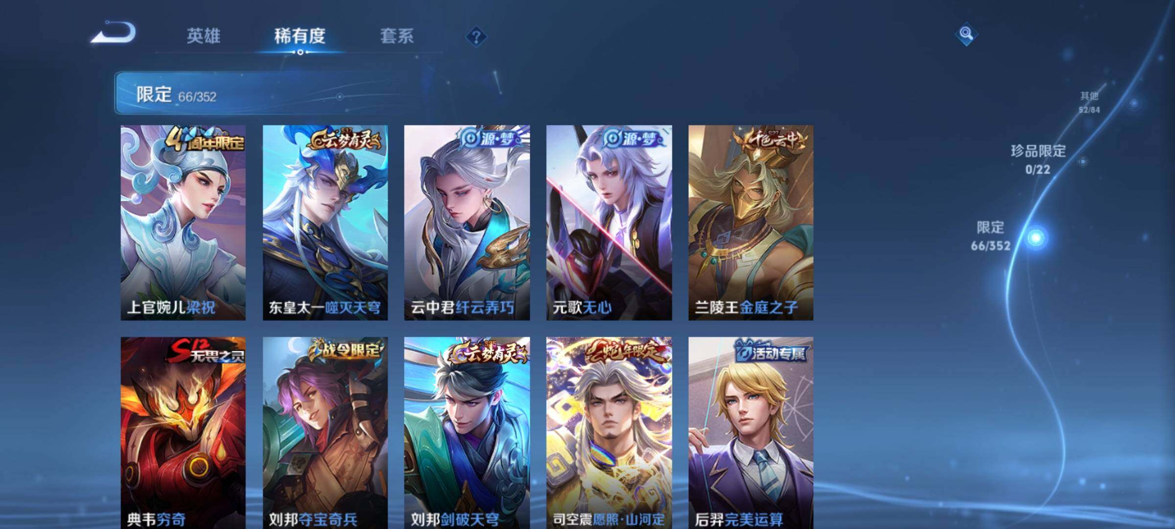 _2295136-q-v7-尊贵铂金i段位-1星元刘备时之恋人-对抗路17段-125英雄-218皮肤7传说-50史诗 【英雄全皮】:刘邦全皮,影全皮 【传说皮肤】:司空震愿照山河定,桑启鸣野蒿,诸葛亮时雨天司,铠绛天战甲,曜云鹰飞将,达摩黄金狮子座,孙悟空地狱火 【限定皮肤】:姜子牙天穹之誓,李白谪仙醉月,狄仁杰阴阳师,赵云皇家上将,嬴政优雅恋人,鲁班七号狮舞东方,庄周高山流水,阿轲迷踪丽影,芈月幻夜卜梦,吕布御风骁将,元歌无心,夏侯惇朔风刀,典韦穷奇,马可波罗暗影游猎,狄仁杰魔术师,狄仁杰万华元夜,达摩沙漠行僧,项羽海滩派对,老夫子醍醐杖,程咬金演武夺筹,刘邦夺宝奇兵,韩信逐梦之影,韩信飞衡,兰陵王金庭之子,孙悟空至尊宝,牛魔御旌,李元芳云中旅人,钟馗神迹守卫,钟馗驱傩正仪,鬼谷子原初探秘者,鬼谷子五谷丰年,诸葛亮时雨天司,黄忠烈魂,黄忠火炮绅士,苏烈千军破阵,弈星混沌棋,沈梦溪大漠名商,明世隐疑决卦,裴擒虎李小龙,裴擒虎擒涛扼浪,米莱狄御霄,云中君纤云弄巧,盾山御銮,猪八戒西部大镖客,上官婉儿梁祝,鲁班大师探海日志,桑启海盐诗旅,鬼谷子天穹祈灯,姬小满妄想食味,沈梦溪龙舞盛年,刘邦剑破天穹,周瑜熔金海岸 【年限皮肤】:吕布御风骁将,诸葛亮时雨天司,韩信飞衡,马超神威,黄忠烈魂 【赛季限定】:夏侯惇朔风刀,典韦穷奇,狄仁杰万华元夜,达摩沙漠行僧,老夫子醍醐杖,程咬金演武夺筹,兰陵王金庭之子,牛魔御旌,李元芳云中旅人,钟馗驱傩正仪,鬼谷子原初探秘者,苏烈千军破阵,弈星混沌棋,沈梦溪大漠名商,明世隐疑决卦,裴擒虎擒涛扼浪,米莱狄御霄,盾山御銮,鲁班大师探海日志,桑启海盐诗旅,鬼谷子天穹祈灯,刘邦剑破天穹,姜子牙天穹之誓 【战令限定】:鲁班七号狮舞东方,阿轲迷踪丽影,芈月幻夜卜梦,马可波罗暗影游猎,刘邦夺宝奇兵,钟馗神迹守卫,黄忠火炮绅士,猪八戒西部大镖客 【史诗皮肤】:赵云皇家上将,貂蝉圣诞恋歌,甄姬冰雪圆舞曲,王昭君偶像歌手,狄仁杰魔术师,宫本武藏鬼剑武藏,孙尚香水果甜心,嬴政优雅恋人,妲己魅力维加斯,妲己女仆咖啡,墨子龙骑士,墨子金属风暴,吕布圣诞狂欢,曹操幽灵船长,李白千年之狐,吕布末日机甲,张飞乱世虎臣,韩信白龙吟,孙悟空至尊宝,花木兰水晶猎龙者,刘邦德古拉伯爵,韩信逐梦之影,夏侯惇乘风破浪,兰陵王暗隐猎兽者,亚瑟心灵战警,百里守约特工魅影,铠曙光守护者,蔡文姬舞动绿