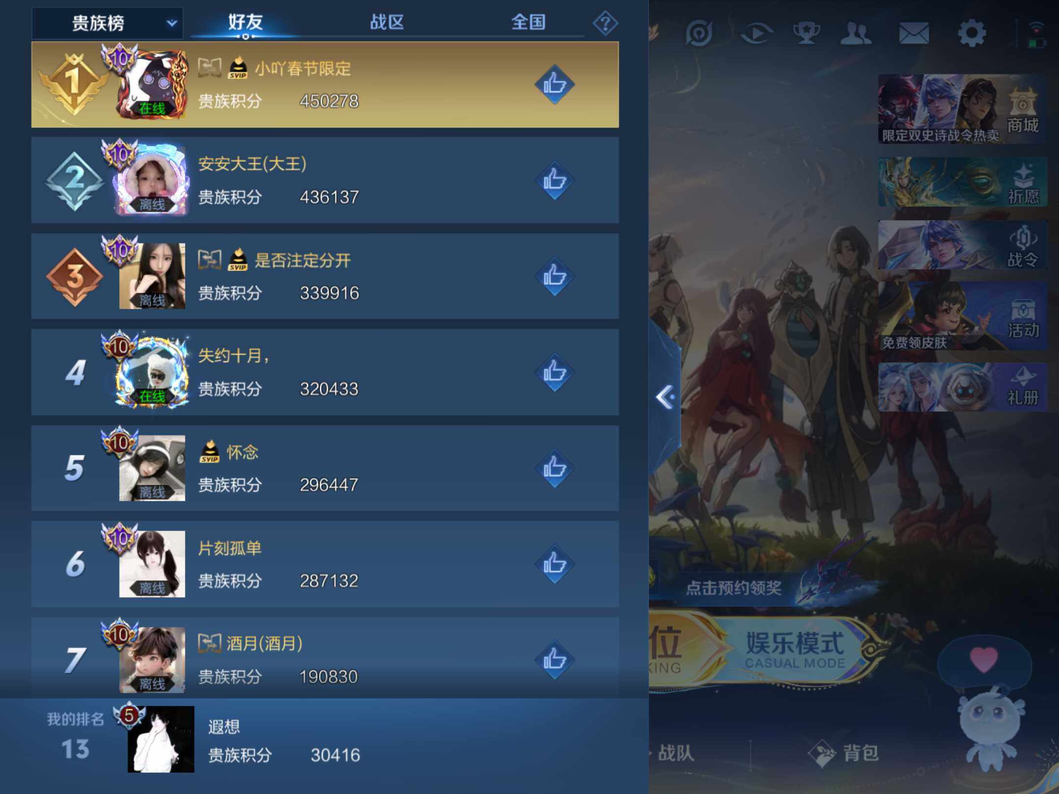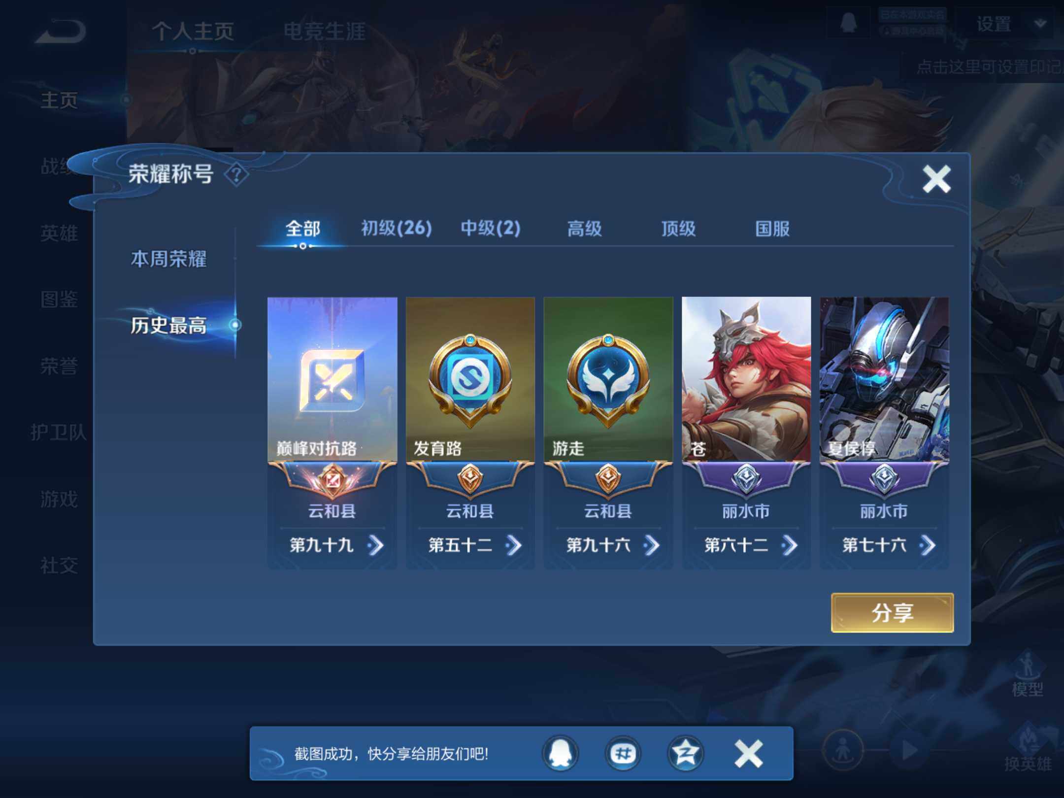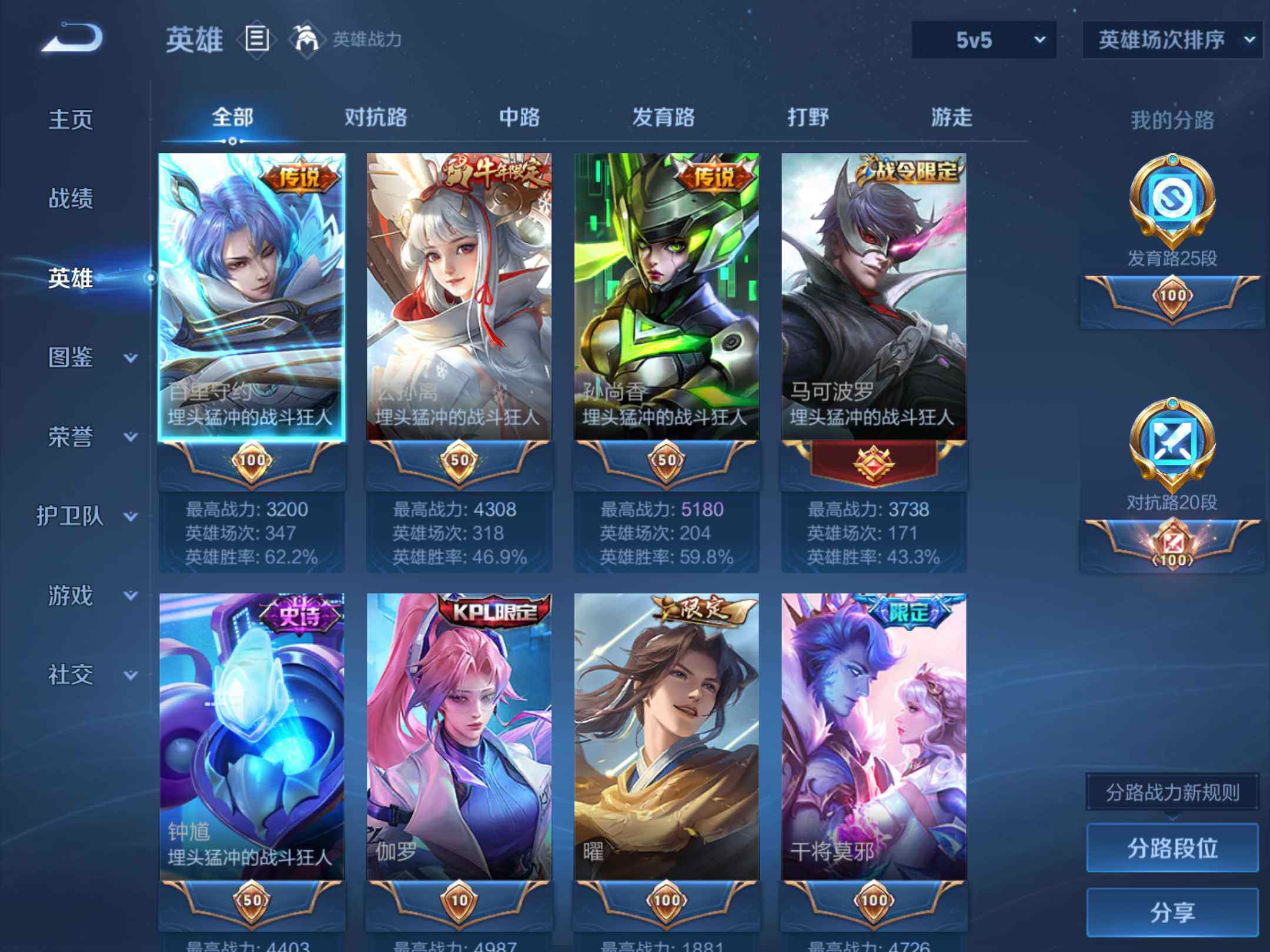 _2295095-q-v7-永恒钻石v段位-124英雄-185皮肤-2典藏-1无双-13传说-57史诗-发育路25段,对抗路20 【荣耀典藏】:夏侯惇无限飓风号,李白鸣剑曳影 【无双皮肤】:韩信群星魔术团 【传说皮肤】:司空震愿照山河定,百里守约碎云,孙尚香异界灵契,赵云淬星耀世,王昭君乞巧织情,曜李,公孙离祈雪灵祝,诸葛亮时雨天司,铠绛天战甲,孙悟空零号赤焰,刘备时之恋人,孙尚香末日机甲,狄仁杰超时空战士 【限定皮肤】:狄仁杰阴阳师,赵云皇家上将,墨子神迹守卫,嬴政优雅恋人,孙尚香异界灵契,鲁班七号乒乒小将,扁鹊奇幻香踪,元歌云间偶戏,元歌无心,甄姬游园惊梦,马可波罗暗影游猎,狄仁杰魔术师,狄仁杰万华元夜,达摩沙漠行僧,项羽海滩派对,老夫子航海奇遇记,程咬金演武夺筹,韩信逐梦之影,韩信傲雪梅呛,王昭君午后时光,花木兰青春决赛季,花木兰默契交锋,亚瑟潮玩骑士王,孙悟空零号赤焰,李元芳云中旅人,钟馗驱傩正仪,杨戬潮玩骑兵,干将莫邪冰霜恋舞曲,雅典娜黎明之约,东皇太一逐梦之光,鬼谷子原初探秘者,鬼谷子五谷丰年,诸葛亮时雨天司,大乔白鹤梁神女,苏烈千军破阵,公孙离蜜橘之夏,公孙离祈雪灵祝,沈梦溪大漠名商,裴擒虎李小龙,裴擒虎擒涛扼浪,狂铁电玩高手,伽罗天狼溯光者,嫦娥拒霜思,嫦娥暖冬兔眠,曜李,鲁班大师探海日志,桑启海盐诗旅,暃星界游侠,艾琳流音漫舞,阿古朵江河有灵,张良古海寻踪,刘邦剑破天穹,程咬金群星魔术团,韩信群星魔术团 【年限皮肤】:公孙离祈雪灵祝,诸葛亮时雨天司,马超神威 【赛季限定】:狄仁杰万华元夜,达摩沙漠行僧,程咬金演武夺筹,张良古海寻踪,李元芳云中旅人,钟馗驱傩正仪,雅典娜黎明之约,鬼谷子原初探秘者,苏烈千军破阵,沈梦溪大漠名商,裴擒虎擒涛扼浪,鲁班大师探海日志,桑启海盐诗旅,刘邦剑破天穹 【战令限定】:墨子神迹守卫,扁鹊奇幻香踪,元歌云间偶戏,马可波罗暗影游猎,老夫子航海奇遇记,王昭君午后时光,艾琳流音漫舞,亚瑟潮玩骑士王,杨戬潮玩骑兵,狂铁电玩高手,嫦娥暖冬兔眠,暃星界游侠 【史诗皮肤】:露娜紫霞仙子,赵云皇家上将,甄姬冰雪圆舞曲,王昭君偶像歌手,狄仁杰魔术师,廉颇地狱岩魂,宫本武藏鬼剑武藏,孙尚香水果甜心,嬴政优雅恋人,妲己魅力维加斯,妲己女仆咖啡,墨子龙骑士,李白千年之狐,张飞乱世虎臣,韩信逐梦之影,小乔缤纷独角兽,兰陵王暗隐猎兽者,甄姬游园惊梦