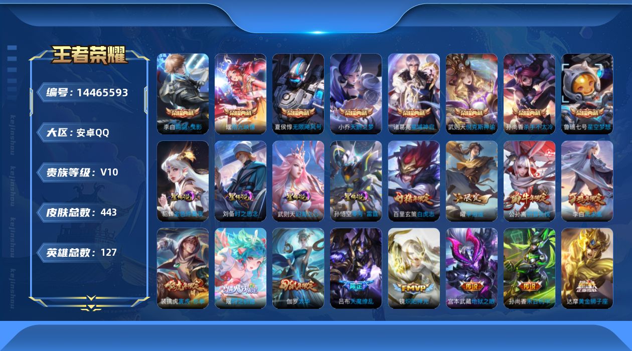 [14465593]【终身售后 找回包赔】安卓手q190区443皮9典藏50传说0无双 营地id219319704包人脸v10尊贵铂金iii天幕:狸尾假日天幕 [牛年全套虎年全套]【荣耀典藏】:拾光映像星域神启鸣剑·曳影星空梦想倪克斯神谕无限飓风号天鹅之梦杀手不太冷武则天【星传说】:幻海之心金色仲夏夜之梦时之思念零号·雷霆,【优质限定皮肤】:无双飞将瑶时之祈愿云中君时之祈愿神威祈雪灵祝白虎志武圣至尊宝天魔缭乱凤求凰【传说皮肤】:神树通天千山共赴地狱之眼妄想实况鸣野蒿觅芳踪无双飞将挚爱花嫁挚爱之约黄金狮子座黄金白羊座末日机甲启示之音补天花朝如约瑶时之祈愿寅虎·赤拳寅虎·瑞焰异界灵契末日机甲遇见胡旋淬星耀世游龙清影李 音你心动音你心动仲夏夜之梦飞鸢探春时雨天司祈雪灵祝炽阳神光启明星使零号·赤焰白虎志武圣冠军飞将云鹰飞将一念神魔时之恋人天魔缭乱海洋之心太华凤求凰猫影幻舞武陵仙君久胜战神云霓雀翎黄金射手座超时空战士胖达荣荣【特殊英雄】:嬴政武则天,【史诗皮肤】:决胜骁骑巫礼祀神龙鼓争鸣涂山容容降魔百相守梦幻珠鲛人赞萌露比石田雨龙匿光破解者化蝶舞星界战将诗语江南曙光守护者涂山红红东方月初黎明之约顽趣特工魅影无心五谷丰年吟游魔法匿光决锋者末日机甲奇遇舞章玉兔公主唤灵魅影赏金猎手永昼火炮绅士纯白花嫁云中君时之祈愿寅虎·展翼寅虎·御 星元:46星传说:4天幕:1按键:8签名:1贵族:10点卷:38皮肤碎片:117荣耀积分:3英雄碎片:2669