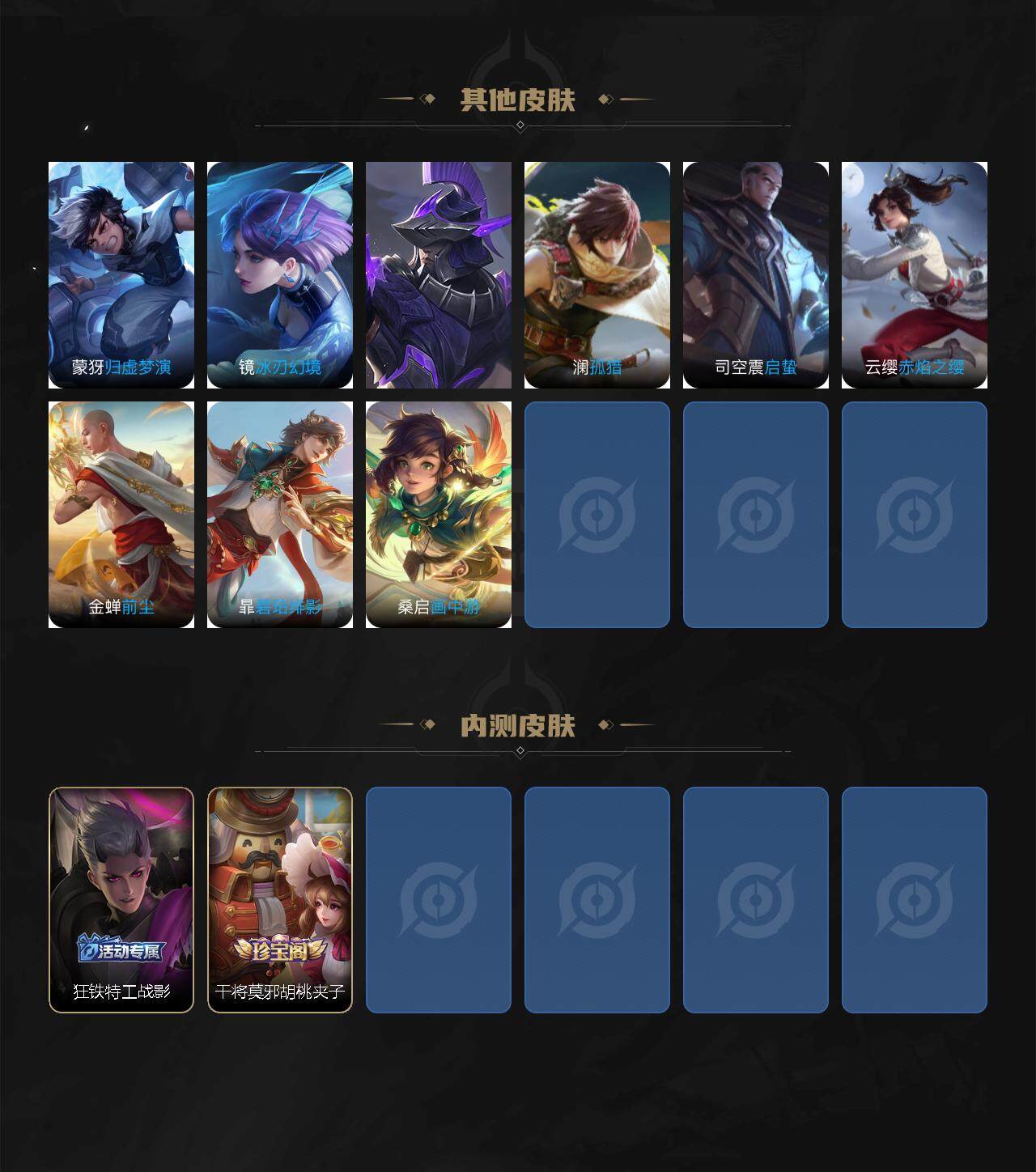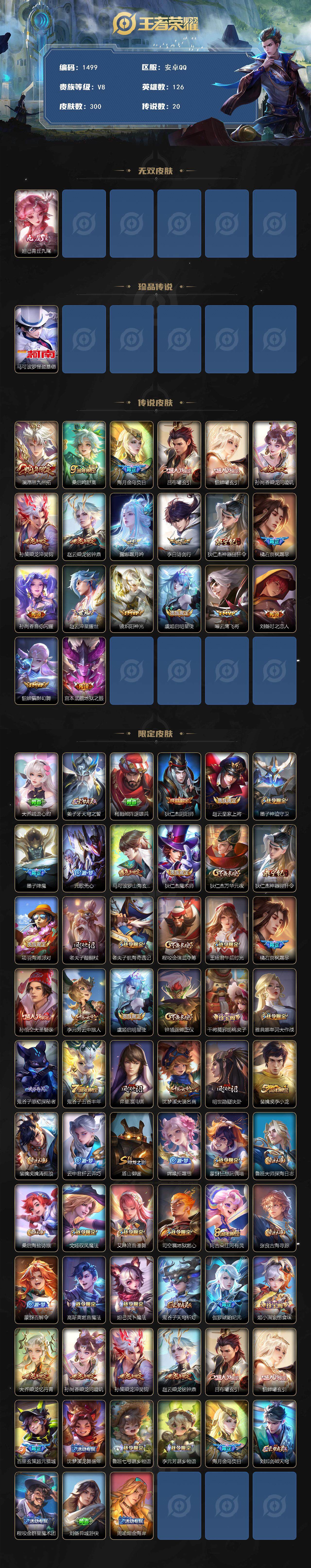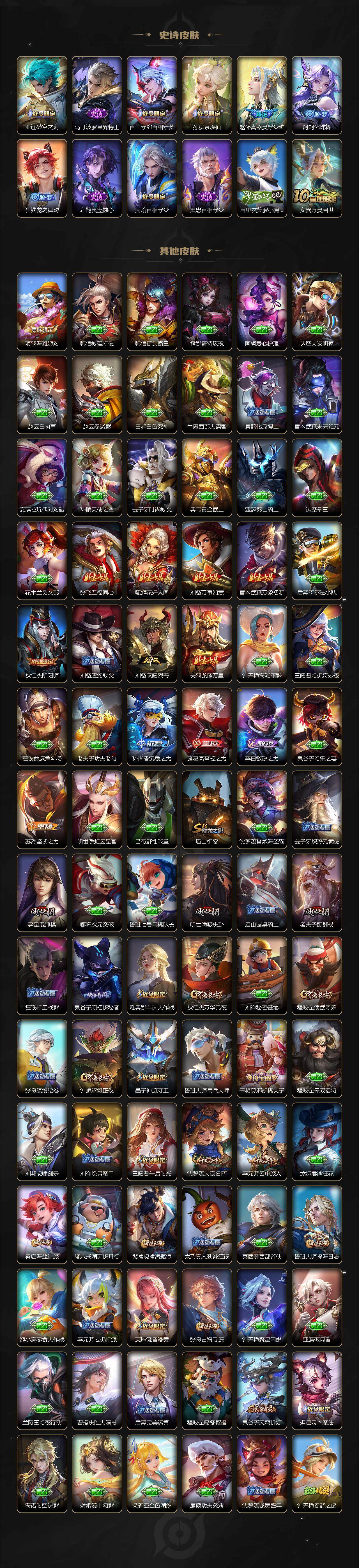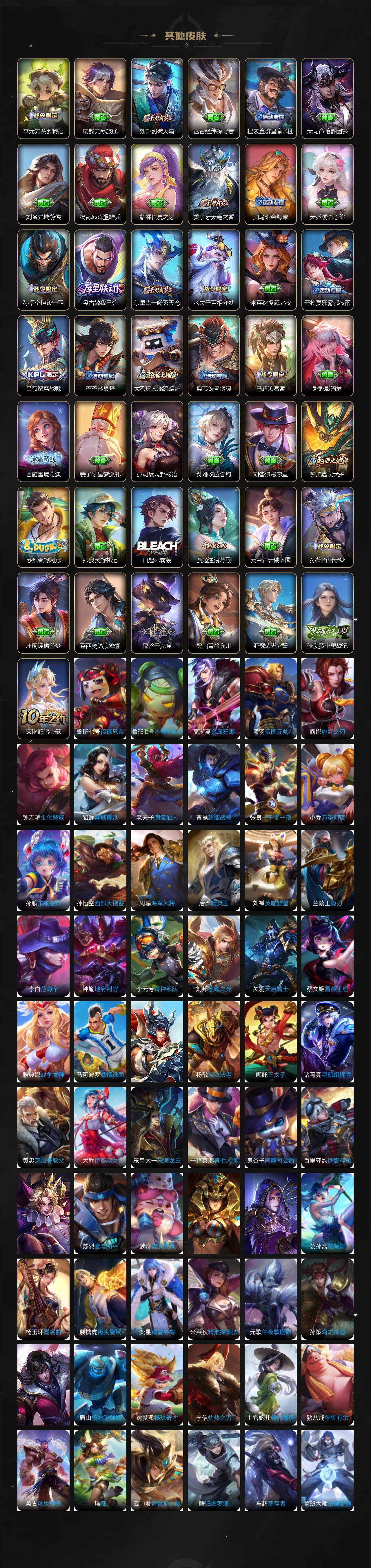 126英雄-300皮肤-贵族8/皮肤300/传说20/史诗77/英雄126/橘右京全皮/鬼谷子全皮/桑启全皮/戈娅全皮/影全皮/青丘·九尾 妲己/怪盗基德 马可波罗/愿照·九州拓 澜/鸣野蒿 桑启/金乌负日 海月/曦玄引 吕布/曦玄引 貂蝉/乘龙·问璇玑 孙尚香/乘龙·淬吴钩 孙策/乘龙·铭钟鼎 赵云/霜月吟 露娜/诗剑行 李白/神器·狴犴令 狄仁杰/枫霜尽 橘右京/音你闪耀 孙尚香/淬星耀世 赵云/炽阳神光 镜/启