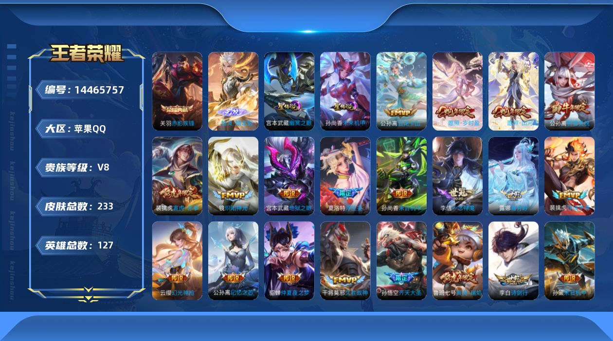 [14465757]【终身售后 找回包赔】苹果手q138区233皮1典藏25传说1无双 营地id1847185294可二次v8无双王者 【无双皮肤】:器灵·螭龙剑【荣耀典藏】:赤影疾锋【星传说】:幽冥之眼未来机甲,【优质限定皮肤】:祈雪灵祝【传说皮肤】:云诺千山绛天战甲久胜战神乞巧织情末日机甲祈雪灵祝幻光神呛愿照·岁时盈愿照·山河定启明星使浮生妄祥瑞亨通记忆之芯炽阳神光寅虎·赤拳时之恋人诗剑行地狱之眼齐天大圣末日机甲云霓雀翎一念神魔寅虎·瑞焰仲夏夜之梦霜月吟【特殊英雄】:嬴政敖隐,【史诗皮肤】:魅力维加斯涂山容容荣光圣徽鬼剑武藏女仆咖啡石田雨龙顽趣龙之律动特工魅影天秀·音浪乘风破浪烈魂天秀·启明顽趣器灵·浮梦炉茶境仙地狱岩魂梁祝怒海争锋玉兔公主德古拉伯爵无限星赏官紫霞仙子节奏热浪偶像歌手白晶晶魅语燃音魔法妄想食味天才门将纤云弄巧拒霜思百解令圣诞狂欢地狱燃心至美·乘鲤谣江河有灵逐浪之夏匿光侦查者冰雪圆舞曲驭风魔法暗渊魔法金属风暴滕王阁序引擎之心电玩·爆裂旋风百相守梦晚萤星界游侠水果甜心功夫厨神山海·玄木吟水晶猎龙者鹰眼统帅永昼火炮绅士一生所爱修罗寅虎·御盾魔术师曙光守护者冰冠公主摇滚巨星黄金分割率心灵骇客皇家上将猫狗日记傲雪梅呛幽灵船长鸭鸭历险记箭羽风息 星元:20星传说:2按键:12签名:2贵族:8皮肤碎片:15荣耀积分:15英雄碎片:327星传说:孙尚香未来机甲宫本武藏幽冥之眼