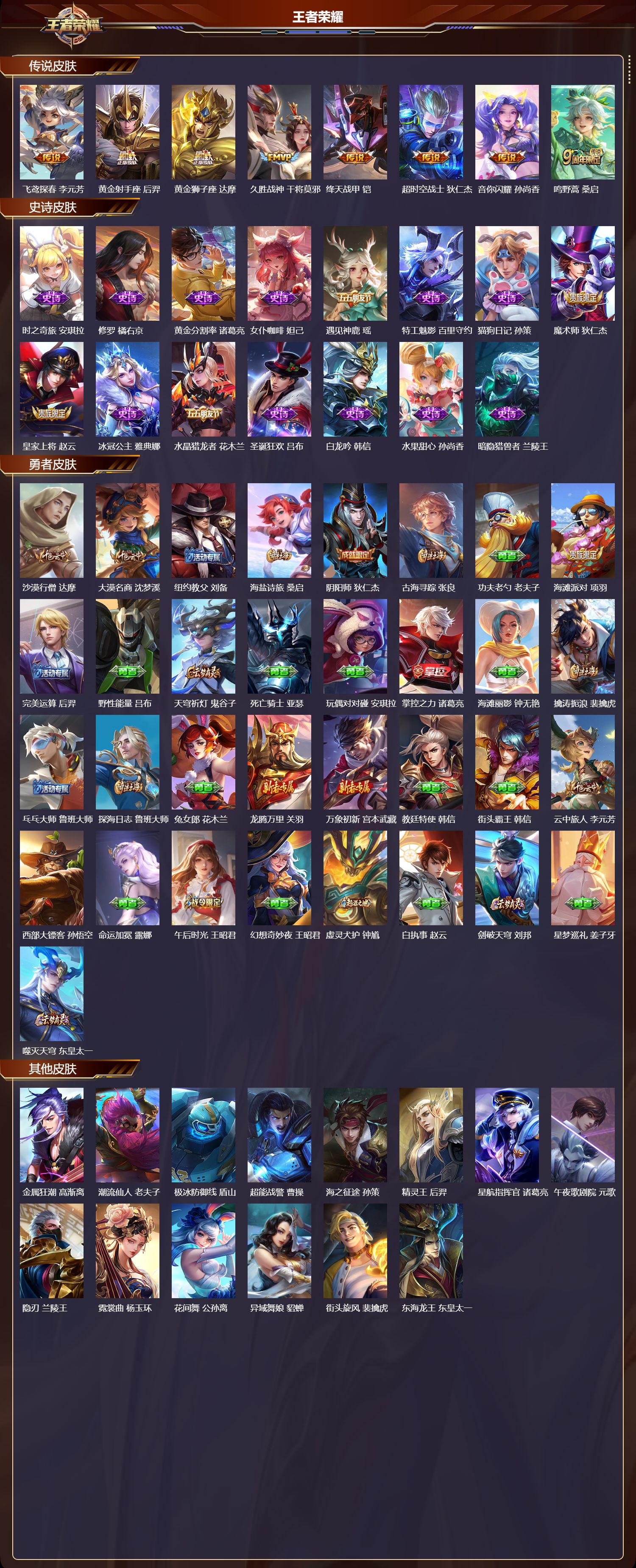 安卓qq/尊贵铂金/79皮肤/88英雄/0典藏/0珍品无双/0无双/0珍品传说/8传说/15史诗/3稀有英雄【8 传说皮肤】飞鸢探春 李元芳黄金射手座 后羿黄金狮子座 达摩久胜战神 干将莫邪绛天战甲 铠超时空战士 狄仁杰音你闪耀 孙尚香鸣野蒿 桑启【15 史诗皮肤】时之奇旅 安琪拉修罗 橘右京黄金分割率 诸葛亮女仆咖啡 妲己遇见神鹿 瑶特工魅影 百里守约猫狗日记 孙策