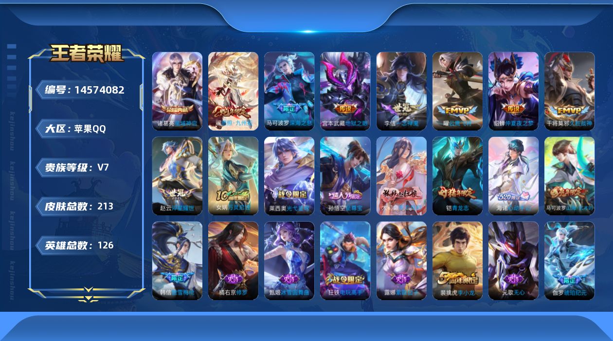[14574082]v7 1典藏 9传说 126英雄 213皮肤 可修改实名 【英雄全皮】:蒙恬全皮敖隐全皮 【稀有英雄】:敖隐小龙人大司命韩信韩跳跳夏洛特夏师傅艾琳橘右京橘子娜可露露鸟人不知火舞赵云金蝉唐僧戈娅 【荣耀水晶】:星域神启倪克斯贼亮 【传说皮】:神树通天仲夏夜之梦大飞蛾地狱之眼一念神魔淬星耀世久胜战神云鹰飞将小将军 【珍宝阁皮】:胡桃夹子优雅恋人 【赛季/战令皮】:噬灭天穹s37古海寻踪s33海盐诗旅s30擒涛扼浪s31探海日志s32剑破天穹s35天穹祈灯s34青焰无极苍威无极蔡文姬夏日便利店虞姬夏日便利店演武夺筹s23驱傩正仪s24千军破阵s25沙漠行僧s26金庭之子s27电玩高手电玩铁子午后时光大漠名商s28云中旅人s29超时空战士-钟无艳落雪兰心 【史诗皮】:巫礼祀神琥珀纪元伽罗东方月初海诺心动手记蔬乡物语鲁班七号光弋星穹万灵启世紫霞仙子特工魅影千年之狐永昼江河有灵高渐离燃音魔法百解令蒙犽蒙恬荣光圣徽冰冠公主偶像歌手无限星赏官电玩·爆裂旋风百相守梦关羽末日机甲-吕布猫狗日记-孙策乱世虎臣节奏热浪修罗女仆咖啡摇滚巨星水果甜心星夜王子心灵骇客功夫厨神德古拉伯爵鬼剑武藏暗渊魔法心灵战警天秀·启明纤云弄巧缤纷独角兽乘风破浪逐浪之夏水晶猎龙者曙光守护者金属风暴原初追逐者圣诞恋歌鹰眼统帅魅力维加斯天秀·音浪无心 【限定皮】:愿照·九州拓澜年限逐霄战戟至尊宝傲雪梅呛高山流水五谷丰年青龙志铠年限梁祝李小龙深海之息深海大菠萝唐三藏山海·玄木吟马可年限 【普通皮】:熔金海岸苍林狼骑铁骨偃魂谧流熔炉劲辣红锅破阵·退雄兵长夏之忆刘备异域游侠暗都幽影程咬金群星魔术团蔬乡物语李元芳春野之旅龙舞盛年功夫炙烤漠中幻影街头霸王星梦巡礼鹤鸣心笺往忆晖光荣光之誓聚星闪耀潮玩造梦师妄想特派完美运算妲己灵卜魔法鬼谷子天穹祈灯s34蔚蓝守将五福同心龙腾万里归虚梦演-鲁班大师归虚梦演-曜归虚梦演-西施海滩丽影海滩派对皇家