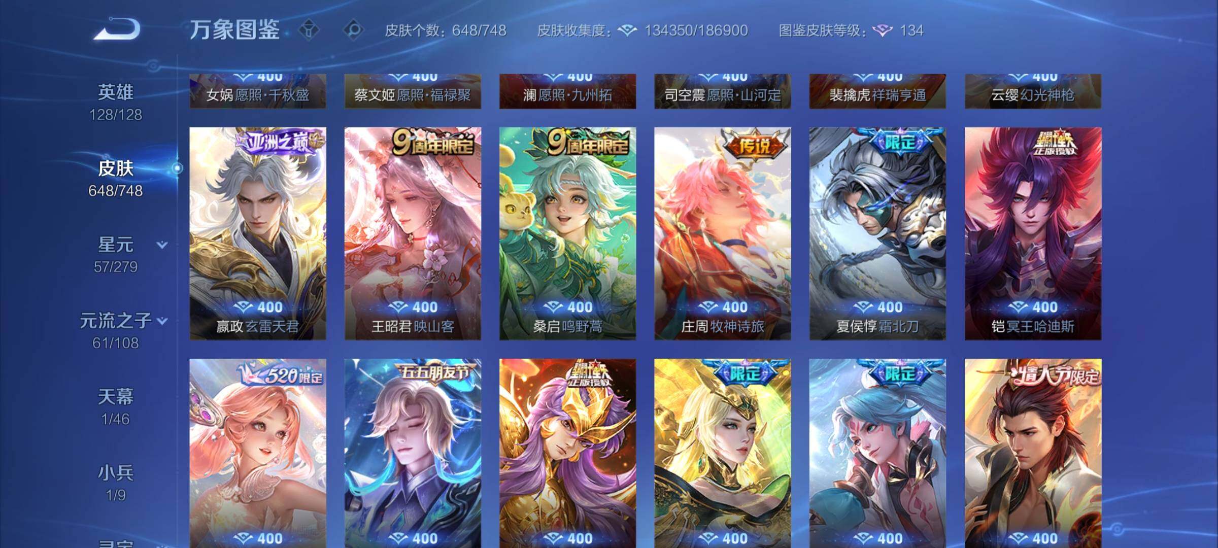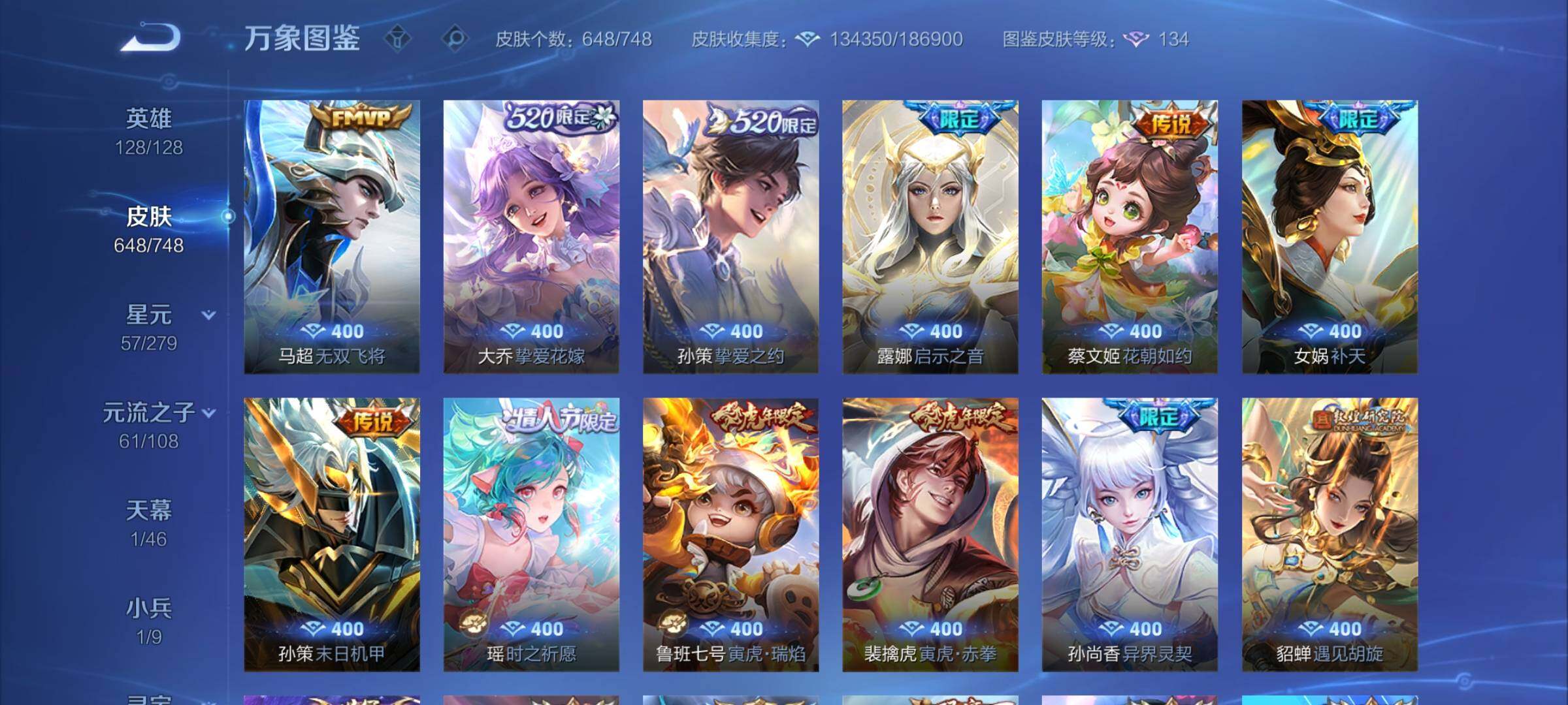 【精氪质量贵族v10·7典藏·2无双·5珍品·120传说·全皮大乔·全皮西施·全皮甄姬·全皮王昭君·全皮虞姬·全皮露娜·全皮马可波罗·全皮韩信·全皮镜·全皮马超·全皮吕布·全皮百里守约·9星传说·紫瑶·红枫·时之思念·金虎啸春天幕·可二次】w8147-安卓q-128英雄-648皮肤-7王者印记-300铭文-贵族积分36w【贵族10】【7典藏·2无双·5珍品·9星传说·120传说·1天幕·3