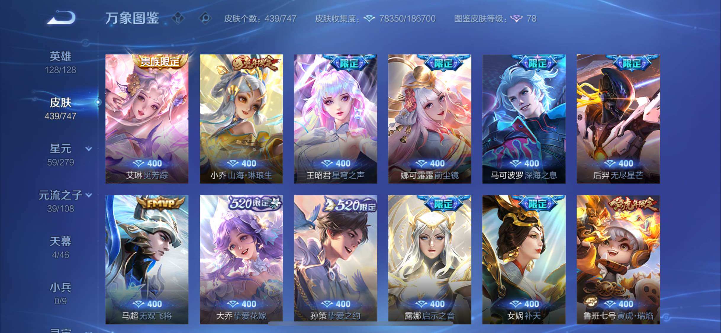【精氪贵族v10·6典藏·2无双·45传说·4星传说·时之羁绊·浪翻一夏天幕·挚爱童话天幕·秋月华灯天幕·5金标·20年限皮肤·满虎年限定·满牛年限定·可二次】w8043-苹果q-128英雄-439皮肤-12王者印记-300铭文-贵族积分20w【贵族10】【6典藏·2无双·4星传说·45传说·4天幕·7按键·420个性戳戳】【因赛季更新游戏段付以上号为准!】 【英雄全皮】:娜可露露全皮,钟