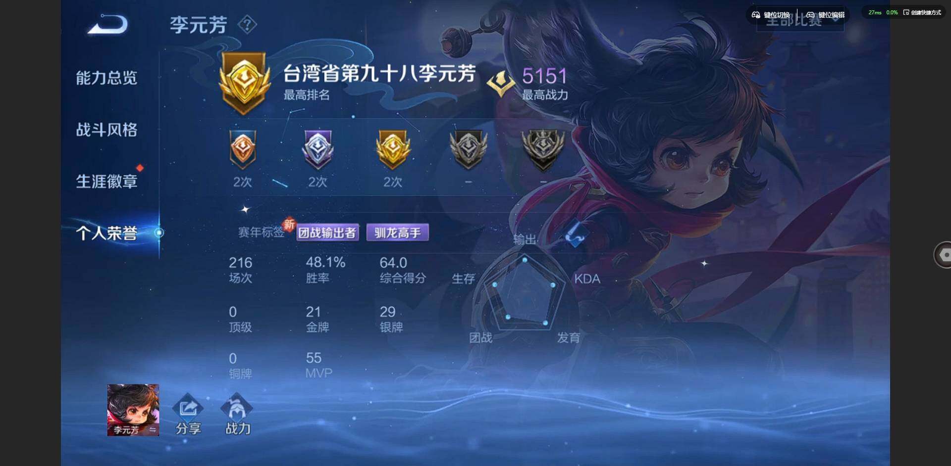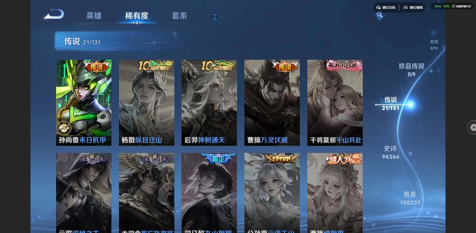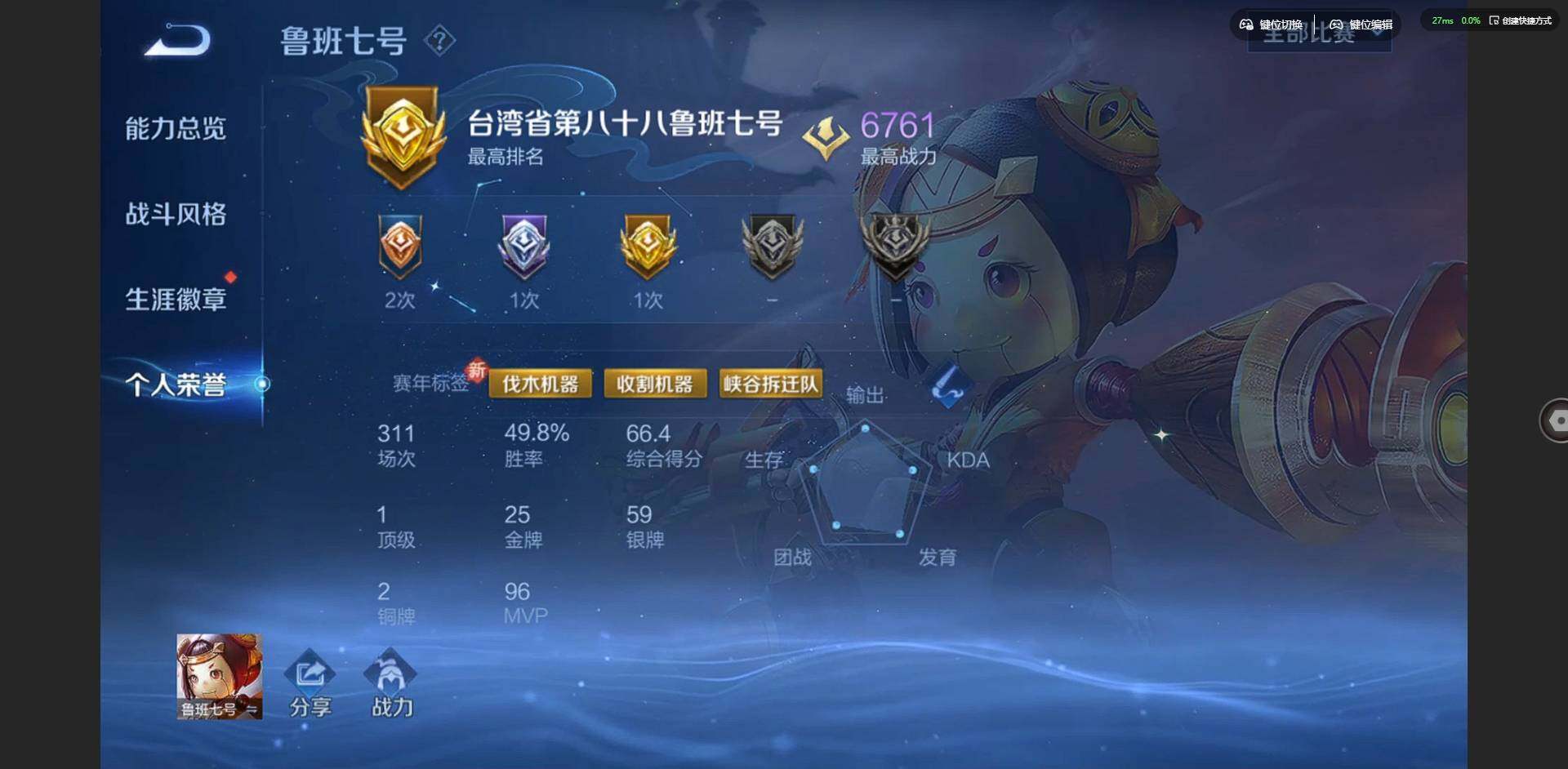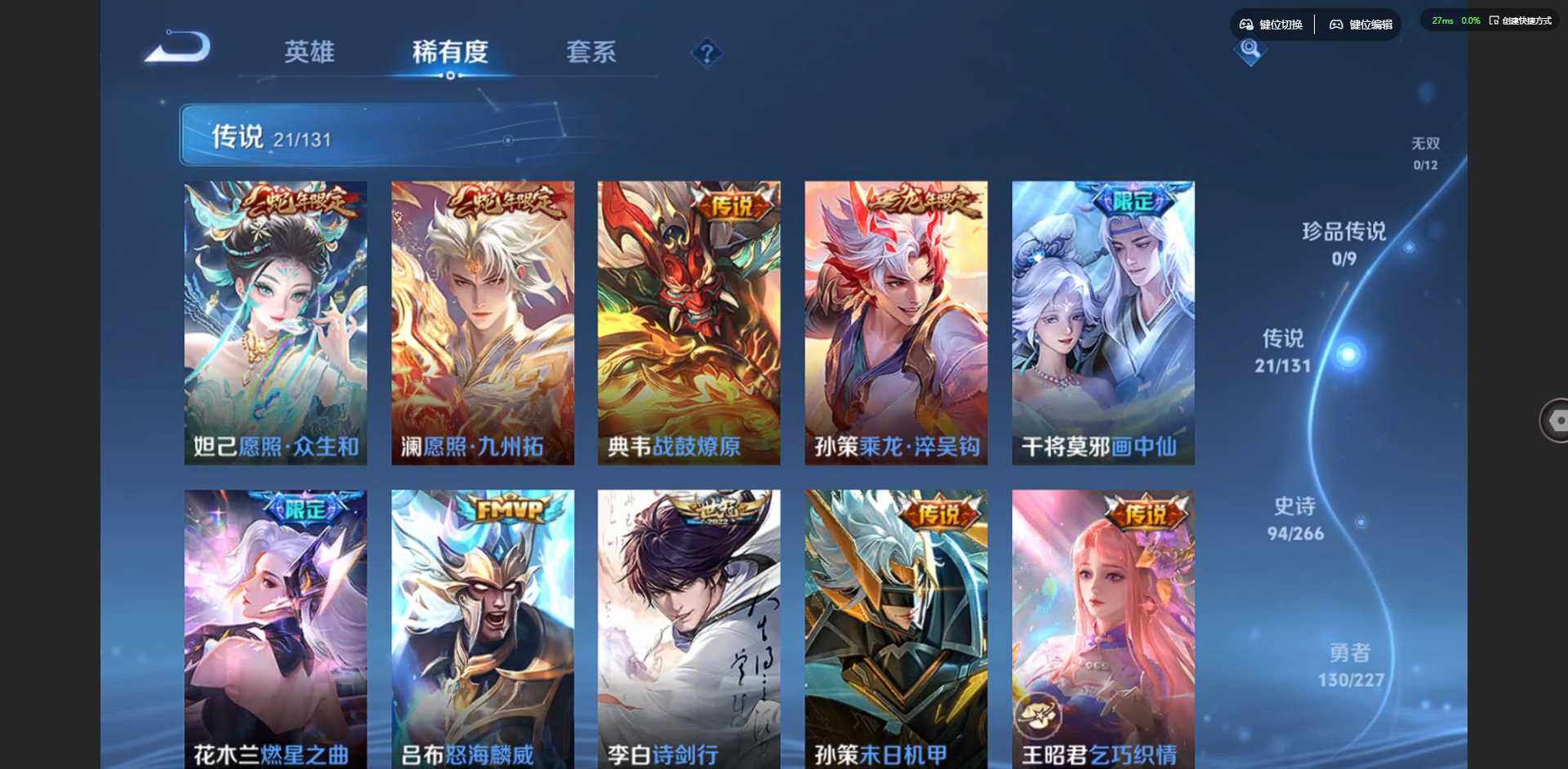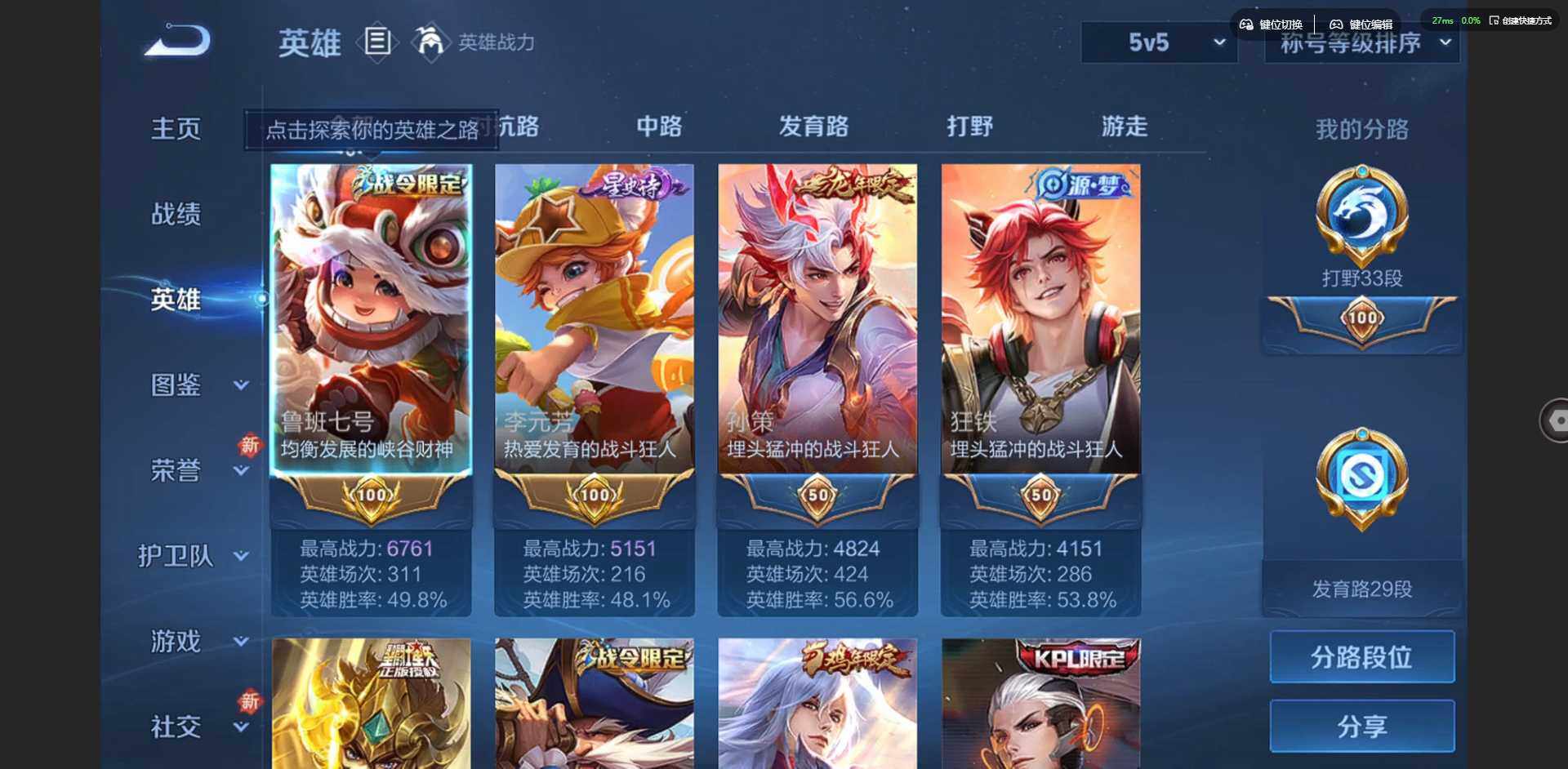 2305734-【金标鲁班七号 金标李元芳】实名: 可修改 贵族等级: v9 英雄数: 127 皮肤数: 326 荣耀水晶: 杀手不太冷弑呛猎影 星传说: 未来机甲金色仲夏夜岁雨灵司 传说皮: 黄金狮子座云鹰飞将久胜战神一念神魔末日机甲-孙尚香仲夏夜之梦李乞巧织情末日机甲-孙策燃星之曲画中仙乘龙·淬吴钩典韦战鼓燎原 限定皮: 冰锋战神李小龙游园惊梦梁祝
