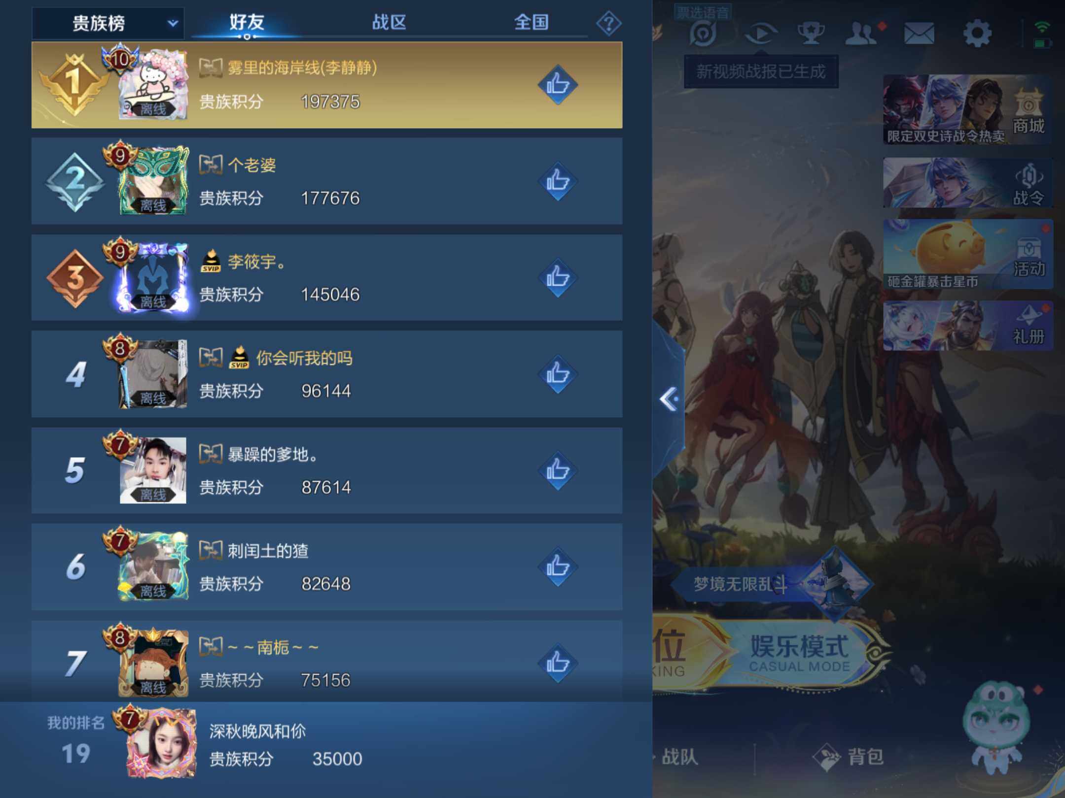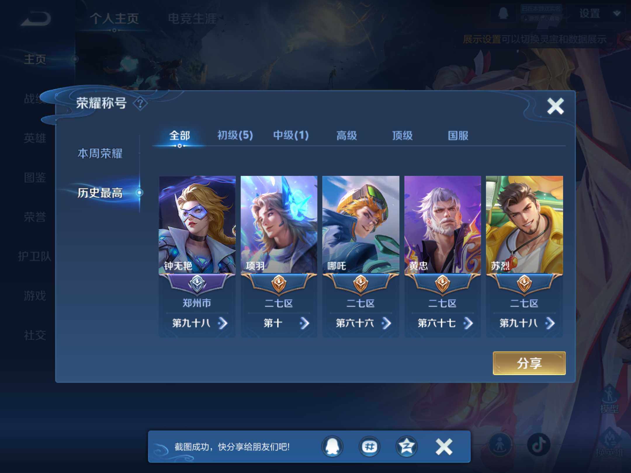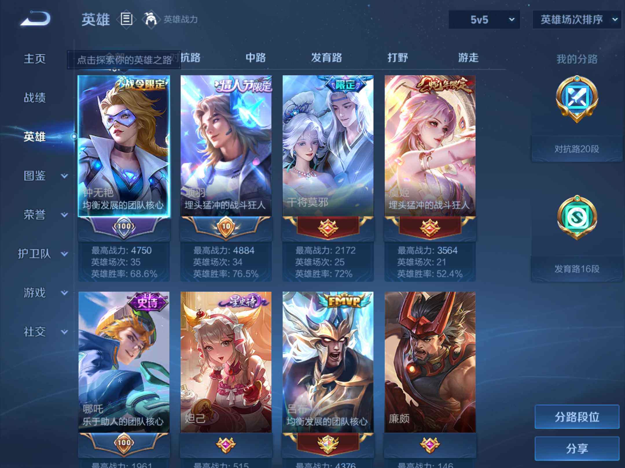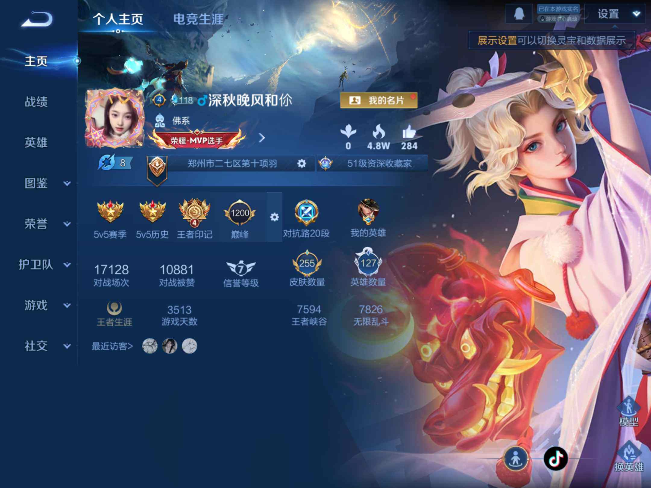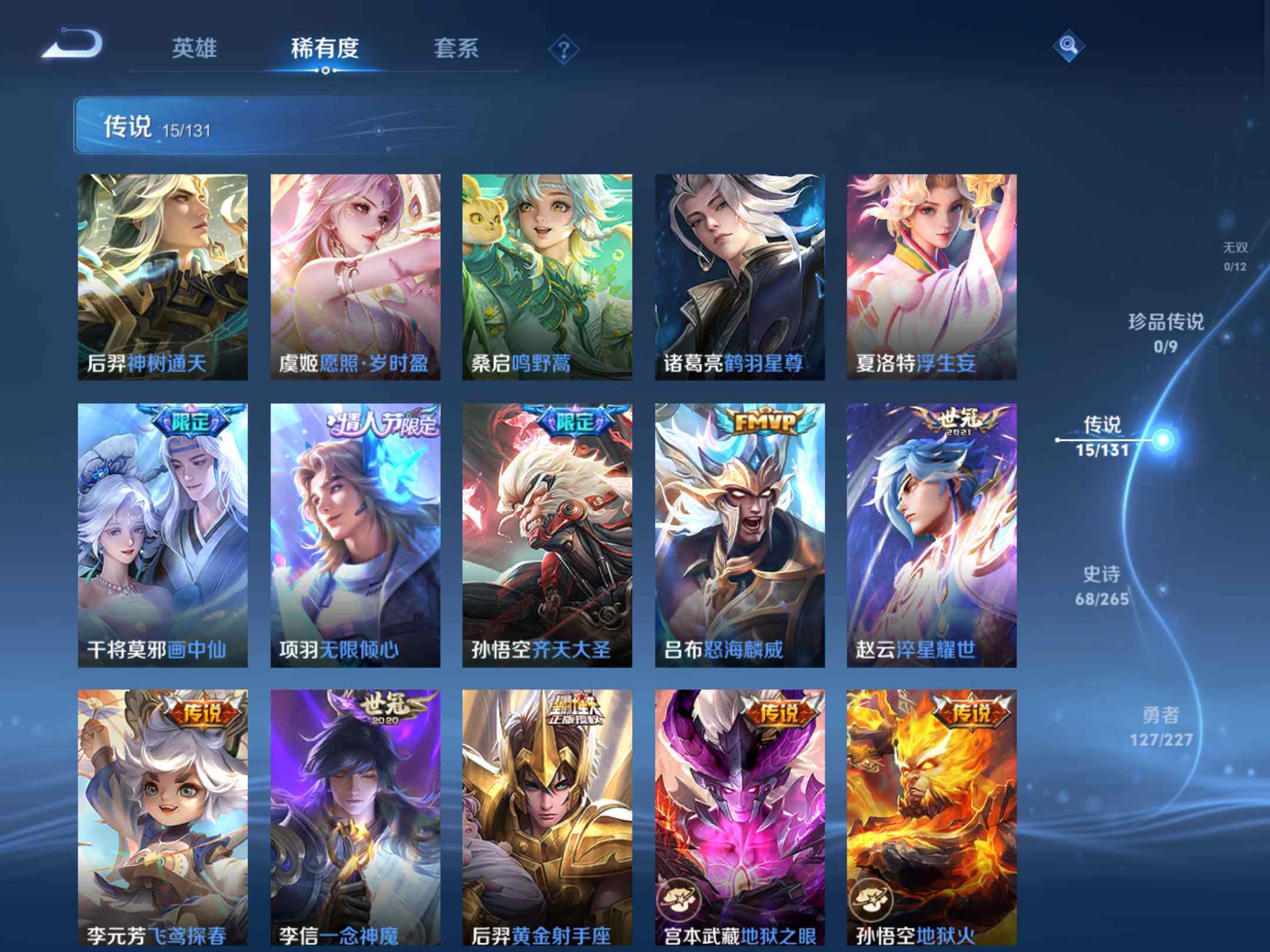 _2306027-q-v7-最强王者段位-127英雄-255皮肤-1典藏皮肤-15传说-68史诗-对抗路20段, 【荣耀典藏】:孙悟空全息碎影 【传说皮肤】:后羿神树通天,虞姬愿照岁时盈,桑启鸣野蒿,诸葛亮鹤羽星尊,夏洛特浮生妄,干将莫邪画中仙,项羽无限倾心,孙悟空齐天大圣,吕布怒海麟威,赵云淬星耀世,李元芳飞鸢探春,李信一念神魔,后羿黄金射手座,宫本武藏地狱之眼,孙悟空地狱火 【限定皮肤】:白起狰,蔡文姬夏日便利店,大乔绒语心约,虞姬夏日便利店,狄仁杰阴阳师,虞姬凯尔特女王,赵云皇家上将,嬴政白昼王子,孙尚香蔷薇恋人,庄周蜃楼王,庄周高山流水,高渐离玩趣恶龙,钟无艳超时空战士,孙膑妖精王,扁鹊炼金王,扁鹊奇幻香踪,芈月重明,吕布猎兽之王,甄姬落雪兰心,曹操烛龙,典韦穷奇,典韦蓝屏警告,马可波罗山海玄木吟,狄仁杰魔术师,狄仁杰万华元夜,达摩星际陆战队,达摩沙漠行僧,项羽海滩派对,项羽无限倾心,关羽百相守梦,程咬金演武夺筹,兰陵王金庭之子,亚瑟狮心王,孙悟空齐天大圣,牛魔御旌,刘备百相守梦,李元芳云中旅人,钟馗驱傩正仪,杨玉环遇见飞天,杨戬潮玩骑兵,女娲朔望之晖,干将莫邪画中仙,太乙真人饕餮,鬼谷子五谷丰年,诸葛亮鹤羽星尊,苏烈千军破阵,沈梦溪大漠名商,裴擒虎擒涛扼浪,狂铁御狮,米莱狄御霄,米莱狄胡桃异想国,盾山御銮,猪八戒猪悟能,嫦娥拒霜思,鲁班大师探海日志,桑启海盐诗旅,夏洛特浮生妄,张良古海寻踪,鬼谷子天穹祈灯,姬小满妄想食味,沈梦溪龙舞盛年,周瑜熔金海岸 【年限皮肤】:马可波罗山海玄木吟 【赛季限定】:庄周蜃楼王,孙膑妖精王,扁鹊炼金王,白起狰,芈月重明,曹操烛龙,典韦穷奇,狄仁杰万华元夜,达摩沙漠行僧,程咬金演武夺筹,兰陵王金庭之子,张良古海寻踪,亚瑟狮心王,牛魔御旌,李元芳云中旅人,虞姬凯尔特女王,钟馗驱傩正仪,太乙真人饕餮,苏烈千军破阵,沈梦溪大漠名商,裴擒虎擒涛扼浪,狂铁御狮,米莱狄御霄,盾山御銮,鲁班大师探海日志,桑启海盐诗旅,鬼谷子天穹祈灯 【战令限定】:蔡文姬夏日便利店,虞姬夏日便利店,嬴政白昼王子,钟无艳超时空战士,扁鹊奇幻香踪,吕布猎兽之王,甄姬落雪兰心,典韦蓝屏警告,达摩星际陆战队,杨戬潮玩骑兵,女娲朔望之晖,米莱狄胡桃异想国 【史诗皮肤】:鲁班七号电玩小子,项羽苍穹之光,露娜紫霞仙子,阿轲暗夜猫娘,赵云皇家上将,貂蝉圣诞恋歌,甄姬冰雪圆舞曲,王昭君偶