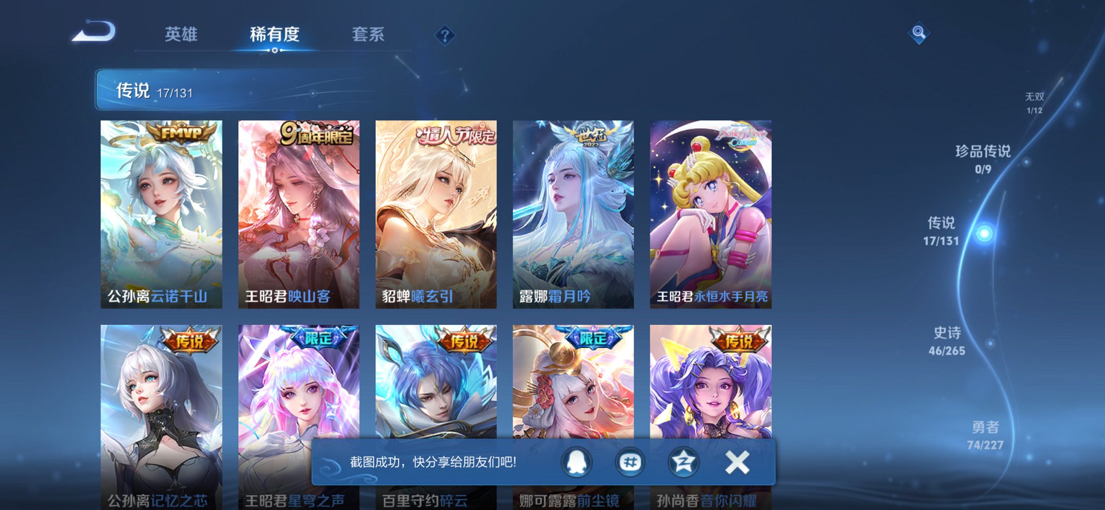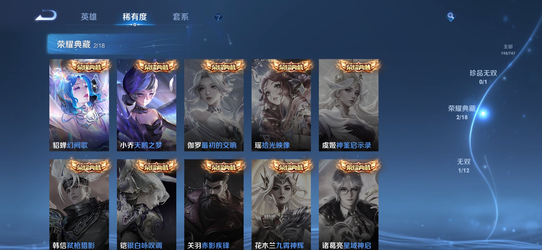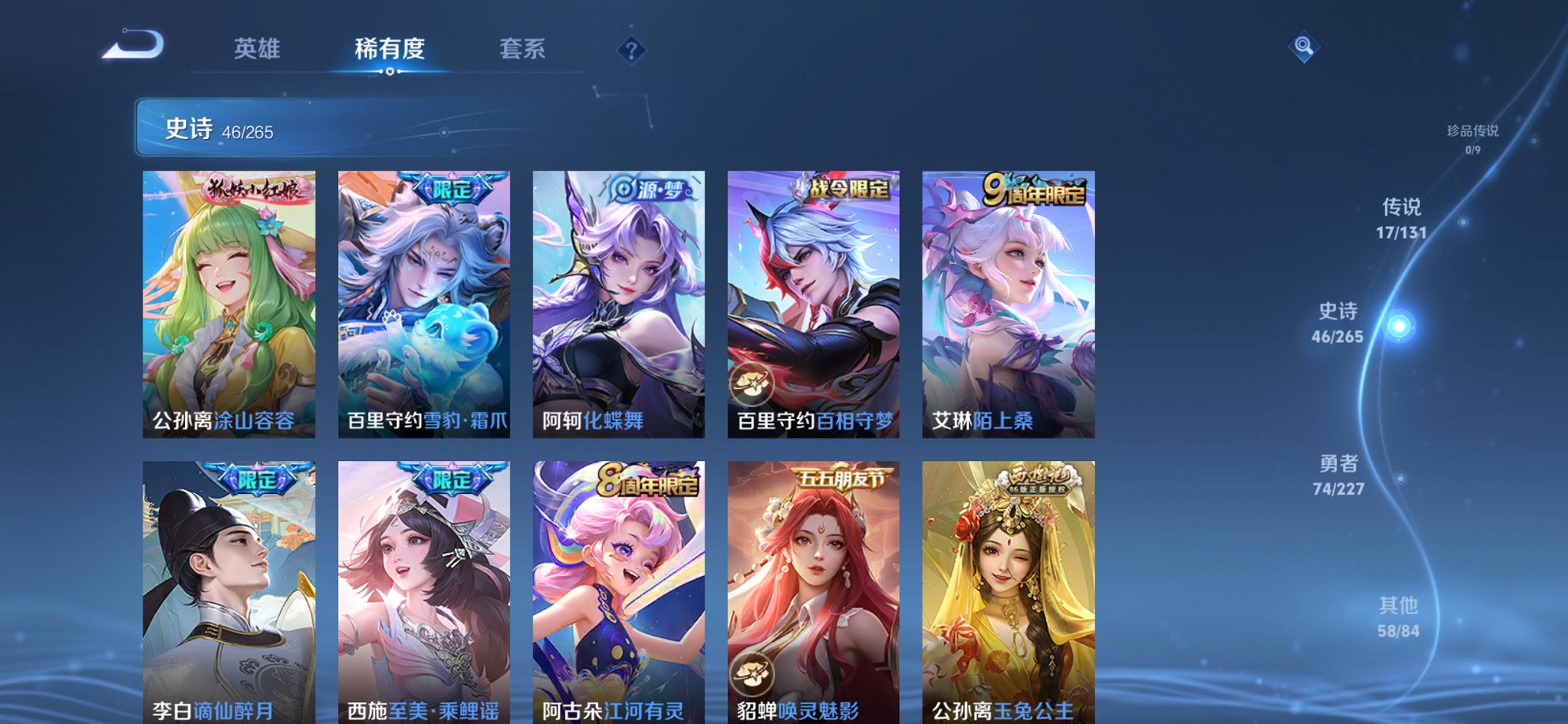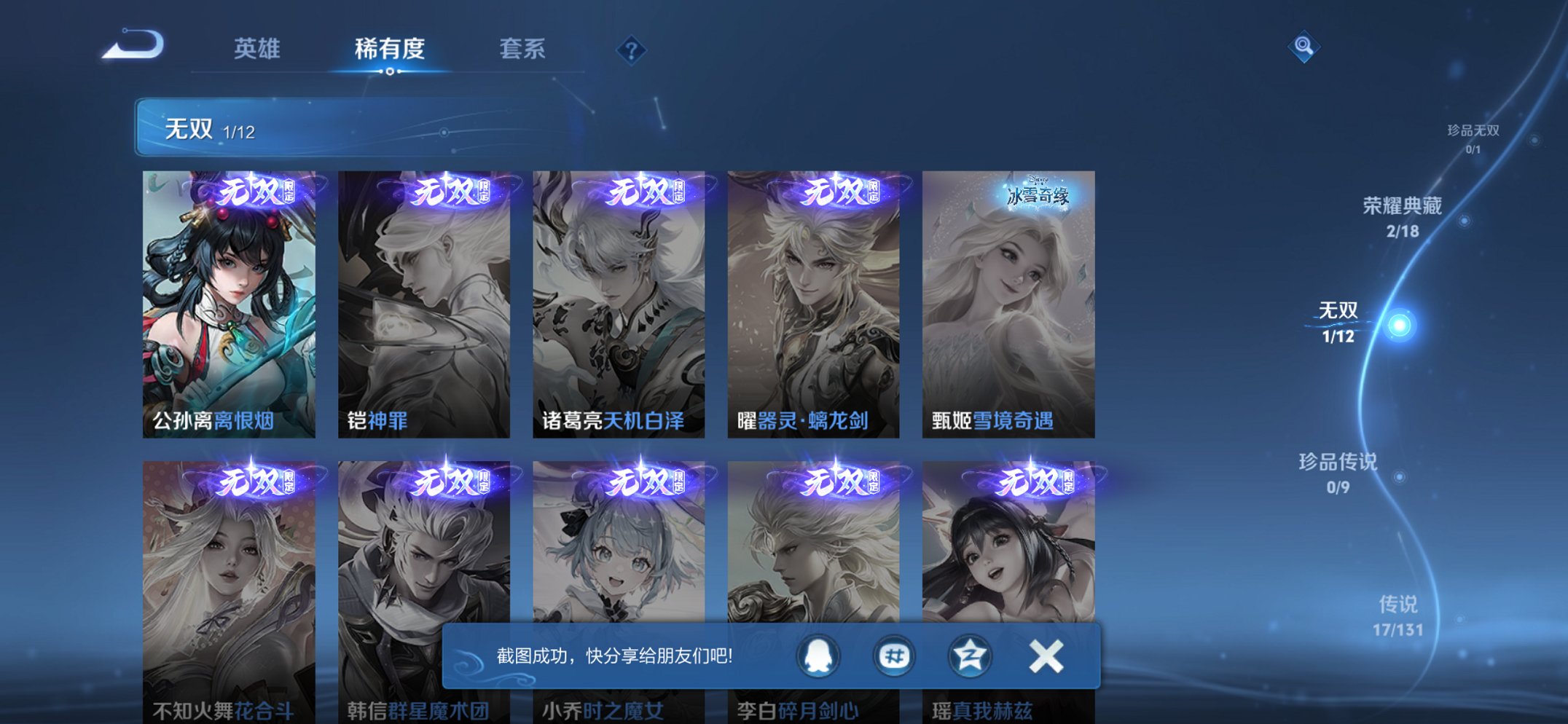 124英雄-199皮肤-【女号离恨烟17传说199皮肤2典藏1无双2星元 秒换绑不用等】苹果q-124英雄【2水晶】幻阙歌 天鹅之梦【1无双】离恨烟【2星元】幻舞叠翠 未来机甲【17传说】云诺千山 曦玄引 霜月吟 映山客 记忆之芯 星穹之声 碎云 前尘镜 音你闪耀 仲夏夜之梦 猫影幻舞 祈雪灵祝 末日机甲 乞巧织情 音你心动 启明星使 永恒水手月亮【48史诗】雪豹·霜爪 至尊宝 至美·乘鲤谣 谪仙醉月
