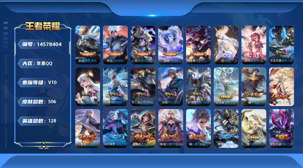 [14578404]das8141包人脸苹果q-v10-506皮肤6典藏2无双6星传说54传说163史诗 武则天 杀手不太冷 鸣剑曳影 银白咏叹调 幻阙歌 弑呛猎影 神罪 青丘九尾 零号·雷霆 时之思念 玉鸢吟 星际治安官 幽冥之眼 金色仲夏夜 【全皮英雄】 娜可露露全皮 露娜全皮 李信全皮 海