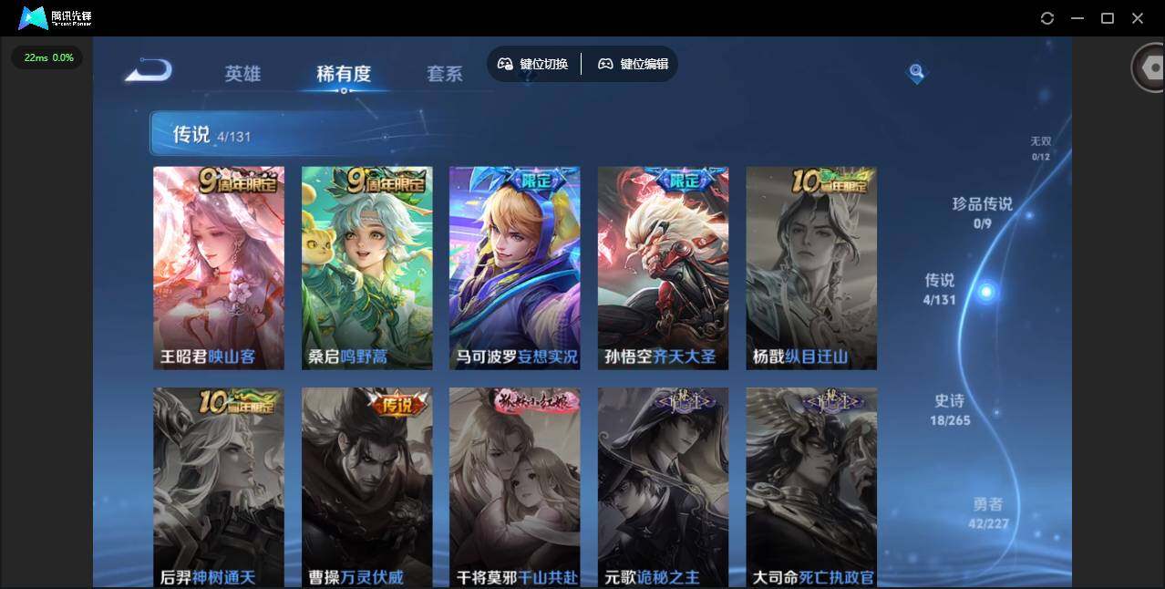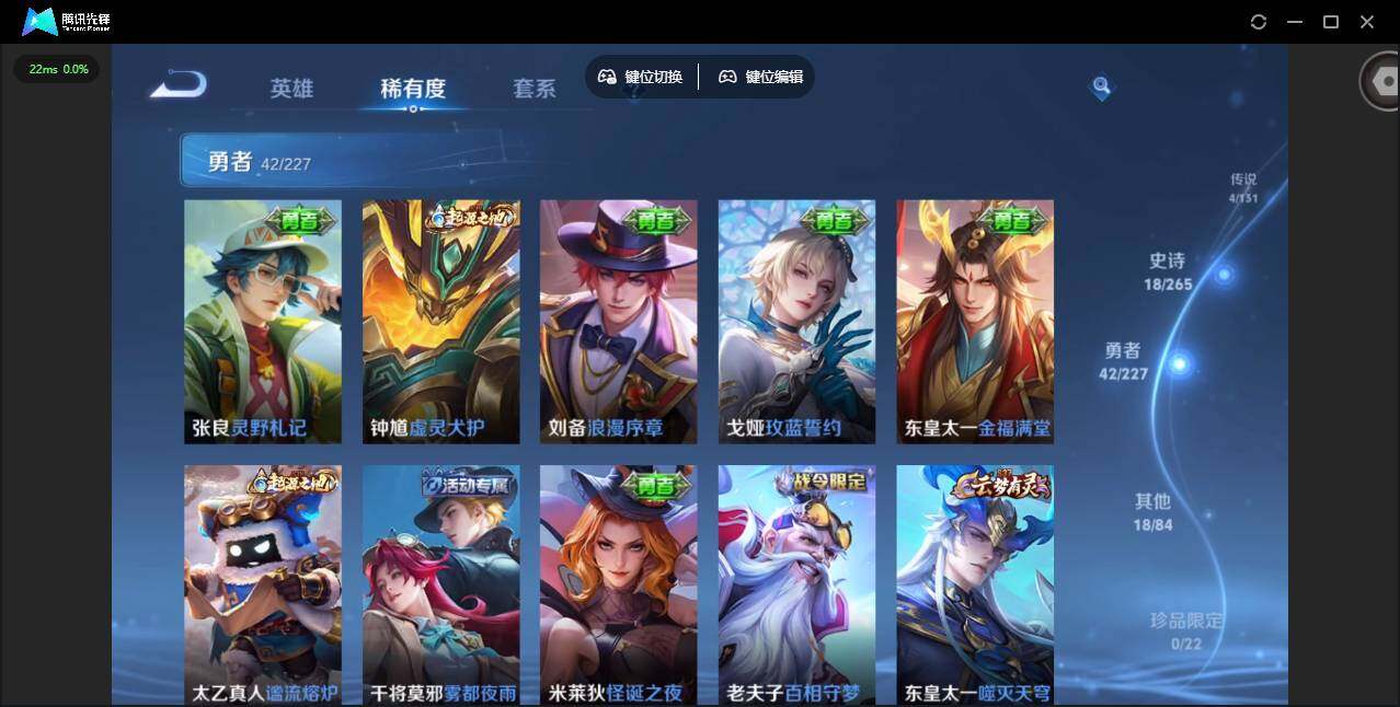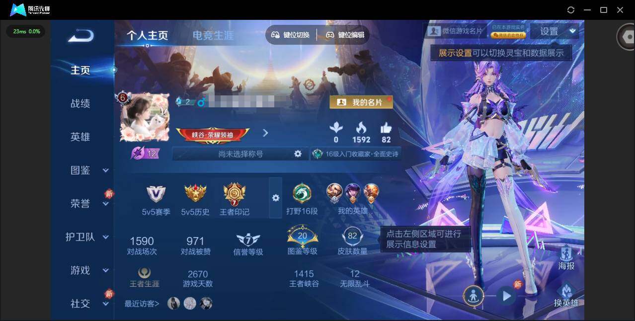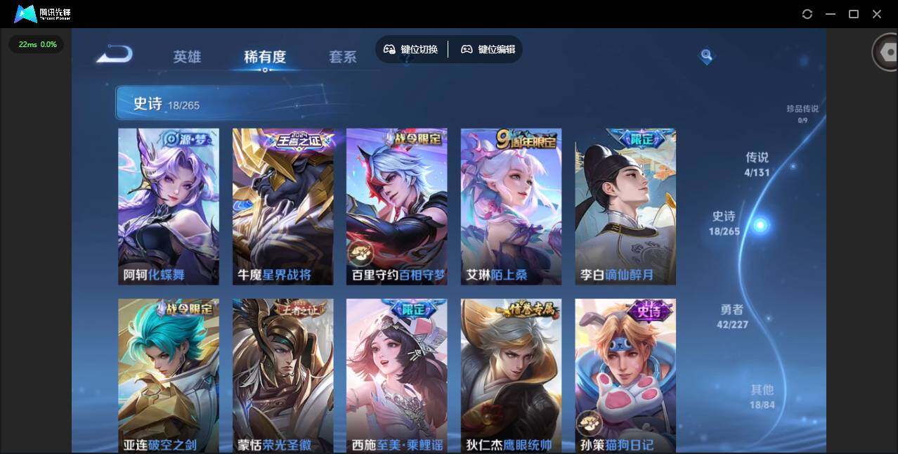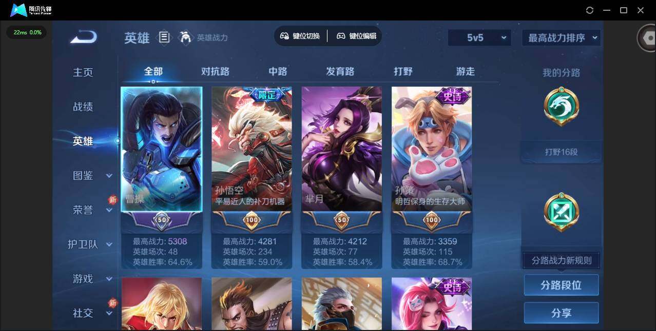 [14602806]实名: 可修改 贵族等级: v6 英雄数: 120 皮肤数: 82 传说皮: 妄想实况 限定皮: 齐天大圣至美·乘鲤谣鸣野蒿陌上桑映山客