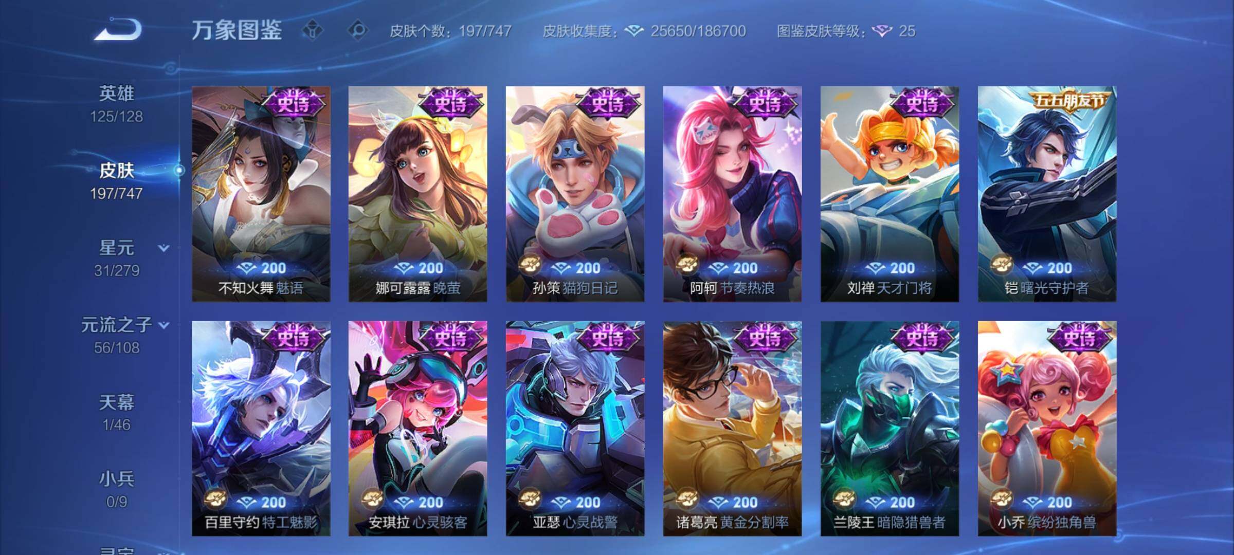 【精品推荐·对抗路50段·1.3w金标杨戬·弑呛猎影·炽阳神光·神威·乘龙聚宝船】【可二次】w8162-安卓q-125英雄-197皮肤-19王者印记-300铭文-贵族积分1w【贵族6】【1典藏·6传说·1天幕·4按键】【因赛季更新游戏段付以上号为准!】 【英雄全皮】:蒙恬全皮,影全皮 【荣耀典藏】:韩信弑呛猎影 【天幕】:共赏芳华天幕 【传说皮肤】:后羿神树通天,云缨幻光神呛,桑启鸣野蒿,