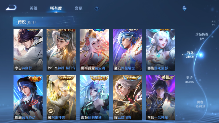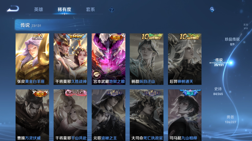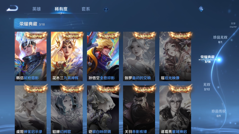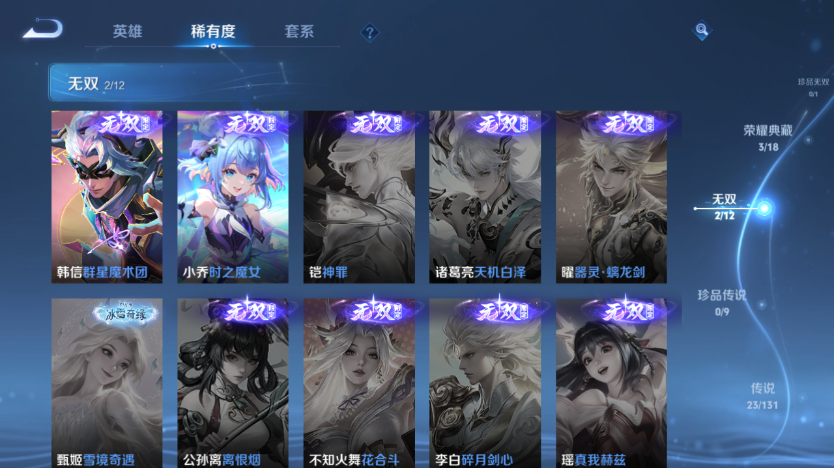 【王者荣耀】【lywz23529】珍品无双0 典藏3 无双2 珍品传说0 传说23 史诗84 英雄127 皮肤316 贵族8级 荣耀典藏:全息碎影|九霄神辉|弑呛猎影__无双皮肤:群星魔术团|时之魔女__传说皮肤:鸣野蒿|前尘镜|炽阳神光|启明星使|地狱之眼|久胜战神|黄金白羊座|一念神魔|云鹰飞将|游龙清影|淬星耀世|电玩·雷克斯|鹤羽星尊|黄金天蝎座|马超-琥珀纪元|诗剑行|战鼓燎原|周瑜-音你心动|逐花归海|乘龙·淬吴钩|乘龙·问璇玑|神器·狴犴令|云中君-群星魔术团__稀有限定:至尊宝|青龙志|朱雀志|大圣娶亲|一生所爱|神威|猪悟能|玉兔公主|李小龙|梁祝|山海·碧波行|狮舞东方|拒霜思|大漠名商|繁星吟游|高山流水|古海寻踪|海滩派对|海盐诗旅|皇家上将|辉光之辰|混沌棋|剑破天穹|金庭之子|凯尔特女王|蓝屏警告|黎明之约|迷踪丽影|魔术师|匿光破解者|女武神|奇幻香踪|千军破阵|擒涛扼浪|青焰无极|穷奇|驱傩正仪|燃音魔法|沙漠行僧|朔风刀|探海日志|饕餮|醍醐杖|天穹祈灯|万华元夜|无心|演武夺筹|疑决卦|阴阳师|优雅恋人|遇见飞天|御旌|御銮|御狮|原初追逐者|云间偶戏|逐梦之影|暗夜猫娘|暗隐猎兽者|暗渊魔法|白蛇|缤纷独角兽|冰雪圆舞曲|乘风破浪|乘龙·聚宝船|大乔-猫狗日记|德古拉伯爵|地狱岩魂|电玩·兔顽号|电玩小子|功夫厨神|鬼剑武藏|黄金分割率|节奏热浪|金属风暴|李元芳-蔬乡物语|吕布-末日机甲|魅力维加斯|梦奇-顽趣|女仆咖啡|偶像歌手|赏金猎手|上官婉儿-群星魔术团|绅士熊喵|圣诞狂欢|圣诞恋歌|鲁班七号-蔬乡物语|水果甜心|水晶猎龙者|孙策-猫狗日记|天秀·启明|赵云-未来纪元|星夜王子|摇滚巨星|鹰眼统帅|幽灵船长|逐浪之夏|紫霞仙子|谪仙醉月|噬灭天穹|敬我三分|破空之剑|东方月初|天穹之誓|浮光幕影|怒海争锋|千年之狐|舞动绿茵|特工魅影|心灵骇客|星界战将|御霄|狰|烛龙|原初探秘者|重明|云中旅人|孙悟空-神迹守卫|流音漫舞|灵卜魔法|夺宝奇兵|苍威无极|龙之律动|光弋星穹|往忆晖光|荣光之誓__优质皮肤:尼罗河女神|一千零一夜|创世神祝|年年有余|埃及法老|孤猎|木偶奇遇记|熊喵少女|午夜歌剧院|火炮千金|露花倒影|未来旅行|激情绿茵|海之征途|天启骑士|碧珀绯影|秩序猎龙将|锦衣卫|冰刃幻境|森|超能战警|英喵野望|维京掠夺者|海军大将|绯红之刃|踏雪寻梅|启蛰|战争骑士|伊势巫女|画中游|生化警戒|威尼斯狂欢|第七人偶|潮流仙人|芝加哥教父|街头旋风|绝影神呛|地府判官|荷鲁斯之眼|幸存者|赤焰之缨|福禄兄弟|隐刃|前尘|特种部队|三太子|剑舞者|范海辛|星航指挥官|龙域领主|爱与和平|占星师|花间舞|魇语军师|极冰防御线|花见巫女|棒球奇才|东海龙王|蔷薇王座|灼热之刃|精准探案法|圣殿之光|帝国元帅|战争女神|霓裳曲|加勒比小姐|阿摩司公爵|异域舞娘|精灵公主|修竹墨客|万圣前夜|破阵·退雄兵|暗都幽影|功夫炙烤|潮玩探月行|瓷语鉴心|秘密基地|次元突破|鲨炮海盗猫|野性能量|丁香结|奇妙博物学|虹云星官|守护之力|坚韧之力|幻乐之宴|功夫老勺|命运角斗场|幻想奇妙夜|海滩丽影|阿尔法小队|兔女郎|死亡骑士|黄金武士|少女阿狸|天使之翼|玩偶对对碰|宫本武藏-未来纪元|红桃皇后|忍·炎影|爱心护理|街头霸王|教廷特使|鸿运当头|金色潮汐|破局者|零食大作战|幻泉雾影|潮玩造梦师|危途狂花|铁甲之心|次元傲视|制霸全明星|进击墨子号|拳王|时尚教父|救世之瞳|白色死神|程咬金-星际陆战队|白执事|大发明家|致命风华|哥特玫瑰|星梦巡礼|缤纷绘卷|掌控之力|雾都夜雨|纽约教父|龙腾万里|霸王丸|乱世虎臣|经纬探寻者|敏锐之力|西施-归虚梦演|孙悟空-西部大镖客|牛魔-西部大镖客|龙舞盛年|汉昭烈帝|乓乓大师|五福同心|盾山-圆桌骑士|蒙犽-归虚梦演|万事如意|曜-归虚梦演|唤灵魔甲|太乙真人-圆桌骑士|沉稳之力|程咬金-群星魔术团|化身博士|花好人间|春野之旅|潮玩骑士王|万象初新|蔚蓝守将|劲辣红锅|特工战影|炽热元素使|无双福将|极光幻客__贵族等级:贵族8级__王者段位:无双王者韩信小乔无双 韩信木兰猴子典藏 多热门限定传说 1传说天幕