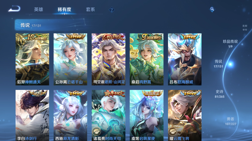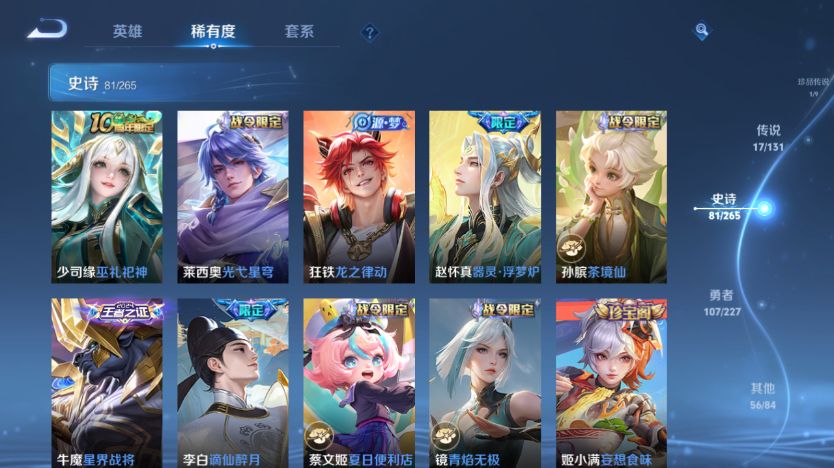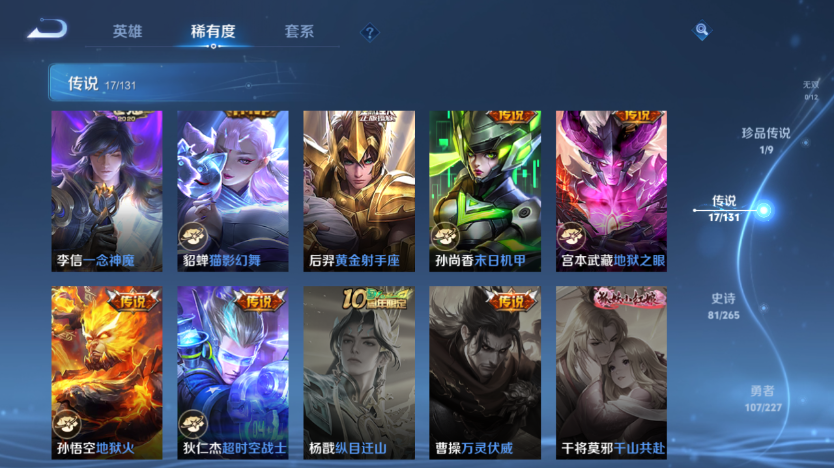 【王者荣耀】【lywz23527】珍品无双0 典藏2 无双0 珍品传说1 传说17 史诗81 英雄125 皮肤264 贵族8级 荣耀典藏:鸣剑·曳影|弑呛猎影__珍品传说:怪盗基德__传说皮肤:鸣野蒿|启明星使|地狱之眼|地狱火|狄仁杰-超时空战士|黄金射手座|猫影幻舞|一念神魔|云鹰飞将|游龙清影|孙尚香-末日机甲|怒海麟威|诗剑行|时雨天司|愿照·山河定|云诺千山|神树通天__稀有限定:至尊宝|青龙志|飞衡|蔷薇恋人|李小龙|山海·玄木吟|百解令|大漠名商|电玩高手|繁星吟游|古海寻踪|海滩派对|海盐诗旅|幻夜卜梦|皇家上将|剑破天穹|江河有灵|金庭之子|黎明之约|魔术师|花木兰-默契交锋|奇幻香踪|擒涛扼浪|青焰无极|荣光圣徽|圣诞老人|探海日志|天穹祈灯|妄想食味|无心|五谷丰年|午后时光|星界游侠|阴阳师|驭风魔法|原初追逐者|暗夜贵公子|暗隐猎兽者|白龙吟|缤纷独角兽|冰冠公主|冰雪圆舞曲|乘风破浪|大乔-猫狗日记|德古拉伯爵|地狱岩魂|电玩·爆裂旋风|功夫厨神|鬼剑武藏|黄金分割率|箭羽风息|节奏热浪|金属风暴|吕布-末日机甲|魅力维加斯|魅语|梦奇-顽趣|女仆咖啡|偶像歌手|赏金猎手|绅士熊喵|圣诞狂欢|圣诞恋歌|水果甜心|水晶猎龙者|孙策-猫狗日记|天才门将|晚萤|赵云-未来纪元|星夜王子|鹰眼统帅|永昼|幽灵船长|月团寄思|钟无艳-超时空战士|逐浪之夏|紫霞仙子|谪仙醉月|噬灭天穹|敬我三分|蔡文姬-夏日便利店|虞姬-夏日便利店|天穹之誓|修罗|曙光守护者|心灵战警|千年之狐|孙尚香-时之恋人|舞动绿茵|特工魅影|茶境仙|星界战将|谧流熔炉|器灵·浮梦炉|云中旅人|玲珑珍味|钟馗-神迹守卫|访茗客|暖冬·兔眠|苍威无极|落雪兰心|龙之律动|布丁狗之约|虚灵犬护|逆浪荇歌|光弋星穹|往忆晖光|荣光之誓|巫礼祀神|鹤鸣心笺__优质皮肤:尼罗河女神|创世神祝|年年有余|孤猎|木偶奇遇记|熊喵少女|午夜歌剧院|激情绿茵|海之征途|天启骑士|碧珀绯影|锦衣卫|冰刃幻境|森|超能战警|维京掠夺者|海军大将|踏雪寻梅|启蛰|画中游|第七人偶|潮流仙人|芝加哥教父|街头旋风|绝影神呛|地府判官|荷鲁斯之眼|幸存者|赤焰之缨|福禄兄弟|隐刃|前尘|特种部队|三太子|精灵王|剑舞者|范海辛|星航指挥官|龙域领主|爱与和平|花间舞|魇语军师|极冰防御线|花见巫女|棒球奇才|东海龙王|灼热之刃|圣殿之光|帝国元帅|加勒比小姐|阿摩司公爵|异域舞娘|修竹墨客|破阵·退雄兵|暗都幽影|功夫炙烤|聚星闪耀|潮玩探月行|秘密基地|次元突破|鲨炮海盗猫|野性能量|丁香结|虹云星官|守护之力|坚韧之力|幻乐之宴|功夫老勺|命运角斗场|幻想奇妙夜|海滩丽影|阿尔法小队|兔女郎|死亡骑士|黄金武士|少女阿狸|天使之翼|玩偶对对碰|宫本武藏-未来纪元|忍·炎影|爱心护理|街头霸王|教廷特使|太极少年|乐园追猎者|牛运亨通|潮玩造梦师|拳王|时尚教父|救世之瞳|白色死神|爱与正义|大发明家|哥特玫瑰|星梦巡礼|景韶洛都|猪八戒-西部大镖客|缤纷绘卷|掌控之力|铁骨偃魂|纽约教父|龙腾万里|乱世虎臣|敏锐之力|孙悟空-西部大镖客|牛魔-西部大镖客|热血海滩|龙舞盛年|汉昭烈帝|乓乓大师|五福同心|万事如意|曜-归虚梦演|太乙真人-圆桌骑士|沉稳之力|赤莲之焰|程咬金-群星魔术团|花好人间|熔金海岸|万象初新|潮玩骑兵|苍林狼骑|蔚蓝守将|劲辣红锅|特工战影|妄想特派|春野闲踪|玫蓝誓约|命运加冕|死霸装|无双福将|逐霄之志|极光幻客__贵族等级:贵族8级__王者段位:荣耀王者打野皮肤号 2典藏马可珍品传说 云诺千山,启明星使,诗剑行,时雨天司等限定皮肤