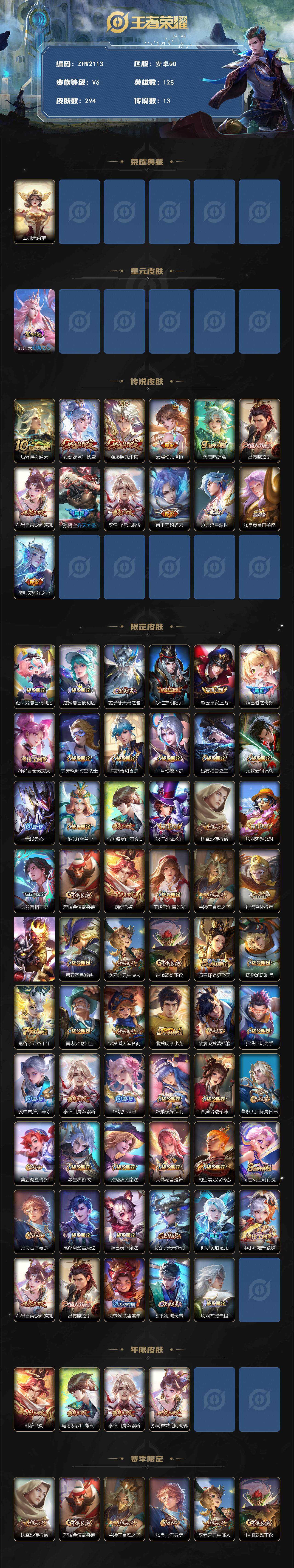 可二次【店主推荐捡漏号!可直接换绑】:安卓q-v7-最强王者段位-128英雄-294皮肤-1典藏英雄-1星元-13传说-82史诗 【英雄全皮】:孙权全皮,戈娅全皮,空空儿全皮 【荣耀典藏】:武则天英雄 【传说皮肤】:后羿神树通天,女娲愿照千秋盛,澜愿照九州拓,云缨幻光神呛,桑启鸣野蒿,吕布曦玄引,孙尚香乘龙问璇玑,孙悟空齐天大圣,李信山海炽霜斩,百里守约碎云,赵云淬星耀世,张良黄金白羊座,武则天海洋之心 【限定皮肤】:蔡文姬夏日便利店,虞姬夏日便利店,姜子牙天穹之誓,狄仁杰阴阳师,赵云皇家上将,妲己时之奇旅,孙尚香蔷薇恋人,钟无艳超时空战士,扁鹊奇幻香踪,芈月幻夜卜梦,吕布猎兽之王,元歌云间偶戏,元歌无心,甄姬落雪兰心,马可波罗山海玄木吟,狄仁杰魔术师,达摩沙漠行僧,项羽海滩派对,关羽百相守梦,程咬金演武夺筹,韩信飞衡,王昭君午后时光,兰陵王金庭之子,孙悟空孙行者,孙悟空齐天大圣,后羿圣弓游侠,李元芳云中旅人,钟馗驱傩正仪,杨玉环遇见飞天,杨戬潮玩骑兵,鬼谷子五谷丰年,黄忠火炮绅士,沈梦溪大漠名商,裴擒虎李小龙,裴擒虎擒涛扼浪,狂铁电玩高手,云中君纤云弄巧,李信山海炽霜斩,嫦娥拒霜思,嫦娥暖冬兔眠,西施玲珑珍味,鲁班大师探海日志,桑启海盐诗旅,暃星界游侠,戈娅驭风魔法,艾琳流音漫舞,司空震地狱燃心,阿古朵江河有灵,张良古海寻踪,高渐离燃音魔法,妲己灵卜魔法,鬼谷子天穹祈灯,伽罗琥珀纪元,姬小满妄想食味,孙尚香乘龙问璇玑,吕布曦玄引,沈梦溪龙舞盛年,刘邦剑破天穹,项羽苍威无极 【年限皮肤】:韩信飞衡,马可波罗山海玄木吟,李信山海炽霜斩,孙尚香乘龙问璇玑 【赛季限定】:达摩沙漠行僧,程咬金演武夺筹,兰陵王金庭之子,张良古海寻踪,李元芳云中旅人,钟馗驱傩正仪,沈梦溪大漠名商,裴擒虎擒涛扼浪,鲁班大师探海日志,桑启海盐诗旅,鬼谷子天穹祈灯,刘邦剑破天穹,姜子牙天穹之誓 【战令限定】:蔡文姬夏日便利店,虞姬夏日便利店,钟无艳超时空战士,扁鹊奇幻香踪,芈月幻夜卜梦,吕布猎兽之王,元歌云间偶戏,甄姬落雪兰心,王昭君午后时光,艾琳流音漫舞,后羿圣弓游侠,杨戬潮玩骑兵,黄忠火炮绅士,狂铁电玩高手,嫦娥暖冬兔眠,西施玲珑珍味,司空震地狱燃心,暃星界游侠,戈娅驭风魔法,高渐离燃音魔法,妲己灵卜魔法,项羽苍威无极 【史诗皮肤】:露娜紫霞仙子,阿轲暗夜猫娘,赵云皇家上将,赵云未来纪元,貂蝉圣诞恋歌,甄姬冰雪圆舞曲,王昭君偶像歌手,狄仁杰魔术师,廉颇地狱岩魂,宫本武藏鬼剑武藏,孙尚香蔷薇恋人,孙尚香水果甜心,嬴政暗夜贵公子,嬴政摇滚巨星,妲己魅力维加斯,妲己女仆咖啡,墨子龙骑士,墨子金属风暴,曹操幽灵船长,吕布末日机甲,张飞乱世虎臣,花木兰水晶猎龙者,刘邦德古拉伯爵,夏侯惇乘风破浪,小乔缤纷独角兽,兰陵王暗隐猎兽者,诸葛亮黄金分割率,亚瑟心灵战警,雅典娜冰冠公主,安琪拉心灵骇客,百里守约特工魅影,铠曙光守护者,蔡文姬舞动绿茵,李元芳逐浪之夏,程咬金功夫厨神,白起星夜王子,阿轲节奏热浪,杨玉环遇见飞天,孙策猫狗日记,大乔猫狗日记,狄仁杰鹰眼统帅,公孙离无限星赏官,娜可露露晚萤,韩信飞衡,大乔白蛇,不知火舞魅语,橘右京修罗,孙尚香时之恋人,裴擒虎李小龙,云中君纤云弄巧,元歌云间偶戏,孙悟空孙行者,嫦娥拒霜思,黄忠火炮绅士,澜赏金猎手,艾琳奇遇舞章,狂铁电玩高手,钟无艳超时空战士,妲己时之奇旅,鬼谷子五谷丰年,元歌无心,暃星界游侠,马可波罗山海玄木吟,扁鹊奇幻香踪,关羽百相守梦,刘禅电玩爆裂旋风,戈娅驭风魔法,司空震地狱燃心,阿古朵江河有灵,妲己灵卜魔法,高渐离燃音魔法,伽罗琥珀纪元,姬小满妄想食味,蔡文姬夏日便利店,弈星万物之道,芈月瑰影绮梦,阿轲化蝶舞,狂铁龙之律动,后羿石田雨龙,周瑜百相守梦,黄忠百相守梦,西施织梦人,公孙离涂山容容 【其他皮肤】:项羽海滩派对,韩信教廷特使,韩信街头霸王,露娜哥特玫瑰,达摩大发明家,赵云忍炎影,程咬金星际陆战队,程咬金爱与正义,白起白色死神,牛魔西部大镖客,扁鹊化身博士,扁鹊救世之瞳,宫本武藏未来纪元,安琪拉玩偶对对碰,孙膑天使之翼,姜子牙时尚教父,妲己少女阿狸,典韦黄金武士,亚瑟死亡骑士,达摩拳王,花木兰兔女郎,张飞五福同心,甄姬花好人间,后羿阿尔法小队,狄仁杰阴阳师,刘备纽约教父,刘备汉昭烈帝,关羽龙腾万里,墨子进击墨子号,钟无艳海滩丽影,王昭君幻想奇妙夜,老夫子功夫老勺,孙尚香沉稳之力,李白敏锐之力,鬼谷子幻乐之宴,苏烈坚韧之力,大乔守护之力,吕布猎兽之王,明世隐虹云星官,庄周奇妙博物学,小乔丁香结,吕布野性能量,孙膑归虚梦演,沈梦溪鲨炮海盗猫,姜子牙炽热元素使,哪吒次元突破,盾山圆桌骑士,狂铁特工战影,刘禅秘密基地,杨戬次元傲视,程咬金演武夺筹,张良缤纷绘卷,盘古重装意志,钟馗驱傩正仪,鲁班大师乓乓大师,后羿圣弓游侠,马可波罗潮玩牛仔,达摩沙漠行僧,芈月幻夜卜梦,程咬金无双福将,刘邦虎啸剑宗,兰陵王金庭之子,刘禅唤灵魔甲,米莱狄契约魔法,王昭君午后时光,沈梦溪大漠名商,蒙犽胡桃狂想曲,蒙恬蔚蓝守将,甄姬落雪兰心,李元芳云中旅人,戈娅危途狂花,刘备潮玩造梦师,桑启海盐诗旅,嫦娥暖冬兔眠,海月幻泉雾影,猪八戒潮玩探月行,牛魔牛运亨通,白起乐园追猎者,赵怀真太极少年,裴擒虎擒涛扼浪,杨戬潮玩骑兵,太乙真人劲辣红锅,莱西奥西部游侠,