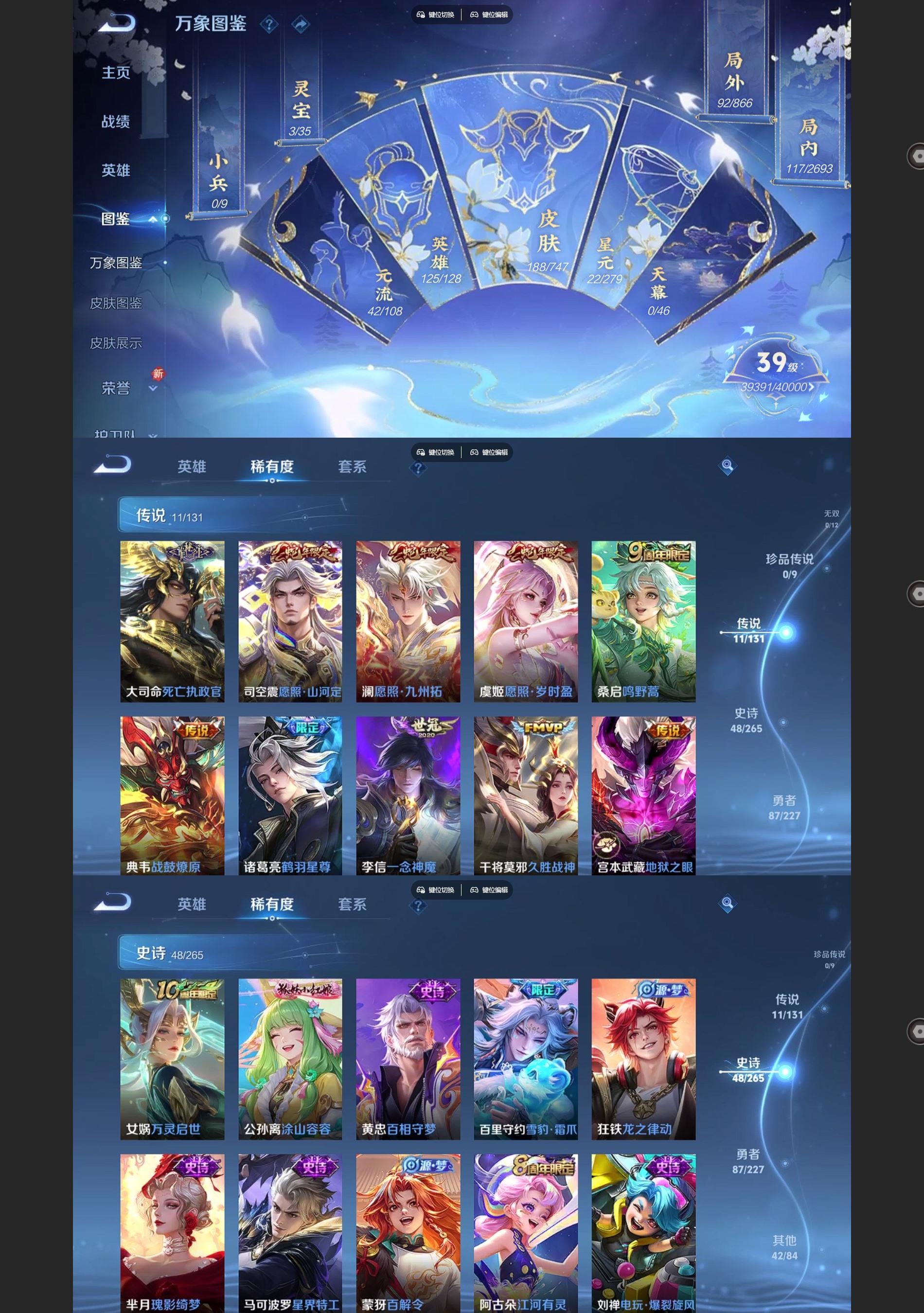2304074-v7-188皮肤11传说1星元48史诗57限定2641紫星币 【全皮英雄】 鬼谷子全皮 【星元】 幽冥火 【传说】 战鼓燎原 死亡执政官 愿照岁时盈 愿照九州拓 愿照山河定 鸣野蒿 鹤羽星尊 地狱火 久胜战神 一念神魔 地狱之眼 【热门】万灵启世 涂山容容 至尊宝 百木心呛 拒霜思 猪悟能 冰冠公主 原初追逐者 暗夜猫娘 黄忠百相守梦 雪豹霜爪 瑰影绮梦 星界特工