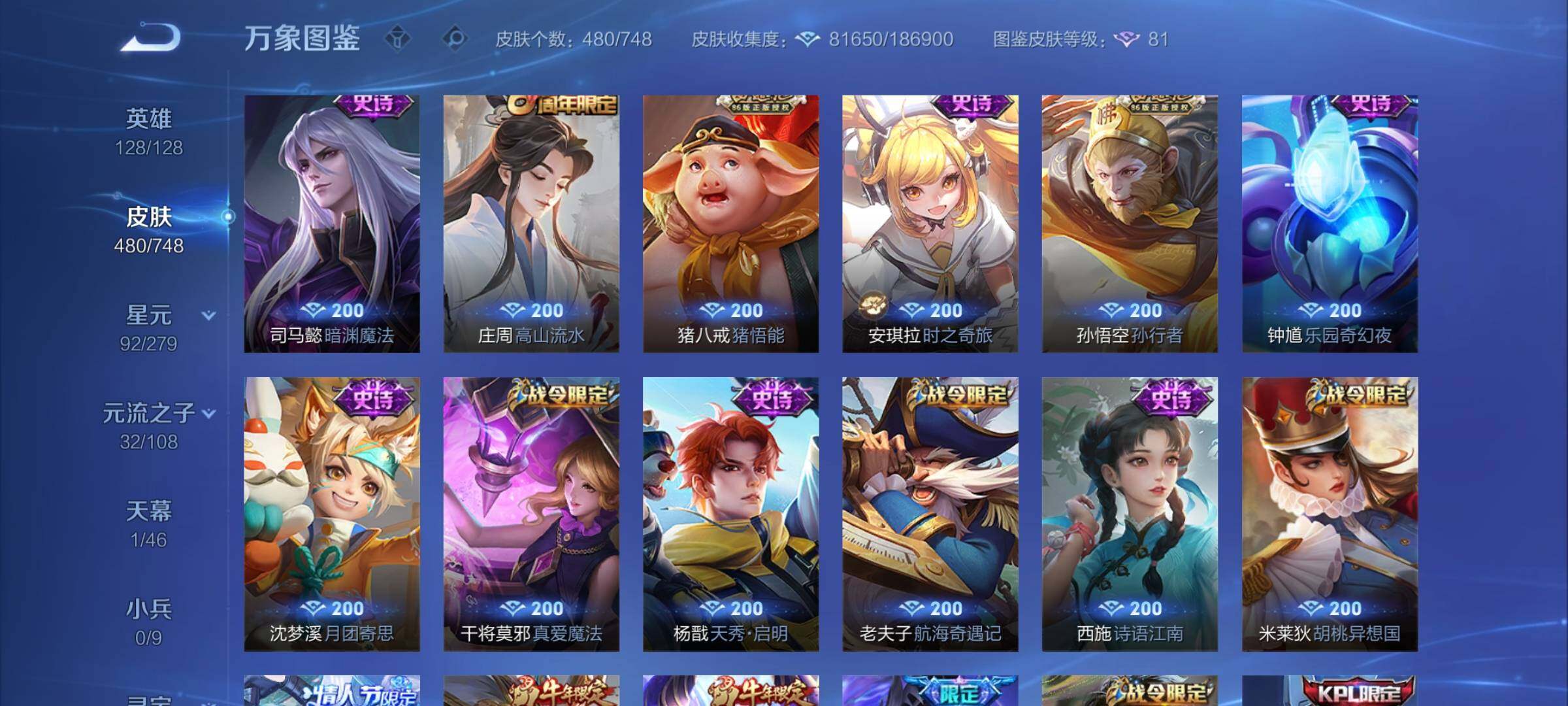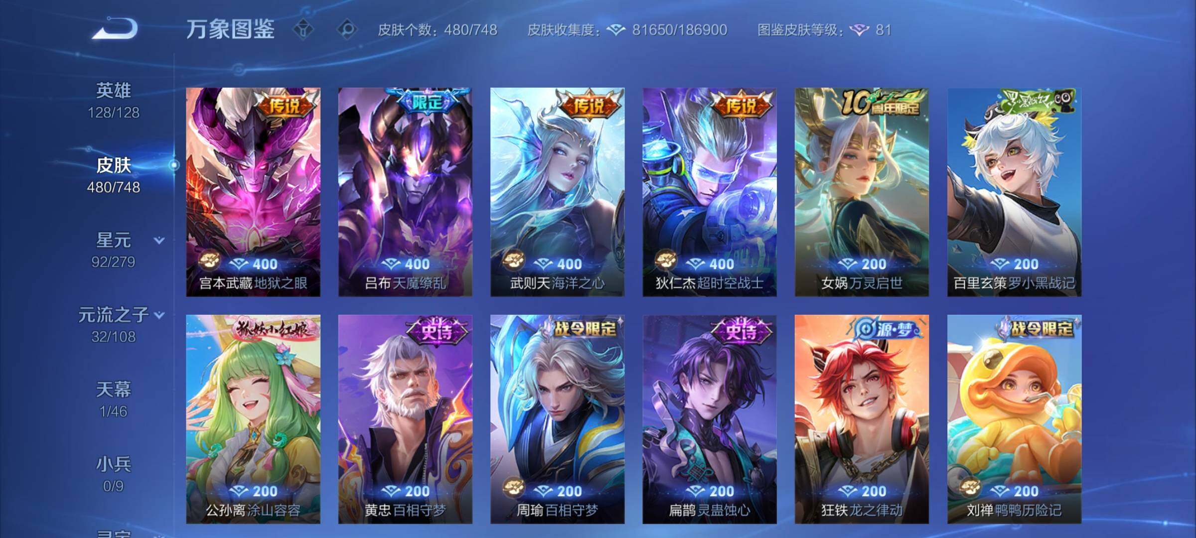 【店长推荐·5典藏·无限飓风号·天鹅之梦·星域神启·九霄神辉·武则天·金标玄策·金标老虎·金标赵云·金标武则天·朵莉亚心动手记·落雪白狼·乘龙淬吴钩·云乘龙铭钟鼎·电玩雷克斯·浮生妄·无双飞将·可二次】w8198-安卓q-128英雄-480皮肤-25王者印记-300铭文-贵族积分23w【贵族10】【5典藏·3星传说·48传说·1天幕·12按键】【因赛季更新游戏段付以上号为准!】 【英雄全皮