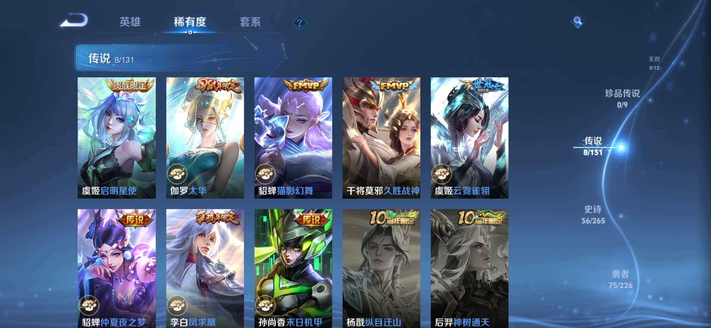 _2288746-【185皮8传说太华久胜战神凤求凰至尊宝】安卓q-v0-尊贵铂金iii段位-114英雄-185皮肤-8传说-36史诗 【传说皮肤】:虞姬启明星使,伽罗太华,貂蝉猫影幻舞,干将莫邪久胜战神,虞姬云霓雀翎,貂蝉仲夏夜之梦,李白凤求凰,孙尚香末日机甲 【限定皮肤】:白起狰,狄仁杰阴阳师,虞姬凯尔特女王,赵云皇家上将,妲己时之彼端,嬴政白昼王子,鲁班七号狮舞东方,庄周蜃楼王,庄周玄嵩,高渐离死亡摇滚,钟无艳王者之锤,孙膑妖精王,扁鹊炼金王,芈月重明,吕布猎兽之王,周瑜赤莲之焰,夏侯惇朔风刀,甄姬幽恒,曹操烛龙,典韦穷奇,典韦岱宗,狄仁杰魔术师,项羽海滩派对,老夫子醍醐杖,程咬金演武夺筹,刘邦夺宝奇兵,韩信飞衡,兰陵王驯魔猎人,孙悟空至尊宝,孙悟空大圣娶亲,牛魔御旌,后羿辉光之辰,后羿如梦令,李元芳银河之约,虞姬启明星使,钟馗神迹守卫,钟馗驱傩正仪,杨玉环遇见飞天,蔡文姬繁星吟游,太乙真人华丽摇滚,鬼谷子原初探秘者,苏烈千军破阵,百里玄策原初追逐者,弈星混沌棋,沈梦溪星空之诺,明世隐疑决卦,狂铁御狮,米莱狄御霄,伽罗太华,盾山御銮,上官婉儿梁祝,嫦娥如梦令 【年限皮肤】:李白凤求凰,后羿辉光之辰,伽罗太华,甄姬幽恒,韩信飞衡,典韦岱宗,庄周玄嵩 【赛季限定】:庄周蜃楼王,孙膑妖精王,扁鹊炼金王,白起狰,芈月重明,夏侯惇朔风刀,曹操烛龙,典韦穷奇,老夫子醍醐杖,程咬金演武夺筹,牛魔御旌,虞姬凯尔特女王,钟馗驱傩正仪,鬼谷子原初探秘者,苏烈千军破阵,百里玄策原初追逐者,弈星混沌棋,明世隐疑决卦,狂铁御狮,米莱狄御霄,盾山御銮 【战令限定】:嬴政白昼王子,鲁班七号狮舞东方,吕布猎兽之王,周瑜赤莲之焰,刘邦夺宝奇兵,兰陵王驯魔猎人,李元芳银河之约,钟馗神迹守卫,沈梦溪星空之诺 【史诗皮肤】:露娜紫霞仙子,钟无艳王者之锤,赵云皇家上将,貂蝉圣诞恋歌,王昭君偶像歌手,狄仁杰魔术师,宫本武藏鬼剑武藏,孙尚香水果甜心,妲己魅力维加斯,吕布圣诞狂欢,李白千年之狐,韩信白龙吟,孙悟空至尊宝,后羿辉光之辰,百里守约特工魅影,铠曙光守护者,阿轲节奏热浪,杨玉环遇见飞天,嬴政白昼王子,孙悟空大圣娶亲,鲁班七号狮舞东方,狄仁杰鹰眼统帅,公孙离无限星赏官,兰陵王驯魔猎人,上官婉儿梁祝,蔡文姬繁星吟游,李元芳银河之约,娜可露露晚萤,韩信飞衡,典韦岱宗,妲己时之彼端,甄姬幽恒,庄周玄嵩,嫦娥如梦令,后羿如梦令,百里玄策原初追逐者 【其他皮肤】:项羽海滩派对,韩信街头霸王,露娜哥特玫瑰,阿轲致命风华,阿轲爱心护理,达摩大发明家,赵云白执事,芈月红桃皇后,程咬金爱与正义,白起白色死神,扁鹊化身博士,扁鹊救世之瞳,安琪拉玩偶对对碰,姜子牙时尚教父,妲己少女阿狸,典韦黄金武士,亚瑟死亡骑士,达摩拳王,花木兰兔女郎,张飞五福同心,甄姬花好人间,刘备万事如意,宫本武藏万象初新,狄仁杰阴阳师,庄周蜃楼王,刘备纽约教父,高渐离死亡摇滚,孙膑妖精王,扁鹊炼金王,虞姬凯尔特女王,墨子进击墨子号,白起狰,钟无艳海滩丽影,宫本武藏霸王丸,曹操烛龙,王昭君幻想奇妙夜,芈月重明,狂铁命运角斗场,老夫子功夫老勺,牛魔制霸全明星,孙尚香沉稳之力,典韦穷奇,诸葛亮掌控之力,鬼谷子幻乐之宴,狂铁御狮,安琪拉如懿,太乙真人华丽摇滚,项羽科学大爆炸,米莱狄御霄,吕布猎兽之王,张良幽兰居士,庄周奇妙博物学,牛魔御旌,小乔丁香结,钟馗神迹守卫,盾山御銮,孙膑归虚梦演,沈梦溪鲨炮海盗猫,姜子牙炽热元素使,夏侯惇朔风刀,周瑜赤莲之焰,沈梦溪星空之诺,弈星混沌棋,哪吒次元突破,鲁班七号黑桃队长,明世隐疑决卦,刘邦夺宝奇兵,盾山圆桌骑士,老夫子醍醐杖,鬼谷子原初探秘者,程咬金演武夺筹,钟馗驱傩正仪,鲁班大师乓乓大师,苏烈千军破阵,戈娅危途狂花,鲁班七号福禄兄弟,鲁班七号木偶奇遇记,露娜绯红之刃,钟无艳生化警戒,貂蝉异域舞娘,花木兰剑舞者,老夫子潮流仙人,王昭君精灵公主,狄仁杰锦衣卫,曹操死神来了,曹操超能战警,张良一千零一夜,小乔万圣前夜,周瑜海军大将,后羿精灵王,刘禅英喵野望,兰陵王隐刃,李白范海辛,钟馗地府判官,李元芳特种部队,刘邦圣殿之光,虞姬加勒比小姐,关羽天启骑士,蔡文姬蔷薇王座,夏侯惇战争骑士,雅典娜战争女神,马可波罗激情绿茵,苍维京掠夺者,杨戬埃及法老,太乙真人圆桌骑士,哪吒三太子,诸葛亮星航指挥官,黄忠芝加哥教父,大乔伊势巫女,东皇太一东海龙王,干将莫邪第七人偶,铠龙域领主,百里守约绝影神呛,百里玄策威尼斯狂欢,苏烈爱与和平,梦奇美梦成真,女娲尼罗河女神,明世隐占星师,公孙离花间舞,裴擒虎街头旋风,弈星踏雪寻梅,元歌午夜歌剧院,孙策海之征途,司马懿魇语军师,盾山极冰防御线,伽罗花见巫女,沈梦溪棒球奇才,李信灼热之刃,上官婉儿修竹墨客,嫦娥露花倒影,猪八戒年年有余,盘古创世神祝,瑶森,云中君荷鲁斯之眼,曜归虚梦演,马超幸存者,西施归虚梦演,鲁班大师归虚梦演,蒙犽归虚梦演,镜冰刃幻境,金蝉前尘 【营地id】:335418532