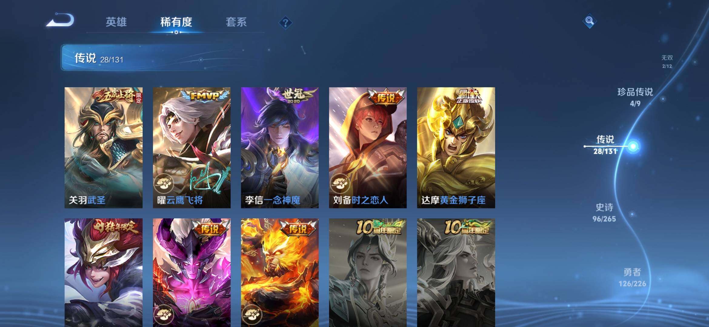 [14629348]安卓q-v9-最强王者段位-127英雄-313皮肤-2典藏皮肤-2无双-4珍品传说-28传说-96史诗 【英雄全皮】:影全皮,海诺全皮 【荣耀典藏】:孙悟空全息碎影,花木兰九霄神辉 【无双皮肤】:韩信群星魔术团,曜器灵螭龙剑 【珍品传说】:马可波罗怪盗基德,孙策时之奇旅,瑶大耳狗之梦,安琪拉酷洛米之心 【传说皮肤】:元歌诡秘之主,公孙离云诺千山,澜愿照九州拓,云缨幻光神呛,桑启鸣野蒿,朵莉亚心动手记,赵云乘龙铭钟鼎,澜逐花归海,露娜霜月吟,李白诗剑行,马超无双飞将,孙策挚爱之约,王昭君乞巧织情,西施游龙清影,曜李 ,诸葛亮时雨天司,铠绛天战甲,镜炽阳神光,虞姬启明星使,孙悟空零号赤焰,关羽武圣,曜云鹰飞将,李信一念神魔,刘备时之恋人,达摩黄金狮子座,百里玄策白虎志,宫本武藏地狱之眼,孙悟空地狱火 【限定皮肤】:蒙犽顽岩魄,蔡文姬夏日便利店,大乔绒语心约,虞姬夏日便利店,姜子牙天穹之誓,杨戬破阵退雄兵,李白谪仙醉月,狄仁杰阴阳师,赵云皇家上将,鲁班七号狮舞东方,高渐离死亡摇滚,高渐离玩趣恶龙,元歌云间偶戏,典韦蓝屏警告,典韦岱宗,马可波罗暗影游猎,狄仁杰魔术师,狄仁杰万华元夜,达摩星际陆战队,项羽海滩派对,关羽武圣,程咬金演武夺筹,兰陵王驯魔猎人,亚瑟潮玩骑士王,孙悟空至尊宝,孙悟空大圣娶亲,孙悟空零号赤焰,孙悟空孙行者,后羿如梦令,李元芳云中旅人,虞姬启明星使,雅典娜单词大作战,雅典娜黎明之约,太乙真人华丽摇滚,鬼谷子五谷丰年,诸葛亮时雨天司,铠青龙志,百里玄策白虎志,沈梦溪大漠名商,裴擒虎李小龙,裴擒虎擒涛扼浪,云中君纤云弄巧,盾山梦圆繁星,孙策挚爱之约,猪八戒西部大镖客,上官婉儿神器万象笔,曜李 ,西施玲珑珍味,蒙犽狂想玩偶喵,鲁班大师探海日志,桑启海盐诗旅,暃星界游侠,戈娅驭风魔法,艾琳流音漫舞,司空震地狱燃心,阿古朵江河有灵,张良古海寻踪,蒙犽百解令,高渐离燃音魔法,妲己灵卜魔法,鬼谷子天穹祈灯,伽罗琥珀纪元,姬小满妄想食味,安琪拉乘龙聚宝船,赵云乘龙铭钟鼎,沈梦溪龙舞盛年,鲁班七号蔬乡物语,李元芳蔬乡物语,刘邦剑破天穹,程咬金群星魔术团,韩信群星魔术团,镜青焰无极,项羽苍威无极,朵莉亚心动手记,海诺心动手记,周瑜熔金海岸 【年限皮肤】:百里玄策白虎志,铠青龙志,诸葛亮时雨天司,典韦岱宗,关羽武圣,安琪拉乘龙聚宝船,赵云乘龙铭钟鼎 【赛季限定】:狄