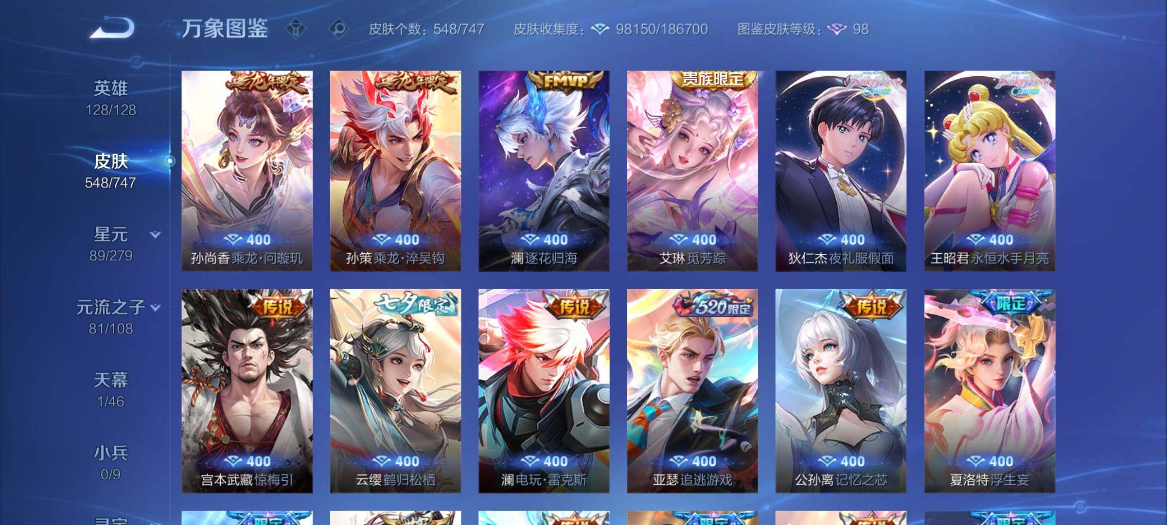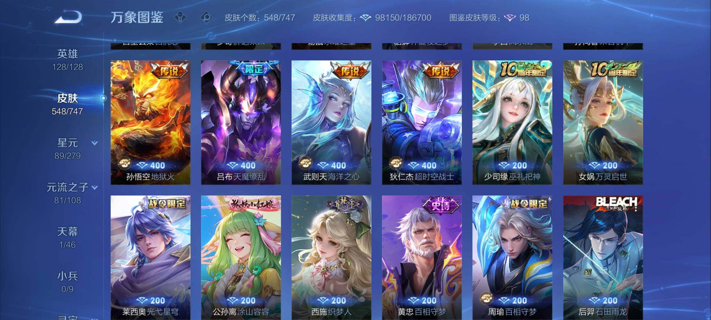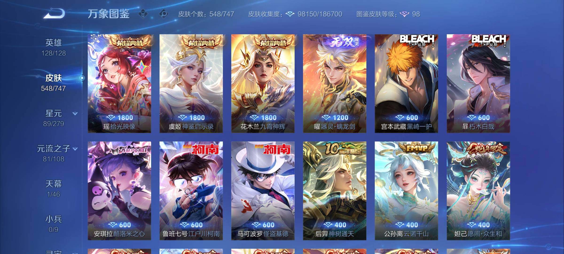 【高质量v10·4典藏·5珍品·40个年限皮·曜器灵螭龙剑·九霄神辉·神鉴启示录·瑶拾光映像·全皮女娲·马可怪盗基德·紫瑶·鲁班柯南·酷洛米之心·暃朽木白哉·黑崎一护·30按键·201个性戳戳·可二次】w8228-安卓q-128英雄-548皮肤-11王者印记-300铭文-贵族积分24w【贵族10】【4典藏·1无双·5珍品·6星传说·67传说·1天幕·30按键·201个性戳戳】【因赛季更新游