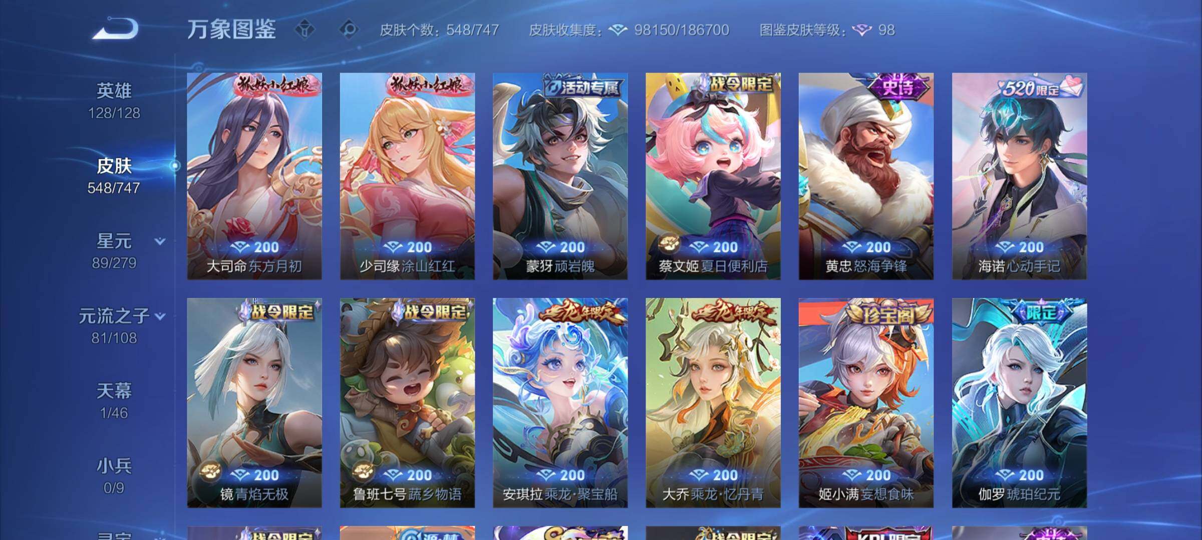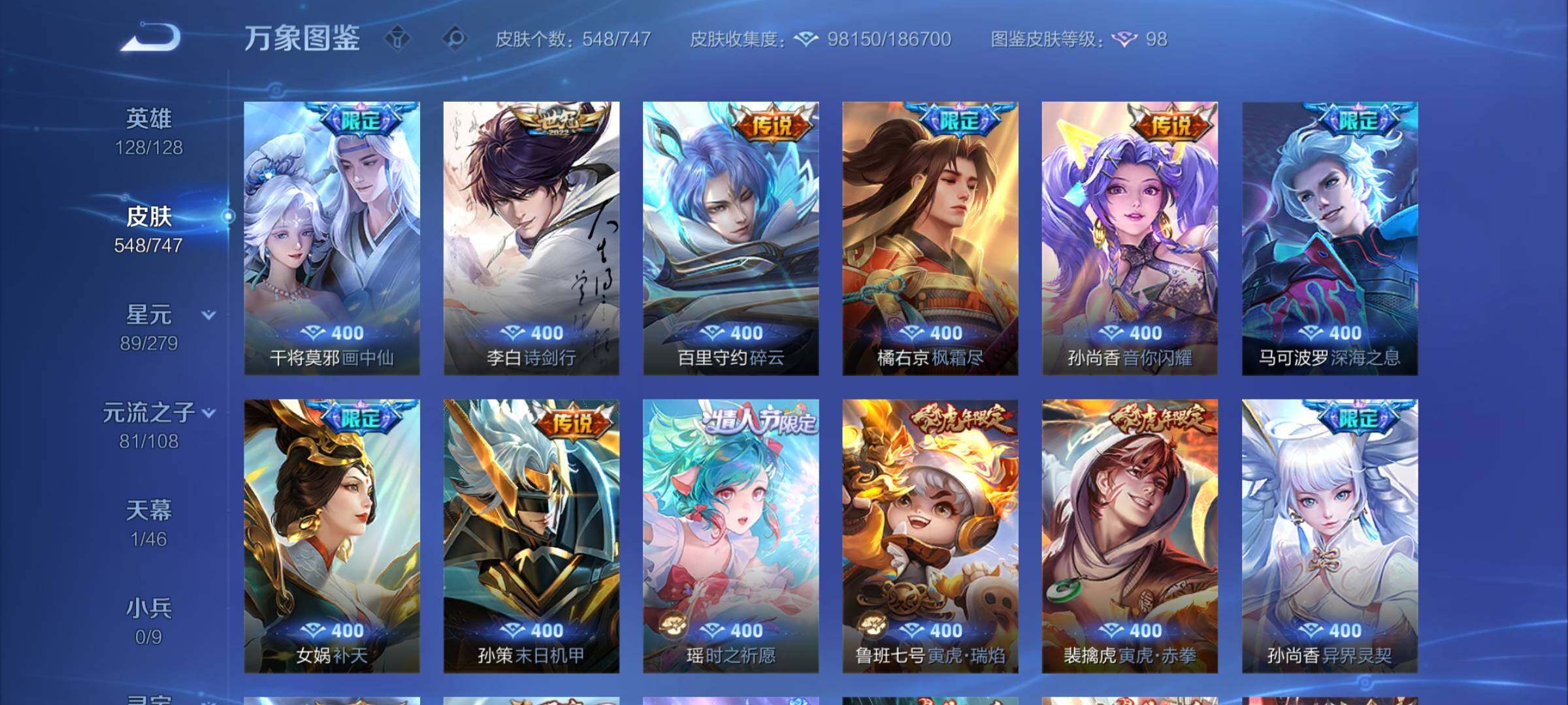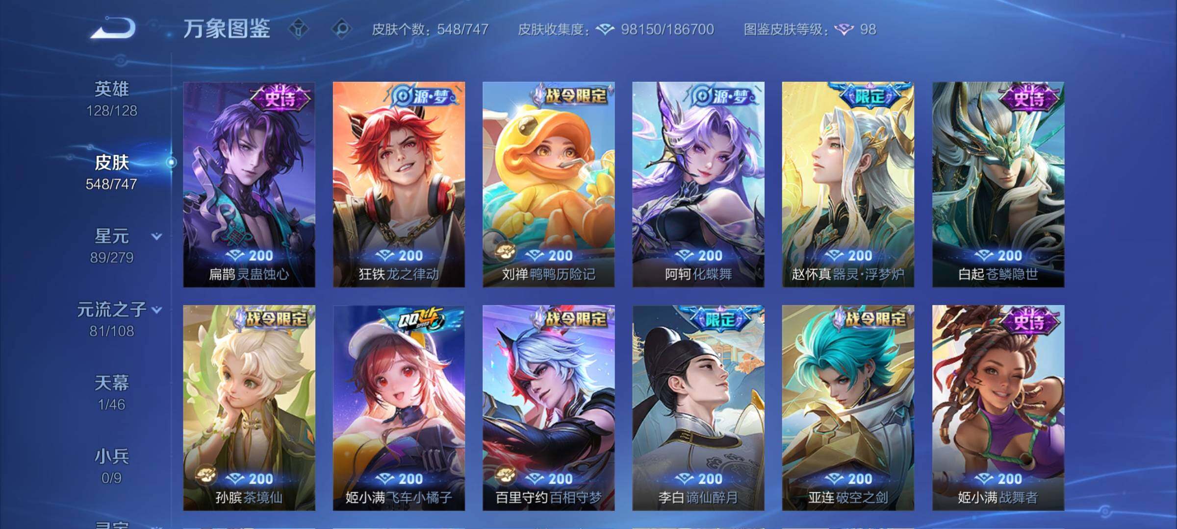 【高质量v10·4典藏·5珍品·40个年限皮·曜器灵螭龙剑·九霄神辉·神鉴启示录·瑶拾光映像·全皮女娲·马可怪盗基德·紫瑶·鲁班柯南·酷洛米之心·暃朽木白哉·黑崎一护·30按键·201个性戳戳·可二次】w8228-安卓q-128英雄-548皮肤-11王者印记-300铭文-贵族积分24w【贵族10】【4典藏·1无双·5珍品·6星传说·67传说·1天幕·30按键·201个性戳戳】【因赛季更新游