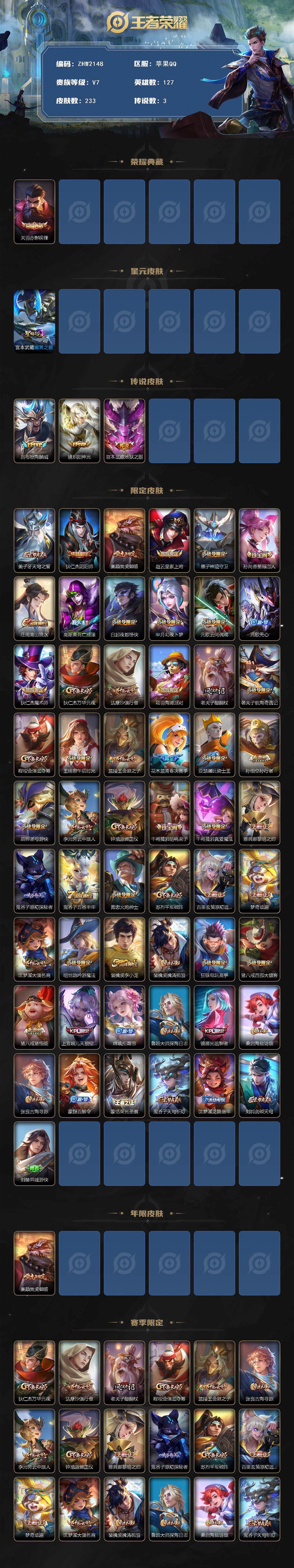 可二次【店主推荐捡漏号!可直接换绑/59段中路/44段对抗/37段游走/1w3小国50张良/1w5小国50苏烈/1w4小国50盾山/1w5小国100张飞/1w1小国100钟馗/7省标/1市标】:苹果q-v7-最强王者段位-127英雄-233皮肤-1典藏皮肤-1星元-3传说-69史诗 【英雄全皮】:鬼谷子全皮,影全皮 【荣耀典藏】:关羽赤影疾锋 【传说皮肤】:吕布怒海麟威,镜炽阳神光,宫本武藏地狱之眼 【限定皮肤】:姜子牙天穹之誓,狄仁杰阴阳师,廉颇寅虎御盾,赵云皇家上将,墨子神迹守卫,孙尚香蔷薇恋人,庄周高山流水,高渐离死亡摇滚,白起夜都怪侠,芈月幻夜卜梦,元歌云间偶戏,元歌无心,狄仁杰魔术师,狄仁杰万华元夜,达摩沙漠行僧,项羽海滩派对,老夫子醍醐杖,老夫子航海奇遇记,程咬金演武夺筹,王昭君午后时光,兰陵王金庭之子,花木兰青春决赛季,亚瑟潮玩骑士王,孙悟空孙行者,后羿圣弓游侠,李元芳云中旅人,钟馗驱傩正仪,干将莫邪胡桃夹子,干将莫邪真爱魔法,雅典娜黎明之约,鬼谷子原初探秘者,鬼谷子五谷丰年,黄忠火炮绅士,苏烈千军破阵,百里玄策原初追逐者,梦奇顽趣,沈梦溪大漠名商,明世隐吟游魔法,裴擒虎李小龙,裴擒虎擒涛扼浪,狂铁电玩高手,猪八戒西部大镖客,猪八戒猪悟能,上官婉儿天狼绘梦者,嫦娥拒霜思,鲁班大师探海日志,镜匿光追影者,桑启海盐诗旅,张良古海寻踪,蒙犽百解令,蒙恬荣光圣徽,鬼谷子天穹祈灯,沈梦溪龙舞盛年,刘邦剑破天穹,刘备异域游侠 【年限皮肤】:廉颇寅虎御盾 【赛季限定】:狄仁杰万华元夜,达摩沙漠行僧,老夫子醍醐杖,程咬金演武夺筹,兰陵王金庭之子,张良古海寻踪,李元芳云中旅人,钟馗驱傩正仪,雅典娜黎明之约,鬼谷子原初探秘者,苏烈千军破阵,百里玄策原初追逐者,梦奇顽趣,沈梦溪大漠名商,裴擒虎擒涛扼浪,鲁班大师探海日志,桑启海盐诗旅,鬼谷子天穹祈灯,蒙恬荣光圣徽,刘邦剑破天穹,姜子牙天穹之誓 【战令限定】:墨子神迹守卫,白起夜都怪侠,芈月幻夜卜梦,元歌云间偶戏,老夫子航海奇遇记,王昭君午后时光,亚瑟潮玩骑士王,后羿圣弓游侠,干将莫邪真爱魔法,黄忠火炮绅士,明世隐吟游魔法,狂铁电玩高手,猪八戒西部大镖客 【史诗皮肤】:鲁班七号电玩小子,赵云皇家上将,赵云未来纪元,貂蝉圣诞恋歌,甄姬冰雪圆舞曲,狄仁杰魔术师,宫本武藏鬼剑武藏,孙尚香蔷薇恋人,孙尚香水果甜心,嬴政暗夜贵公子,嬴政摇滚巨星,妲己魅力维加斯,妲己女仆咖啡,墨子金属风暴,曹操幽灵船长,李白千年之狐,张飞乱世虎臣,花木兰水晶猎龙者,夏侯惇乘风破浪,兰陵王暗隐猎兽者,雅典娜冰冠公主,花木兰青春决赛季,铠曙光守护者,蔡文姬舞动绿茵,刘禅天才门将,李元芳逐浪之夏,程咬金功夫厨神,阿轲节奏热浪,大乔猫狗日记,狄仁杰鹰眼统帅,不知火舞魅语,上官婉儿天狼绘梦者,百里玄策原初追逐者,裴擒虎李小龙,元歌云间偶戏,老夫子航海奇遇记,杨戬天秀启明,干将莫邪真爱魔法,钟馗乐园奇幻夜,孙悟空孙行者,猪八戒猪悟能,庄周高山流水,司马懿暗渊魔法,嫦娥拒霜思,镜匿光追影者,黄忠火炮绅士,雅典娜黎明之约,廉颇寅虎御盾,夏洛特永昼,明世隐吟游魔法,狂铁电玩高手,鬼谷子五谷丰年,元歌无心,梦奇顽趣,蒙犽百解令,蒙恬荣光圣徽,马可波罗星界特工,百里守约百相守梦,牛魔星界战将,刘禅鸭鸭历险记,狂铁龙之律动,后羿石田雨龙,周瑜百相守梦,黄忠百相守梦,西施织梦人,公孙离涂山容容,莱西奥光弋星穹,女娲万灵启世,少司缘巫礼祀神 【其他皮肤】:项羽海滩派对,韩信教廷特使,韩信街头霸王,露娜哥特玫瑰,阿轲爱心护理,达摩大发明家,赵云忍炎影,程咬金星际陆战队,白起白色死神,牛魔西部大镖客,武则天东方不败,扁鹊救世之瞳,宫本武藏未来纪元,安琪拉玩偶对对碰,孙膑天使之翼,姜子牙时尚教父,典韦黄金武士,亚瑟死亡骑士,达摩拳王,花木兰兔女郎,张飞五福同心,甄姬花好人间,刘备万事如意,宫本武藏万象初新,后羿阿尔法小队,狄仁杰阴阳师,刘备纽约教父,高渐离死亡摇滚,刘备汉昭烈帝,关羽龙腾万里,墨子进击墨子号,钟无艳海滩丽影,王昭君幻想奇妙夜,老夫子功夫老勺,牛魔制霸全明星,孙尚香沉稳之力,诸葛亮掌控之力,李白敏锐之力,鬼谷子幻乐之宴,苏烈坚韧之力,明世隐虹云星官,小乔丁香结,吕布野性能量,沈梦溪鲨炮海盗猫,姜子牙炽热元素使,哪吒次元突破,老夫子醍醐杖,猪八戒西部大镖客,狂铁特工战影,鬼谷子原初探秘者,狄仁杰万华元夜,亚瑟潮玩骑士王,刘禅秘密基地,程咬金演武夺筹,张良缤纷绘卷,盘古重装意志,钟馗驱傩正仪,墨子神迹守卫,鲁班大师乓乓大师,苏烈千军破阵,后羿圣弓游侠,典韦铁甲之心,干将莫邪胡桃夹子,马可波罗潮玩牛仔,达摩沙漠行僧,芈月幻夜卜梦,程咬金无双福将,刘邦虎啸剑宗,白起夜都怪侠,兰陵王金庭之子,刘禅唤灵魔甲,米莱狄契约魔法,王昭君午后时光,沈梦溪大漠名商,蒙犽胡桃狂想曲,李元芳云中旅人,戈娅危途狂花,桑启海盐诗旅,海月幻泉雾影,猪八戒潮玩探月行,赵怀真太极少年,裴擒虎擒涛扼浪,太乙真人劲辣红锅,莱西奥西部游侠,鲁班大师探海日志,张良古海寻踪,亚连破局者,后羿完美运算,鬼谷子天穹祈灯,廉颇功夫炙烤,沈梦溪龙舞盛年,刘邦剑破天穹,大司命暗都幽影,刘备异域游侠,姜子牙天穹之誓,东皇太一噬灭天穹,老夫子百相守梦,苍苍林狼骑,太乙真人谧流熔炉,典韦铁骨偃魂,影魅影绮裳,姜子牙星梦巡礼,钟馗虚灵犬护,沈梦溪鸭鸭
