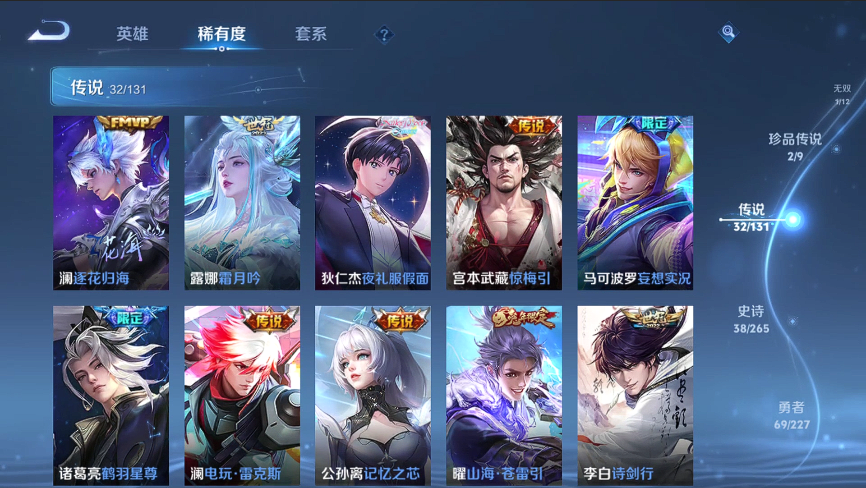 【王者荣耀】【lywz22972】珍品无双0 典藏1 无双1 珍品传说2 传说32 史诗38 英雄125 皮肤165 贵族4级 荣耀典藏:弑呛猎影__无双皮肤:器灵·螭龙剑__珍品传说:朽木白哉|黑崎一护__传说皮肤:鸣野蒿|前尘镜|无双飞将|炽阳神光|地狱之眼|地狱火|黄金狮子座|刘备-时之恋人|飞鸢探春|电玩·雷克斯|鹤羽星尊|记忆之芯|孙尚香-末日机甲|白虎志|惊梅引|落雪白狼|诗剑行|霜月吟|妄想实况|貂蝉-曦玄引|夜礼服假面|寅虎·瑞焰|逐花归海|乘龙·铭钟鼎|乘龙·问璇玑|山海·苍雷引|寅虎·赤拳|祥瑞亨通|愿照·岁时盈|愿照·九州拓|愿照·千秋盛|云诺千山__稀有限定:山海·玄木吟|百解令|大漠名商|古海寻踪|海滩派对|海盐诗旅|皇家上将|剑破天穹|魔术师|女武神|擒涛扼浪|青焰无极|探海日志|天穹祈灯|阴阳师|原初追逐者|暗隐猎兽者|暗渊魔法|乘风破浪|德古拉伯爵|地狱岩魂|鬼剑武藏|吕布-末日机甲|玫瑰异探|魅力维加斯|赏金猎手|圣诞狂欢|水果甜心|水晶猎龙者|星夜王子|鹰眼统帅|紫霞仙子|百里守约-百相守梦|老夫子-百相守梦|陌上桑|噬灭天穹|东方月初|顽岩魄|天穹之誓|海诺-心动手记|特工魅影|茶境仙|星界战将|谧流熔炉|狼魂孤将|化蝶舞|重明|云中旅人|玲珑珍味|流音漫舞|访茗客|苍威无极|刘禅-鸭鸭历险记|沈梦溪-鸭鸭历险记|龙之律动|虚灵犬护|逆浪荇歌|孙策-百相守梦|周瑜-百相守梦|黄忠-百相守梦|光弋星穹|往忆晖光|荣光之誓|万灵启世|鹤鸣心笺__优质皮肤:年年有余|孤猎|激情绿茵|碧珀绯影|冰刃幻境|超能战警|绯红之刃|踏雪寻梅|启蛰|威尼斯狂欢|芝加哥教父|街头旋风|赤焰之缨|福禄兄弟|前尘|星航指挥官|龙域领主|魇语军师|花见巫女|棒球奇才|东海龙王|灼热之刃|暗都幽影|潮玩探月行|瓷语鉴心|次元突破|丁香结|虹云星官|命运角斗场|阿尔法小队|兔女郎|死亡骑士|黄金武士|少女阿狸|宫本武藏-未来纪元|红桃皇后|忍·炎影|爱心护理|教廷特使|时空谍影|零食大作战|西部游侠|拳王|救世之瞳|白色死神|掌控之力|龙腾万里|霸王丸|乓乓大师|五福同心|沉稳之力|程咬金-群星魔术团|化身博士|熔金海岸|万象初新|蔚蓝守将|灵野札记|玫蓝誓约|死霸装|锦麟游梦|踏浪烽翎|戏梦巡演|哪吒-罗小黑战记|张良-罗小黑战记__贵族等级:贵族4级__王者段位:非凡王者打野皮肤号 1典藏1无双2珍品传说 祥瑞亨通,鹤羽星尊,云诺千山,惊梅引,白虎志,前尘镜,落雪白狼等限定皮肤