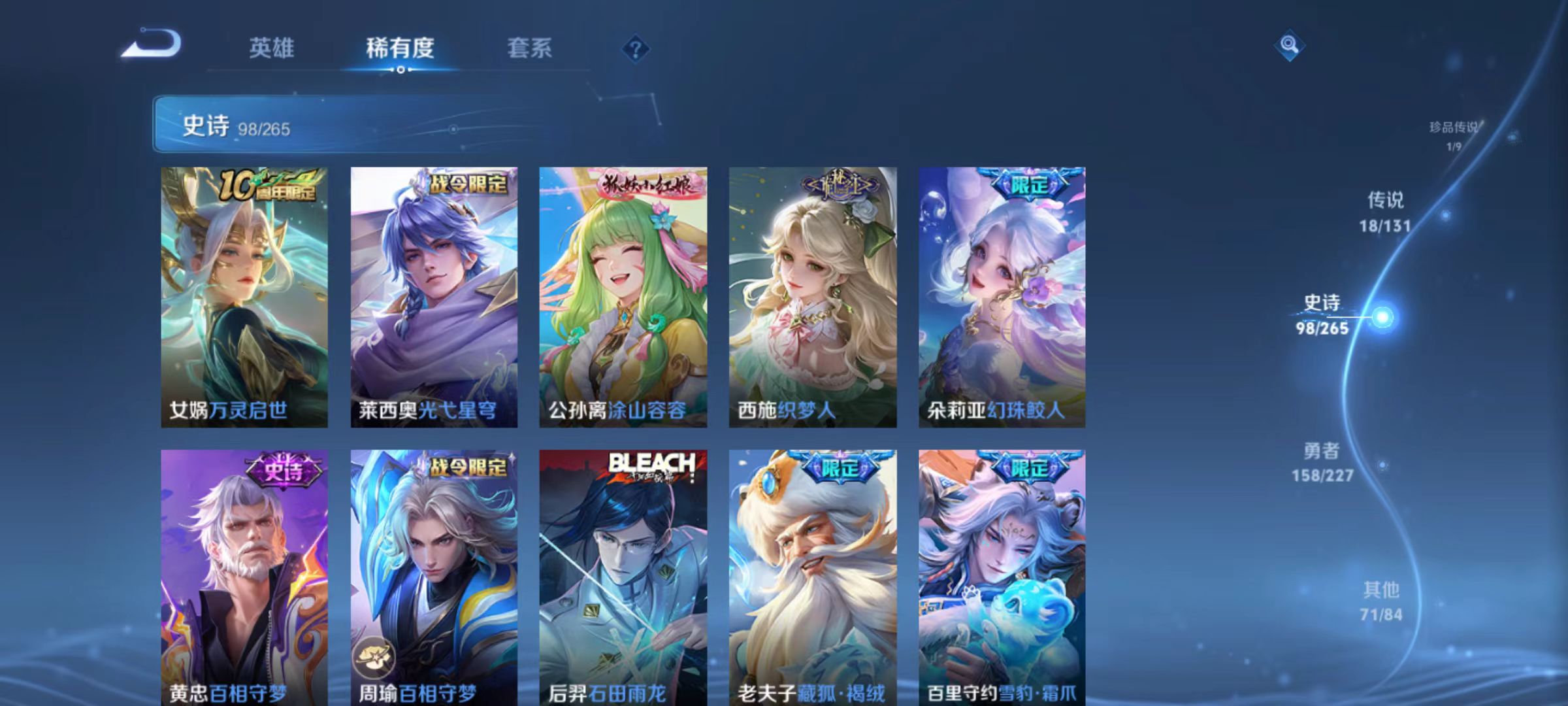 v8【347皮肤1典藏1珍品18传说】九霄神辉 大耳狗之梦 山海·炽霜斩 超时空战士 鸣野蒿 山海·苍雷引 逐花归海 末日机甲 云诺千山 乘龙·铭钟鼎 愿照·山河定 启明星使 地狱之眼 愿照·众生和 炽阳神光 幻光神呛 一念神魔 妄想实况 云鹰飞将 愿照·九州拓 化蝶舞 逐浪之夏 心灵战警 水果甜心 箭羽风息 永昼 百相守梦 无限星赏官 特工魅影 猫狗日记 天才门将 雪豹·霜爪 缤纷独角兽 冰冠公主 龙之律动 乐园奇幻夜 时之奇旅 玩趣恶龙 千年之狐 紫霞仙子 星夜王子 百相守梦 浮梦罗烟 燃音魔法 灵卜魔法 魅力维加斯 光弋星穹 天秀·启明 千筹问战 石田雨龙 冰雪圆舞曲 圣诞狂欢 末日机甲 茶境仙 曙光守护者 暗隐猎兽者 绅士熊喵 暗渊魔法 暗夜贵公子 幽灵船长 乘风破浪 修罗 节奏热浪 蔷薇恋人 未来纪元 无心 藏狐·褐绒 晚萤 时之恋人 功夫厨神 女仆咖啡 鬼剑武藏 涂山容容 猫狗日记 魅语 鸭鸭历险记 万灵启世 舞动绿茵 织梦人 幻珠鲛人 电玩小子 金属风暴 地狱岩魂 偶像歌手 诗语江南 圣诞恋歌 黄金分割率 霸王丸 神威 飞衡 阴阳师 魔术师 白昼王子 暖冬·兔眠 云间偶戏 蓝屏警告 电玩高手 山海·碧波行 胡桃异想国 暗影游猎 孙行者 冰霜恋舞曲 神迹守卫 午后时光 乓乓大师 海滩派对 迷踪丽影 天狼绘梦者 青龙志 纤云弄巧 唐三藏 五谷丰年 李小龙 劲辣红锅 皇家上将 百相守梦 岱宗 狮舞东方 猎兽之王 朔望之晖 潮玩骑兵 西部大镖客 朱雀志 夺宝奇兵 乒乒小将 山海·玄木吟 沉稳之力 星际陆战队 死亡摇滚 天狼狩猎者 星界游侠 玄武志 玲珑珍味 死亡骑士 景韶洛都 白色死神 浪漫序章 爱心护理 布丁狗之约 危途狂花 忍·炎影 命运加冕 潮玩士官长 小满鸭 潮玩探月行 戏梦巡演 化身博士 死霸装 牛运亨通 百相守梦 锦麟游梦 紫罗兰之誓 大发明家 守护之力 克喵 踏浪烽翎 海滩丽影 天使之翼 罗小黑战记 罗小黑战记 白执事 往忆晖光 女武神 黑桃队长 红桃皇后 径山谋武 瓷语鉴心 时空谍影 破局者 零食大作战 西部游侠 无双福将 鸿运当头 坚韧之力 功夫炙烤 金色潮汐 潮玩牛仔 阿尔法小队 潮玩造梦师 无尽旅途 星际陆战队 暗都幽影 龙舞盛年 群星魔术团 教廷特使 特工战影 兔女郎 救世之瞳 缤纷绘卷 掌控之力 苍威无极 绒语心约 纽约教父 熔金海岸 夏日便利店 秘密基地 未来纪元 虹云星官 进击墨子号 功夫老勺 次元突破 敬我三分 西部大镖客 炽热元素使 玩偶对对碰 黄金武士 万象初新 圆桌骑士 哥特玫瑰 爆裂喵拳 少女阿狸 乱世虎臣 奇妙博物学 访茗客 乐园追猎者 雪境奇遇 拳王 星梦巡礼 重装意志 街头霸王 归虚梦演 幻泉雾影 太极少年 幻乐之宴 科学大爆炸 灵卦秘语 龙腾万里 金福满堂 万事如意 鲨炮海盗猫 灵野札记 春野闲踪 汉昭烈帝 玫蓝誓约 胡桃狂想曲 鸭鸭历险记 秘证寻踪 唤灵魔甲 花好人间 五福同心 天穹祈灯 剑破天穹 王牌新星 古海寻踪 逆浪荇歌 御狮 噬灭天穹 朔风刀 探海日志 无畏之灵·狰 混沌棋 万华元夜 顽趣 疑决卦 原初追逐者 驱傩正仪 谧流熔炉 金庭之子 醍醐杖 御霄 天穹之誓 御旌 云中旅人 原初探秘者 穷奇 荣光之誓 海盐诗旅 烛龙 擒涛扼浪 大漠名商 演武夺筹 虚灵犬护