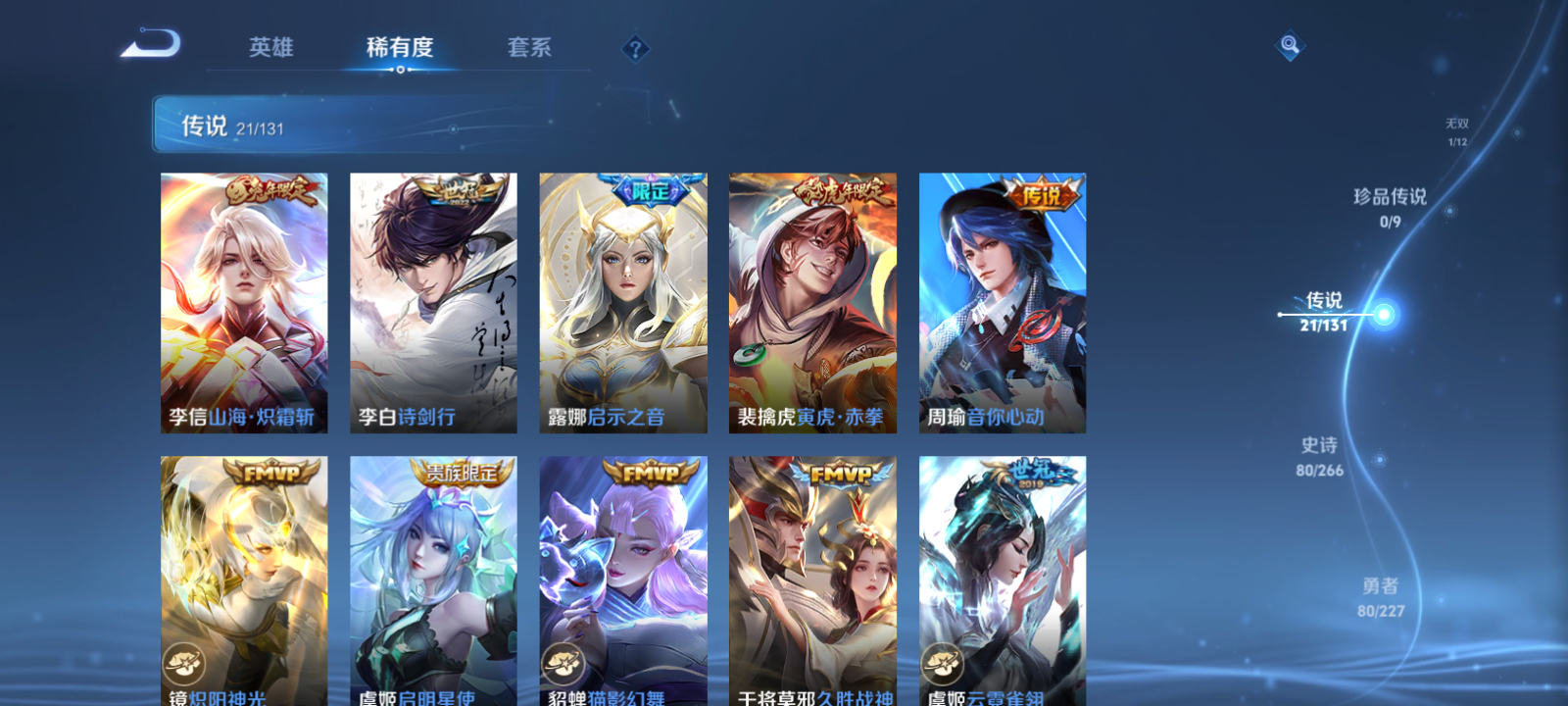 【王者荣耀】【lywz23800】珍品无双0 典藏1 无双1 珍品传说0 传说21 史诗79 英雄127 皮肤225 贵族8级 荣耀典藏:九霄神辉__无双皮肤:碎月剑心__传说皮肤:鸣野蒿|启示之音|炽阳神光|启明星使|云霓雀翎|久胜战神|狄仁杰-超时空战士|猫影幻舞|画中仙|诗剑行|战鼓燎原|周瑜-音你心动|乘龙·淬吴钩|乘龙·铭钟鼎|乘龙·问璇玑|山海·苍雷引|山海·炽霜斩|寅虎·赤拳|灼幽烈阳|神树通天|纵目迁山__稀有限定:白晶晶|至尊宝|引擎之心|神威|孙行者|玉兔公主|山海·玄木吟|百里守约-真我赫兹|冰霜恋舞曲|冰霜神祇|超元猎域|海滩派对|海盐诗旅|胡桃异想国|皇家上将|辉光之辰|剑破天穹|降魔|魔术师|花木兰-默契交锋|奇幻香踪|擒涛扼浪|燃音魔法|探海日志|天穹祈灯|妄想食味|无心|五谷丰年|纤云弄巧|星界游侠|阴阳师|驭风魔法|暗夜猫娘|暗隐猎兽者|暗渊魔法|缤纷独角兽|冰冠公主|苍穹之光|乘风破浪|乘龙·聚宝船|乘龙·忆丹青|德古拉伯爵|地狱岩魂|电玩·爆裂旋风|电玩小子|伽罗-琥珀纪元|功夫厨神|唤灵魅影|黄金分割率|节奏热浪|金属风暴|吕布-末日机甲|魅力维加斯|魅语|女仆咖啡|偶像歌手|圣诞狂欢|圣诞恋歌|诗语江南|水果甜心|水晶猎龙者|孙策-猫狗日记|天才门将|赵云-未来纪元|星夜王子|摇滚巨星|鹰眼统帅|永昼|幽灵船长|钟无艳-超时空战士|逐浪之夏|紫霞仙子|天穹之誓|修罗|曙光守护者|心灵战警|千年之狐|孙尚香-时之恋人|无限星赏官|特工魅影|心灵骇客|云中旅人|玲珑珍味|暖冬·兔眠|灵卜魔法|落雪兰心|藏狐·褐绒|龙之律动|虚灵犬护|石田雨龙|逆浪荇歌|光弋星穹|往忆晖光|荣光之誓|巫礼祀神|鹤鸣心笺__优质皮肤:尼罗河女神|一千零一夜|孤猎|熊喵少女|露花倒影|激情绿茵|秩序猎龙将|锦衣卫|维京掠夺者|绯红之刃|踏雪寻梅|启蛰|战争骑士|画中游|生化警戒|第七人偶|潮流仙人|芝加哥教父|街头旋风|绝影神呛|地府判官|幸存者|赤焰之缨|福禄兄弟|特种部队|剑舞者|龙域领主|花间舞|魇语军师|极冰防御线|花见巫女|蔷薇王座|灼热之刃|精准探案法|神奇女侠|阿摩司公爵|异域舞娘|精灵公主|修竹墨客|长夏之忆|功夫炙烤|潮玩探月行|瓷语鉴心|野性能量|丁香结|虹云星官|守护之力|坚韧之力|功夫老勺|命运角斗场|幻想奇妙夜|海滩丽影|兔女郎|死亡骑士|黄金武士|天使之翼|玩偶对对碰|宫本武藏-未来纪元|红桃皇后|忍·炎影|街头霸王|教廷特使|鸿运当头|金色潮汐|漠中幻影|时空谍影|西部游侠|牛运亨通|幻泉雾影|拳王|救世之瞳|白色死神|大发明家|哥特玫瑰|星梦巡礼|缤纷绘卷|掌控之力|纽约教父|龙腾万里|乱世虎臣|西施-归虚梦演|孙悟空-西部大镖客|牛魔-西部大镖客|龙舞盛年|汉昭烈帝|乓乓大师|五福同心|盾山-圆桌骑士|万事如意|沉稳之力|花好人间|熔金海岸|春野之旅|潮玩骑兵|蔚蓝守将|劲辣红锅|特工战影|妄想特派|命运加冕|潮玩士官长|小满鸭|死霸装|锦麟游梦|逐霄之志__贵族等级:贵族8级__王者段位:非凡王者打野对坑号 木兰典藏 李白无双 龙年限定套 纵目迁山,启示之音,战鼓燎原,寅虎·赤拳,灼幽烈阳,炽阳神光,画中仙,猫影幻舞,山海·苍雷引,音你心动,山海·炽霜斩,云霓雀翎,诗剑行,超时空战士
