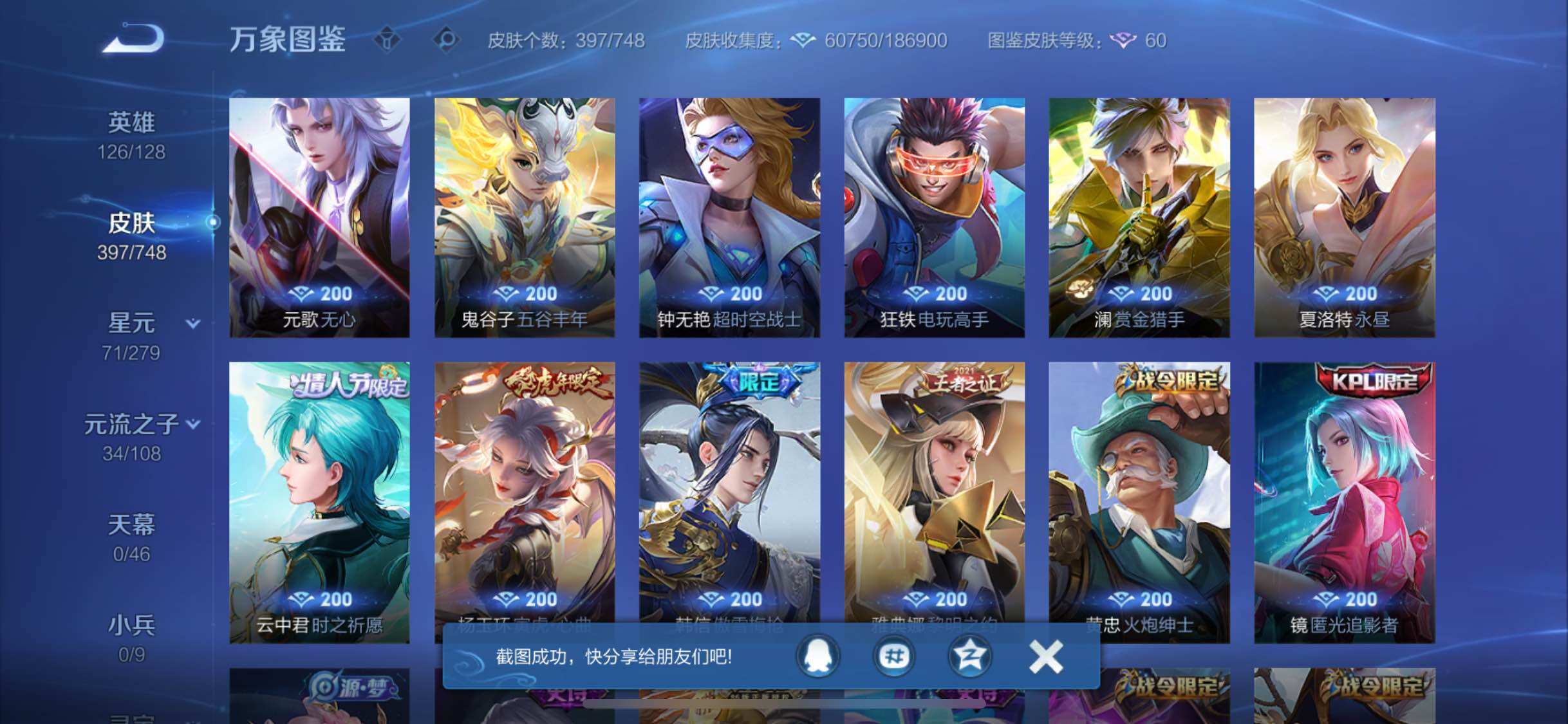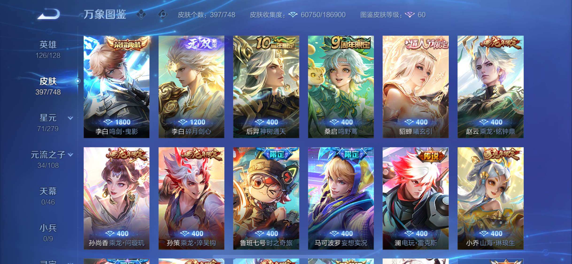 【高性价比·鸣剑曳影·碎月剑心·满龙年兔年限定·曦玄引·妄想实况·鲁班七号时之奇旅·澜电玩雷克斯·诗剑行·补天·寅虎赤拳·祈雪灵祝·时雨天司·镜炽阳神光·永曜之星·白虎志·凤求凰·可二次】w7709-苹果q126英雄-397皮肤-24王者印记-300铭文-贵族积分11w【贵族9】【1典藏·1无双·3星传说·35传说·14按键·329幸运值】【因赛季更新游戏段付以上号为准!】 【英雄全皮