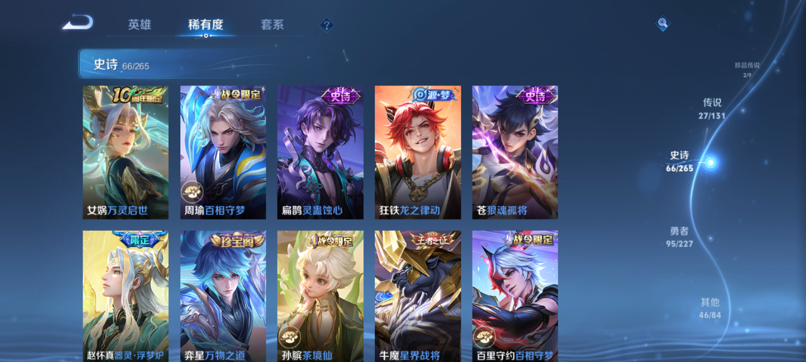 【王者荣耀】【lywz23771】珍品无双0 典藏2 无双2 珍品传说2 传说27 史诗66 英雄127 皮肤240 贵族7级 荣耀典藏:鸣剑·曳影|弑呛猎影__无双皮肤:雪境奇遇|器灵·螭龙剑__珍品传说:怪盗基德|孙策-时之奇旅__传说皮肤:鸣野蒿|无双飞将|炽阳神光|启明星使|胖达荣荣|地狱之眼|黄金狮子座|刘备-时之恋人|一念神魔|云鹰飞将|游龙清影|绯月行|鹤羽星尊|记忆之芯|孙尚香-末日机甲|马超-琥珀纪元|祈雪灵祝|霜月吟|战鼓燎原|逐花归海|冥王哈迪斯|玄雷天君|祥瑞亨通|愿照·九州拓|愿照·千秋盛|云诺千山|神树通天__稀有限定:寅虎·心曲|至尊宝|孙行者|神器·万象笔|狮舞东方|暗影游猎|大漠名商|海滩派对|海盐诗旅|胡桃夹子|皇家上将|剑破天穹|金庭之子|迷踪丽影|魔术师|匿光启智者|擒涛扼浪|青焰无极|驱傩正仪|燃音魔法|沙漠行僧|探海日志|天穹祈灯|万华元夜|妄想食味|五谷丰年|演武夺筹|阴阳师|原初追逐者|暗隐猎兽者|暗渊魔法|冰雪圆舞曲|乘风破浪|德古拉伯爵|鬼剑武藏|箭羽风息|节奏热浪|李元芳-蔬乡物语|魅力维加斯|女仆咖啡|偶像歌手|热力回旋|圣诞狂欢|圣诞恋歌|鲁班七号-蔬乡物语|水果甜心|水晶猎龙者|天才门将|赵云-未来纪元|星夜王子|雪上飞焰|摇滚巨星|鹰眼统帅|遇见神鹿|逐浪之夏|紫霞仙子|百里守约-百相守梦|老夫子-百相守梦|陌上桑|噬灭天穹|敬我三分|破空之剑|东方月初|埋骨钱|顽岩魄|蔡文姬-夏日便利店|虞姬-夏日便利店|天穹之誓|浮光幕影|怒海争锋|海诺-心动手记|修罗|心灵战警|千年之狐|无限星赏官|特工魅影|心灵骇客|茶境仙|星界战将|谧流熔炉|万物之道|器灵·浮梦炉|狼魂孤将|云中旅人|孙悟空-神迹守卫|访茗客|灵卜魔法|苍威无极|墨子-神迹守卫|灵蛊蚀心|龙之律动|布丁狗之约|虚灵犬护|逆浪荇歌|孙策-百相守梦|周瑜-百相守梦|荣光之誓|万灵启世|鹤鸣心笺__优质皮肤:一千零一夜|创世神祝|埃及法老|孤猎|熊喵少女|午夜歌剧院|激情绿茵|天启骑士|碧珀绯影|冰刃幻境|森|超能战警|绯红之刃|踏雪寻梅|启蛰|伊势巫女|芝加哥教父|街头旋风|绝影神呛|地府判官|荷鲁斯之眼|福禄兄弟|隐刃|前尘|特种部队|范海辛|星航指挥官|龙域领主|爱与和平|魇语军师|极冰防御线|花见巫女|棒球奇才|东海龙王|灼热之刃|精准探案法|霓裳曲|加勒比小姐|精灵公主|修竹墨客|万圣前夜|绒语心约|长夏之忆|异域游侠|功夫炙烤|潮玩探月行|次元突破|守护之力|坚韧之力|幻乐之宴|功夫老勺|命运角斗场|幻想奇妙夜|海滩丽影|兔女郎|死亡骑士|黄金武士|少女阿狸|宫本武藏-未来纪元|红桃皇后|忍·炎影|街头霸王|教廷特使|西部游侠|太极少年|危途狂花|拳王|哥特玫瑰|西施-雪境奇遇|星梦巡礼|景韶洛都|浪漫序章|缤纷绘卷|掌控之力|雾都夜雨|逐霄战戟|铁骨偃魂|纽约教父|龙腾万里|西施-归虚梦演|孙悟空-西部大镖客|牛魔-西部大镖客|鲁班大师-归虚梦演|龙舞盛年|汉昭烈帝|乓乓大师|五福同心|蒙犽-归虚梦演|万事如意|沉稳之力|程咬金-群星魔术团|完美运算|花好人间|熔金海岸|春野之旅|万象初新|苍林狼骑|蔚蓝守将|劲辣红锅|特工战影|春野闲踪|玫蓝誓约|命运加冕|死霸装|锦麟游梦|踏浪烽翎|云械蓝图__贵族等级:贵族7级__王者段位:最强王者【4655星币】打野射手皮肤号 2典藏2无双2珍品传说 鹤羽星尊,云诺千山,祈雪灵祝,愿照·九州拓,绯月行,愿照·千秋盛,祥瑞亨通,启明星使点那个限定皮肤
